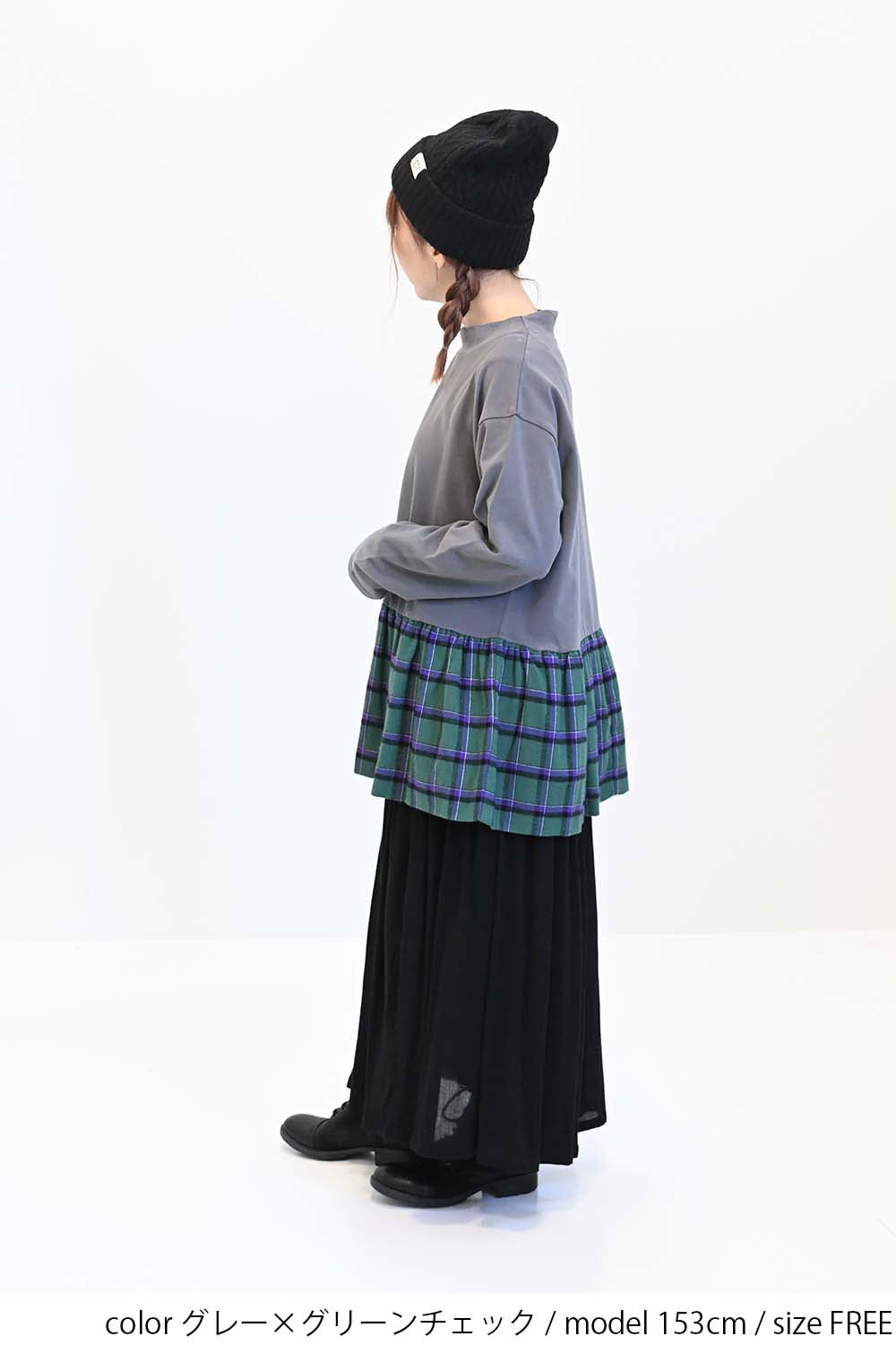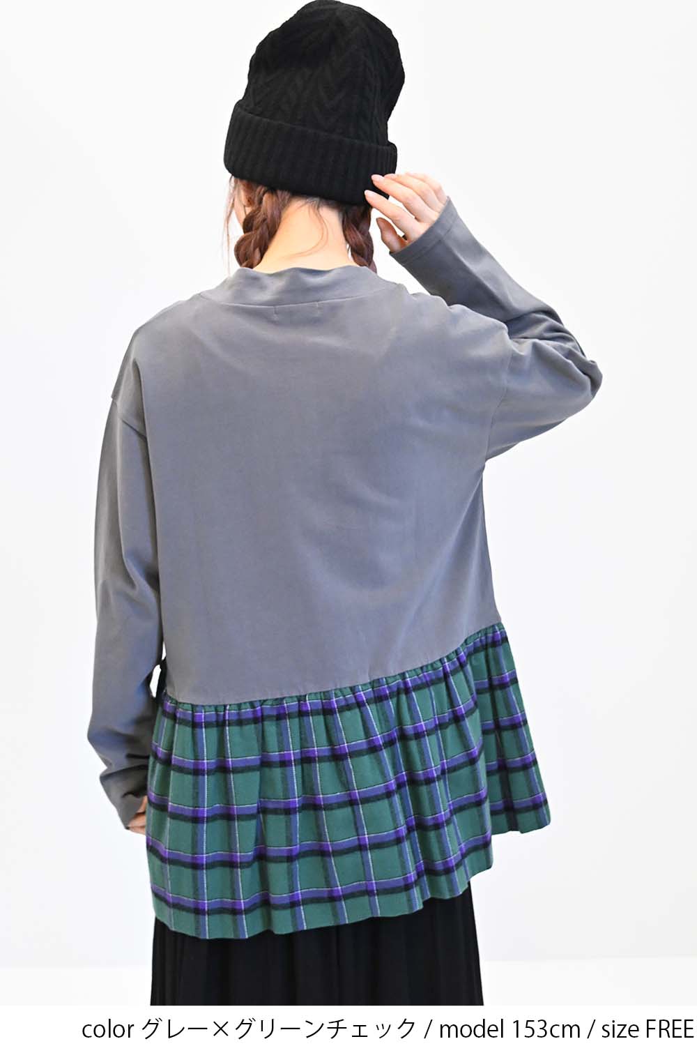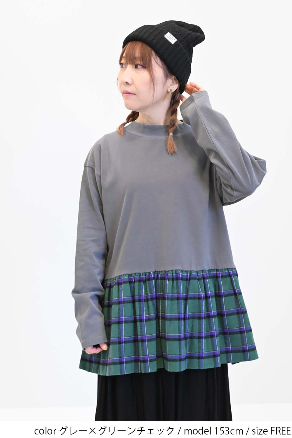 ウエスト下をチェック柄で切り替えた、大人可愛いペプラムチュニック。