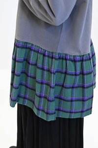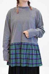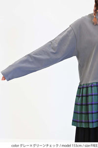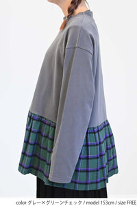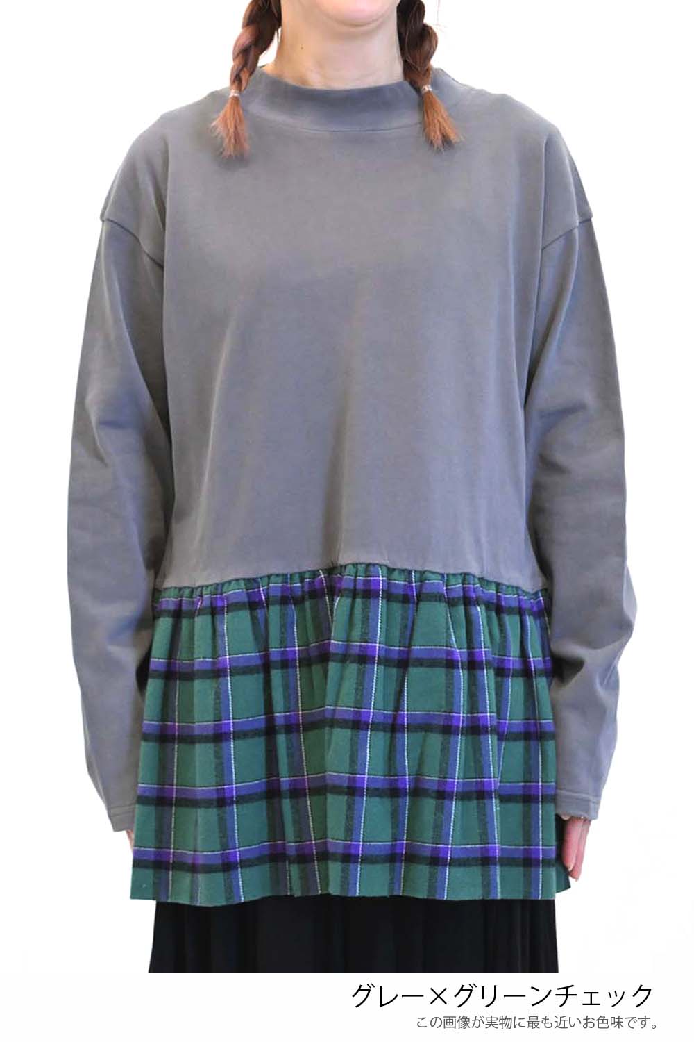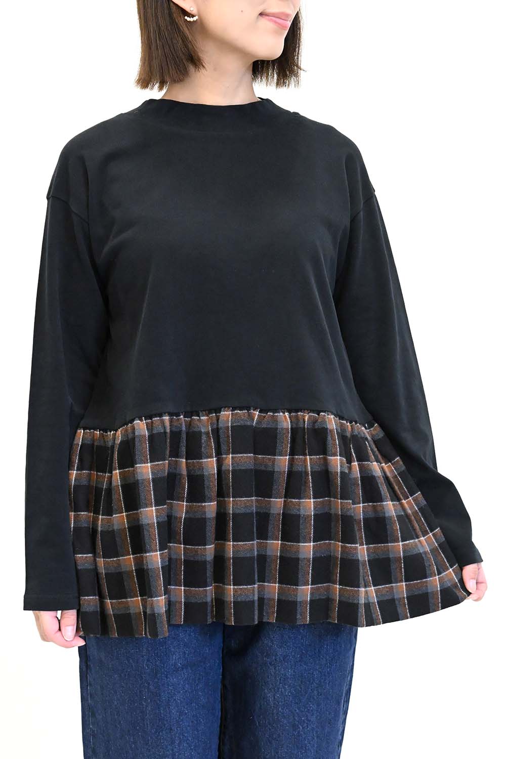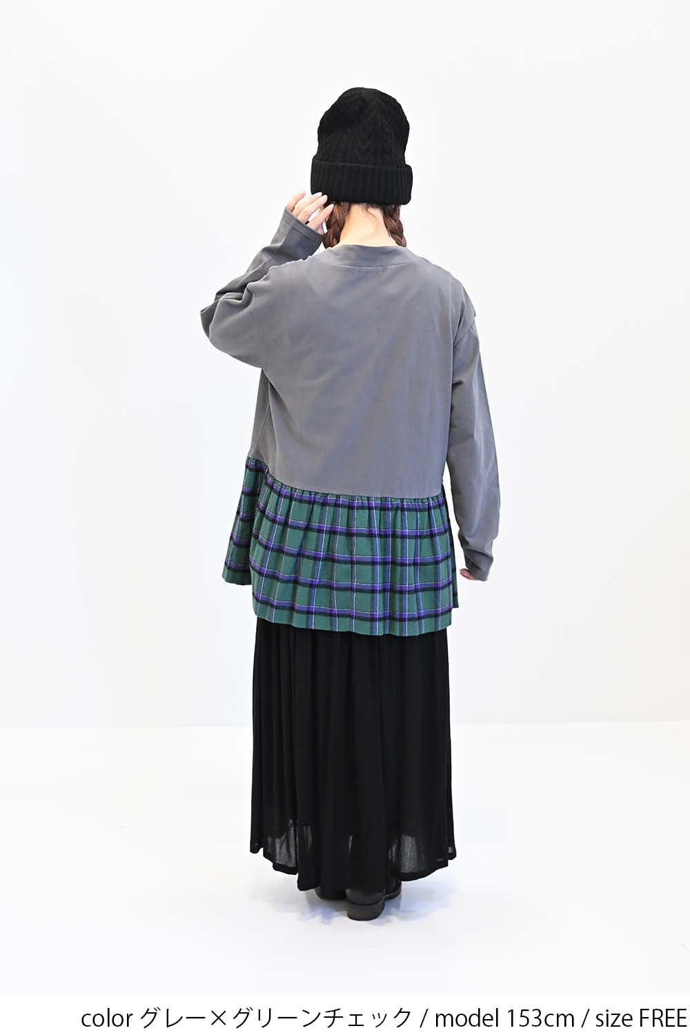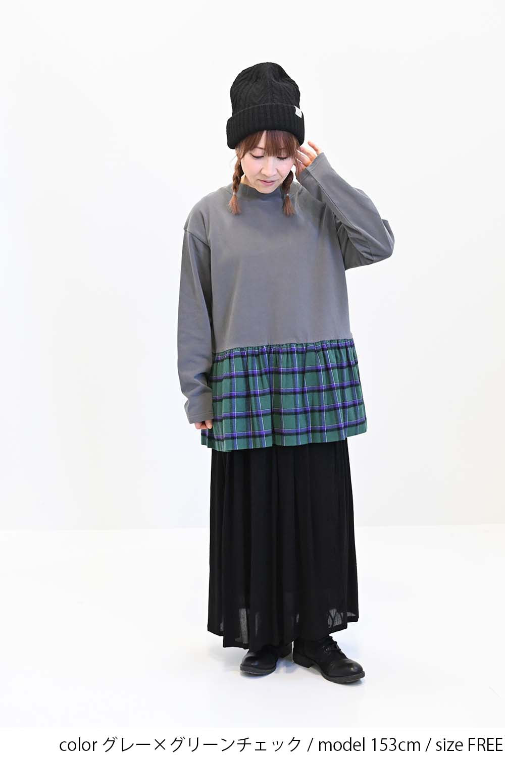 ウエスト下をチェック柄で切り替えた、大人可愛いペプラムチュニック。