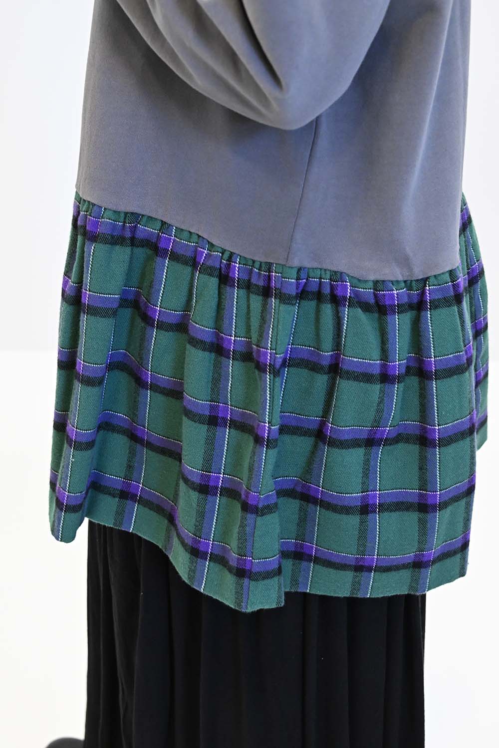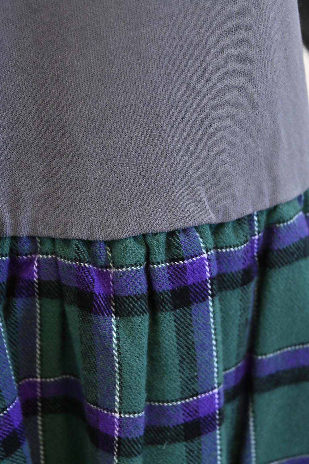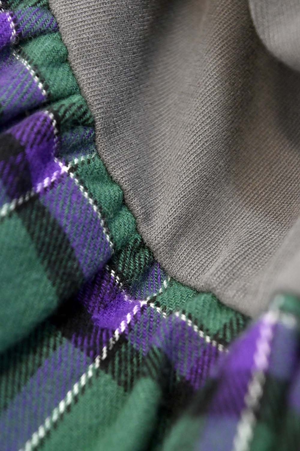 ウエスト下のチェック柄部分はネル素材を使用し、程よい厚みと温かみをプラスしています。