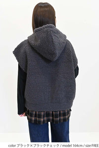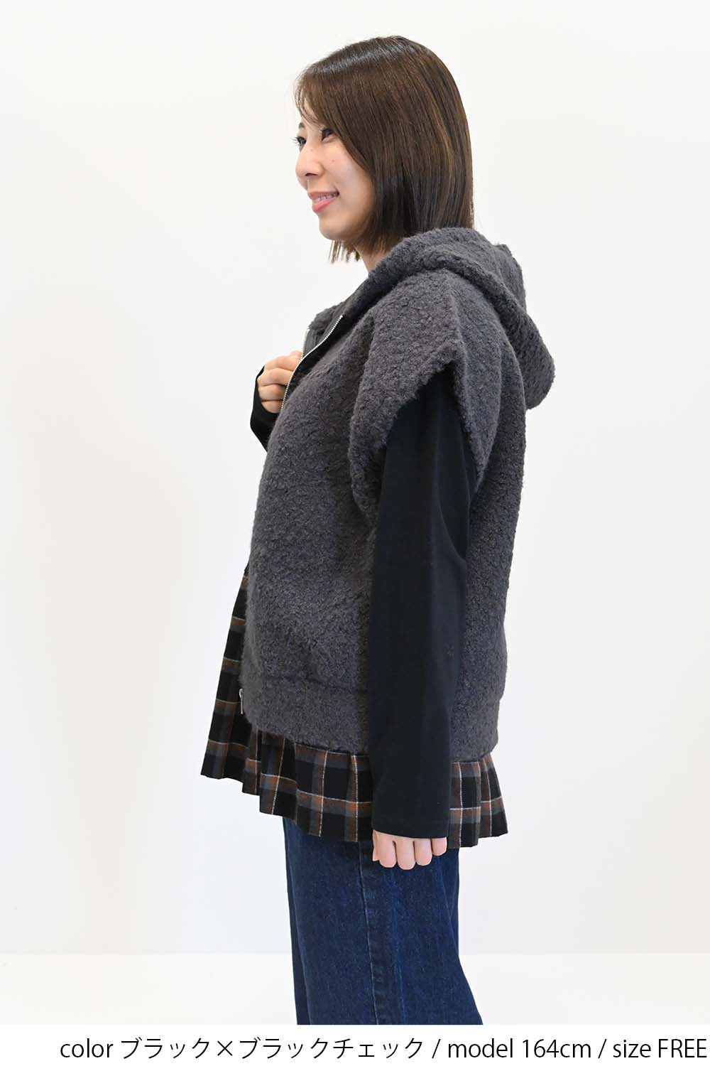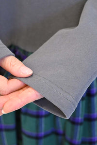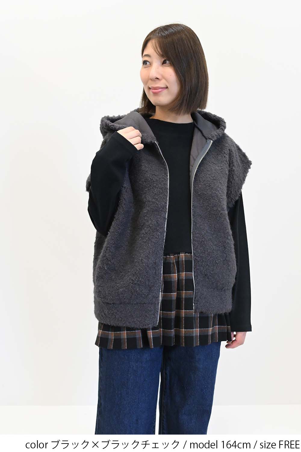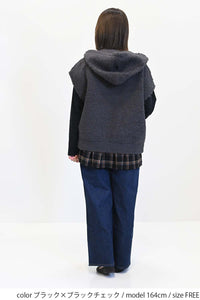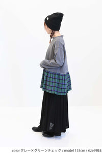 ウエスト下のチェック柄部分はネル素材を使用し、程よい厚みと温かみをプラスしています。