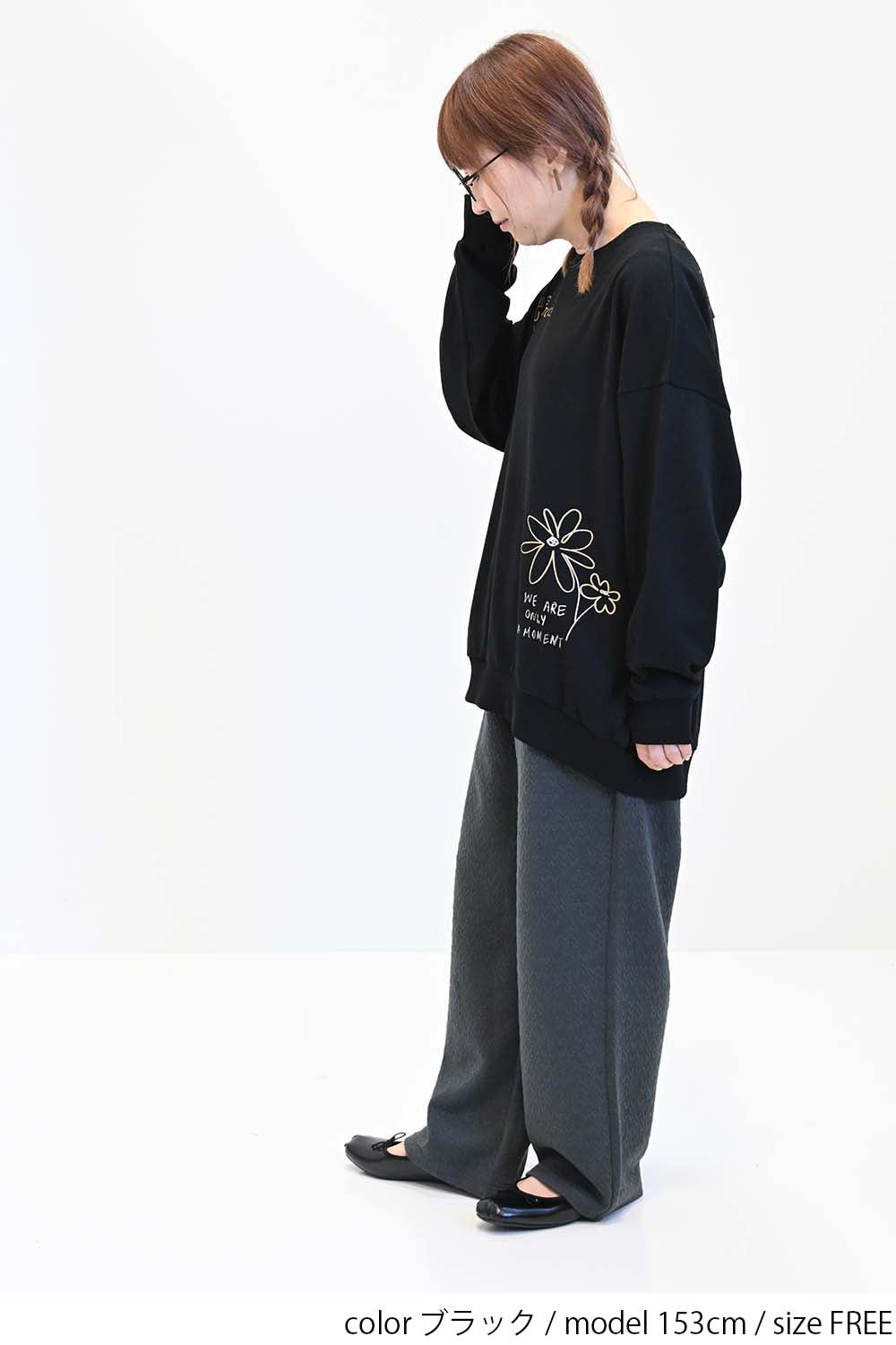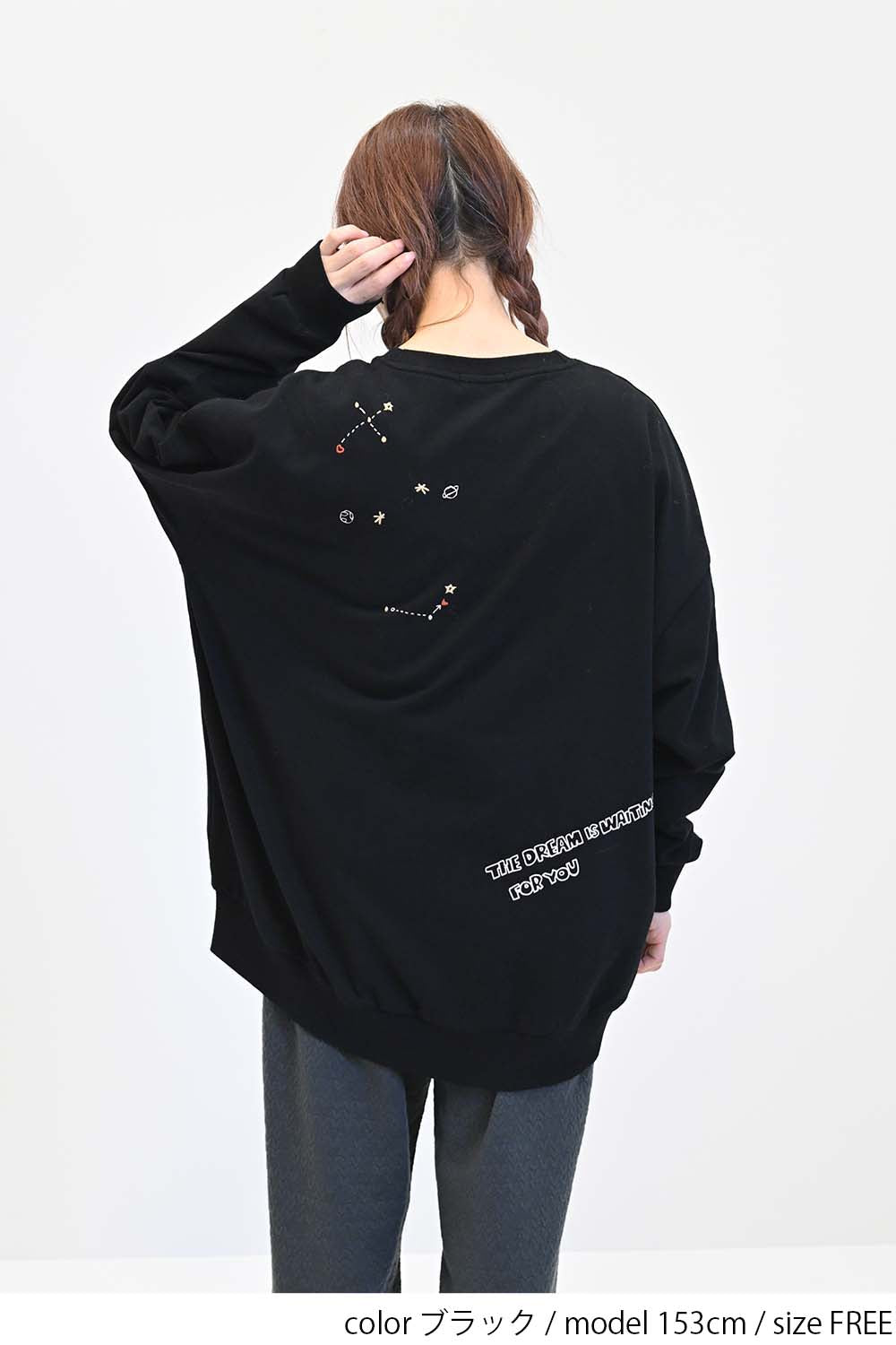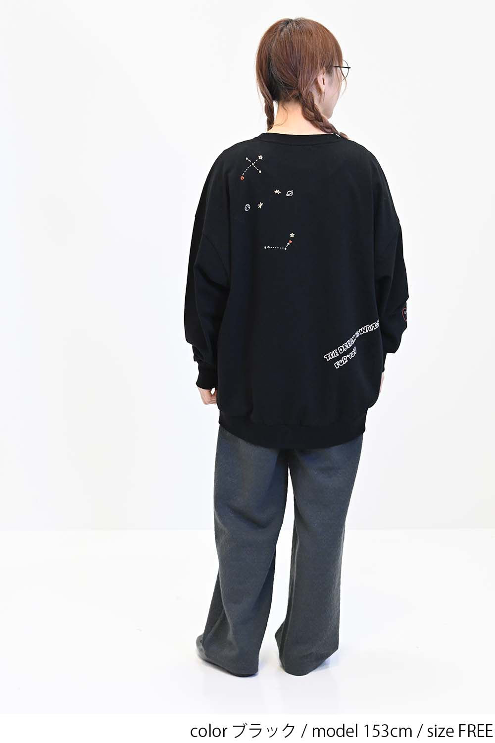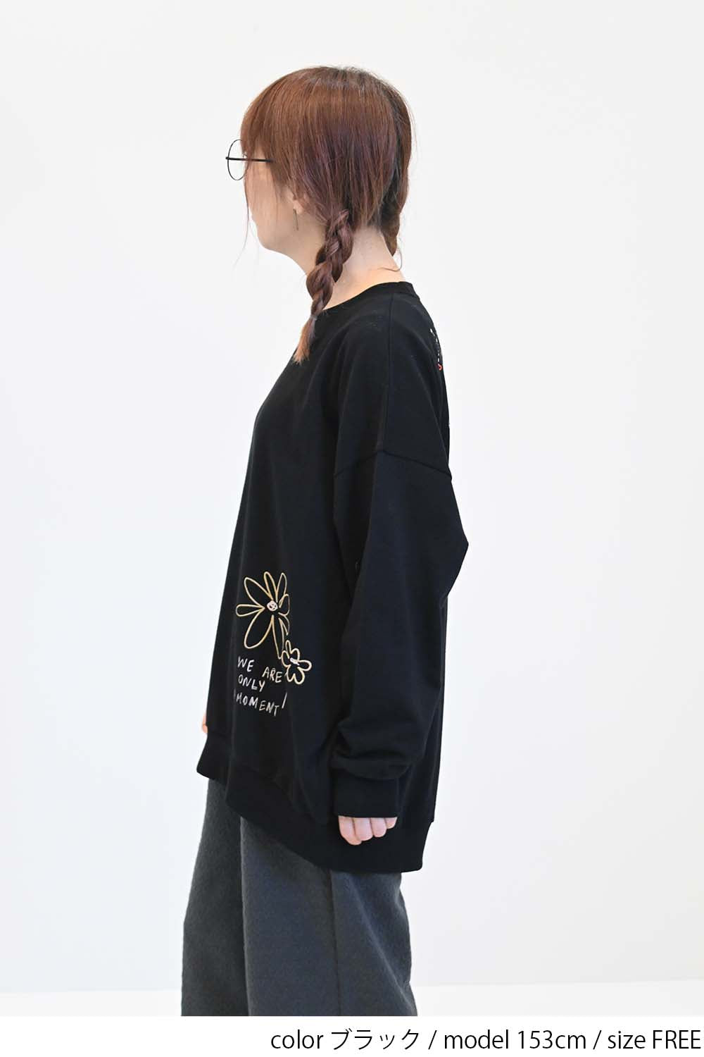 ロゴや星、お花などのとび刺繍が可愛らしいアクセントになったプルオーバー。