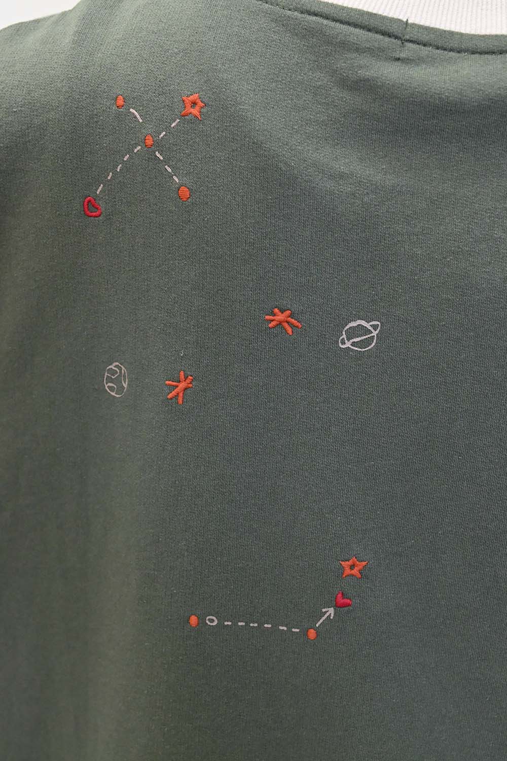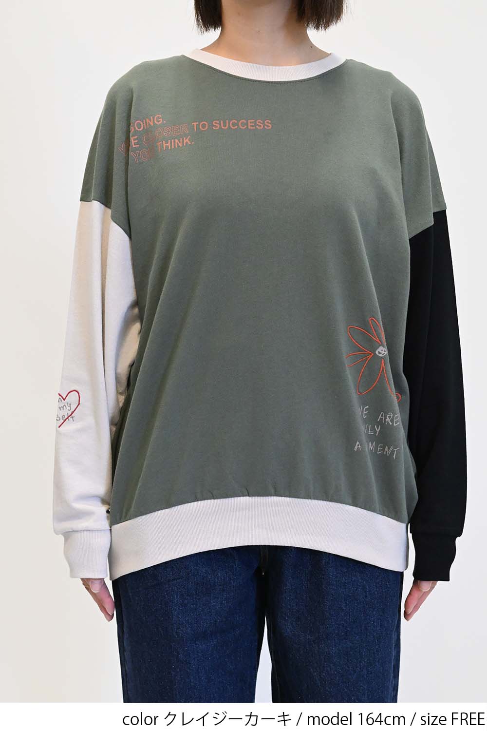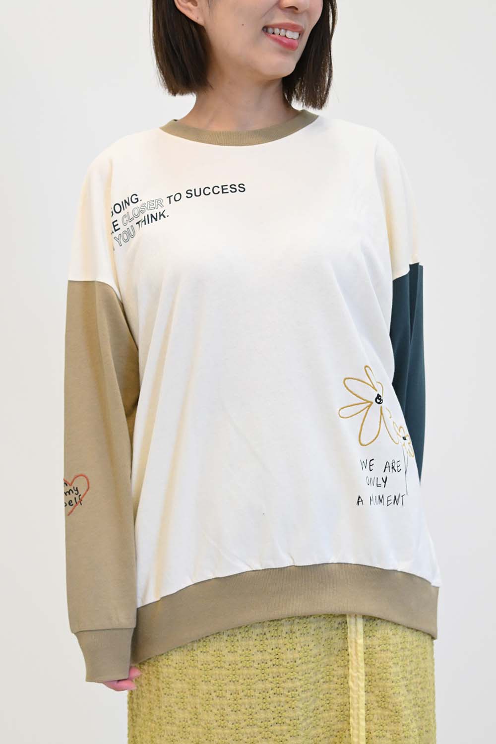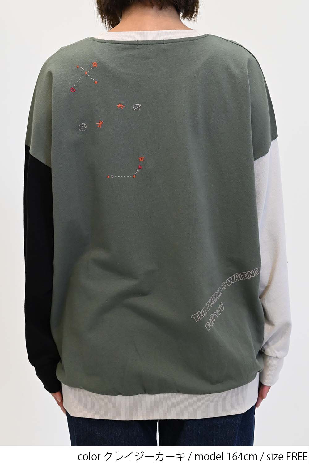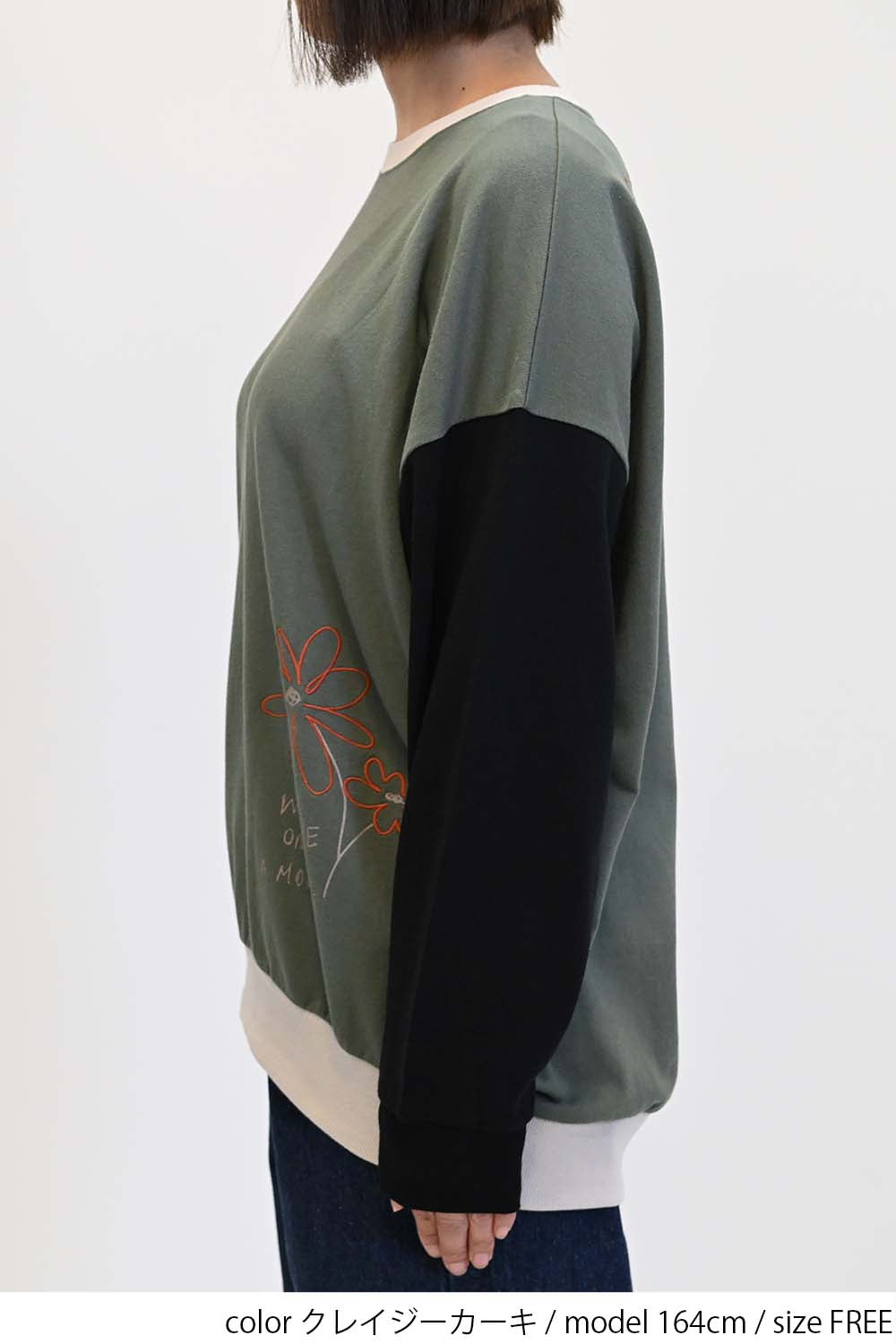 ロゴや星、お花などのとび刺繍が可愛らしいアクセントになったプルオーバー。