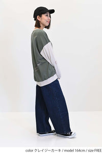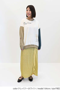 ワイドパンツやスカートを合わせたゆったりとした着こなしもおすすめです。