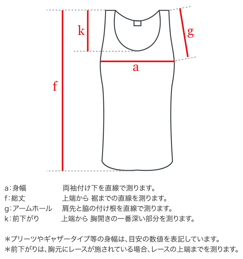 サイズ | 身幅 | 総丈 | アームホール | 前下がり |