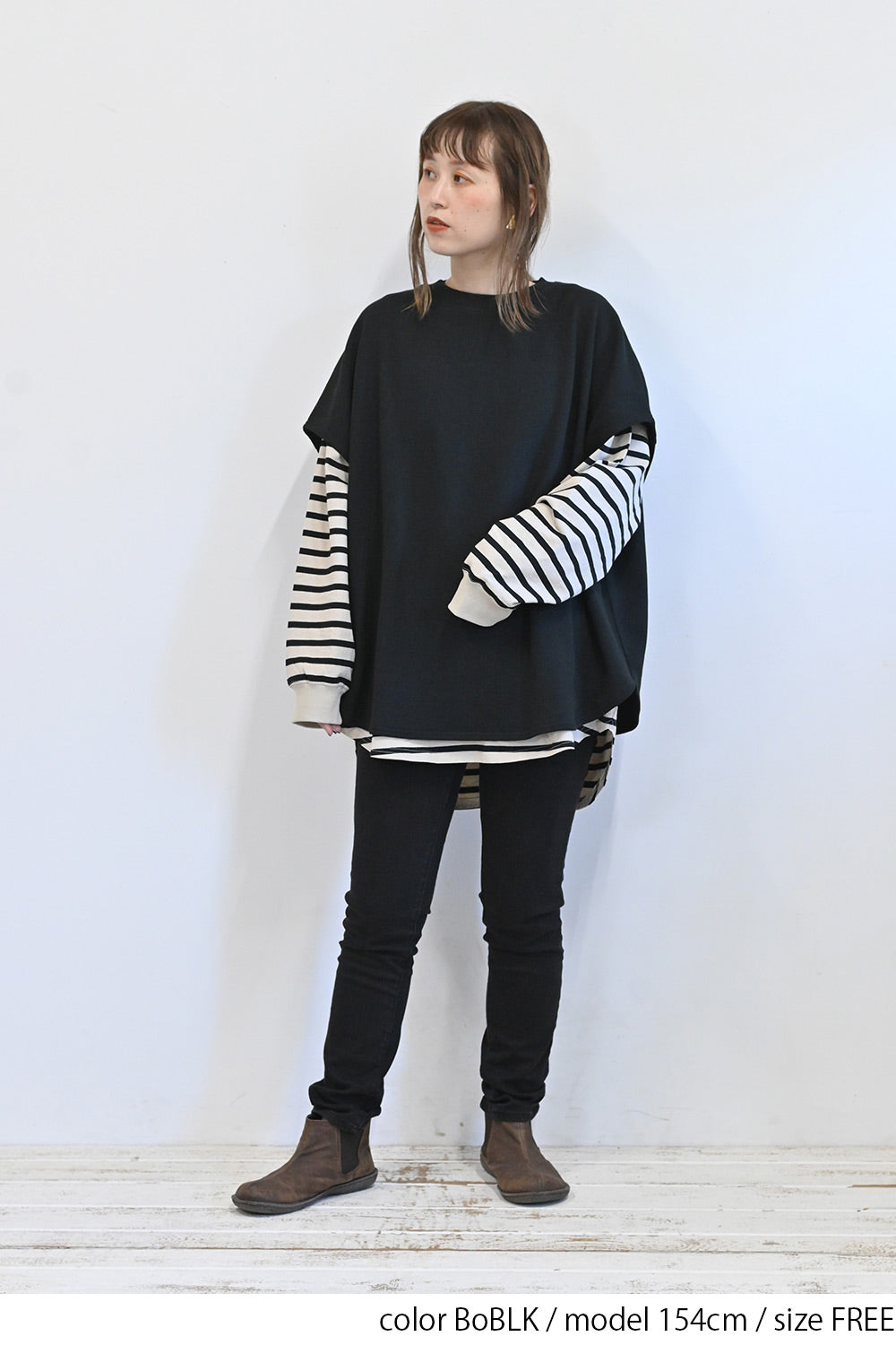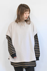 16/-OE天竺の太目の糸を使用した、しっかりとした生地感ながらも柔らかく着心地の良いチュニックです。