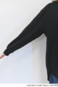 襟元と袖口のリブ仕様がカジュアルなシルエットを作ります。