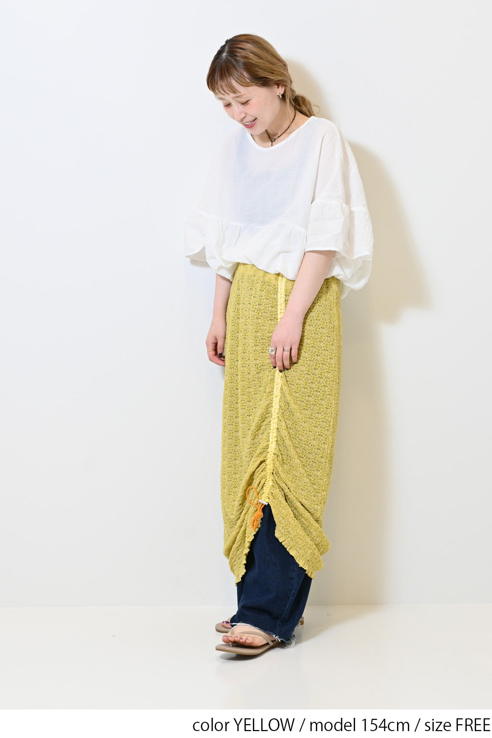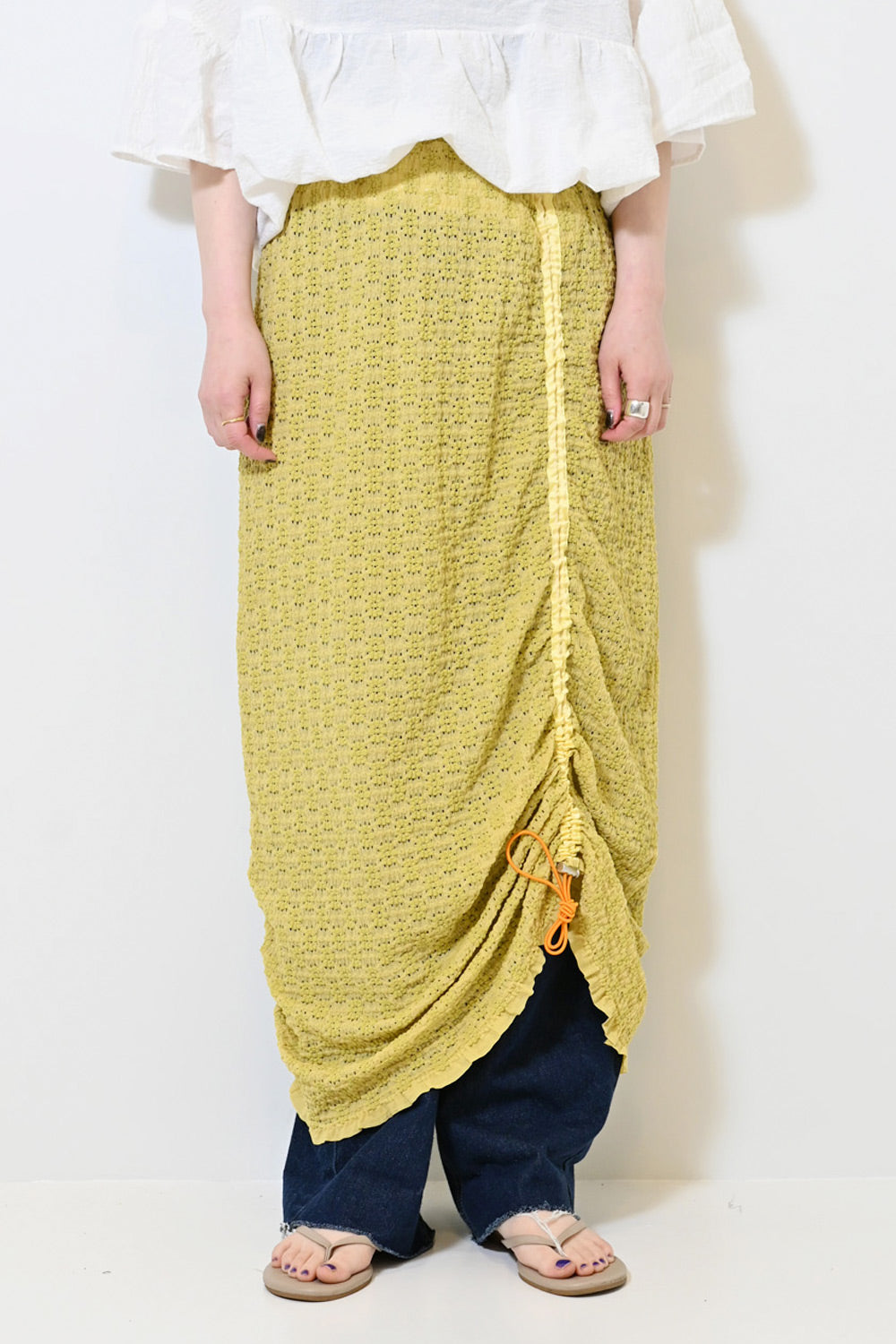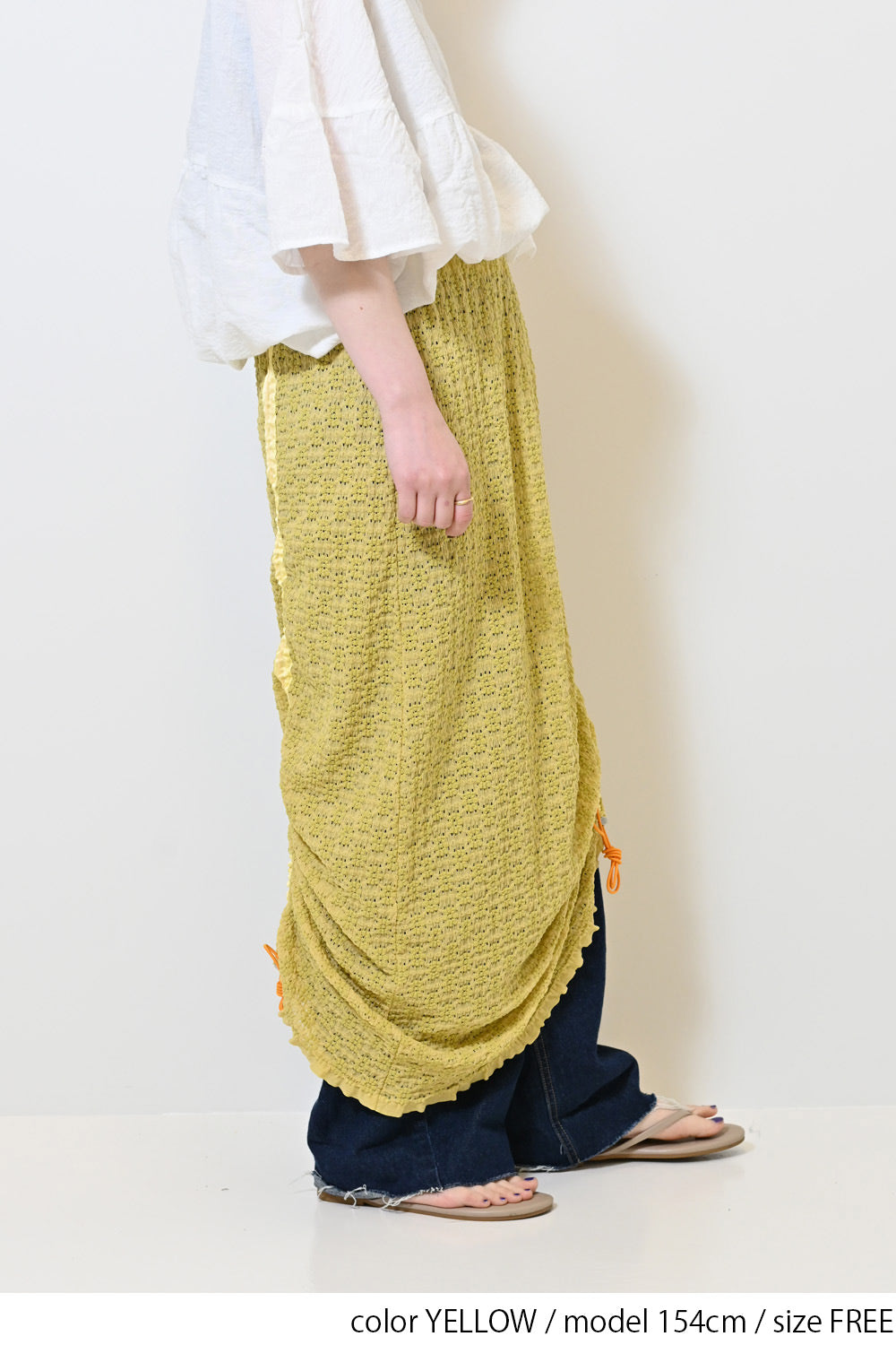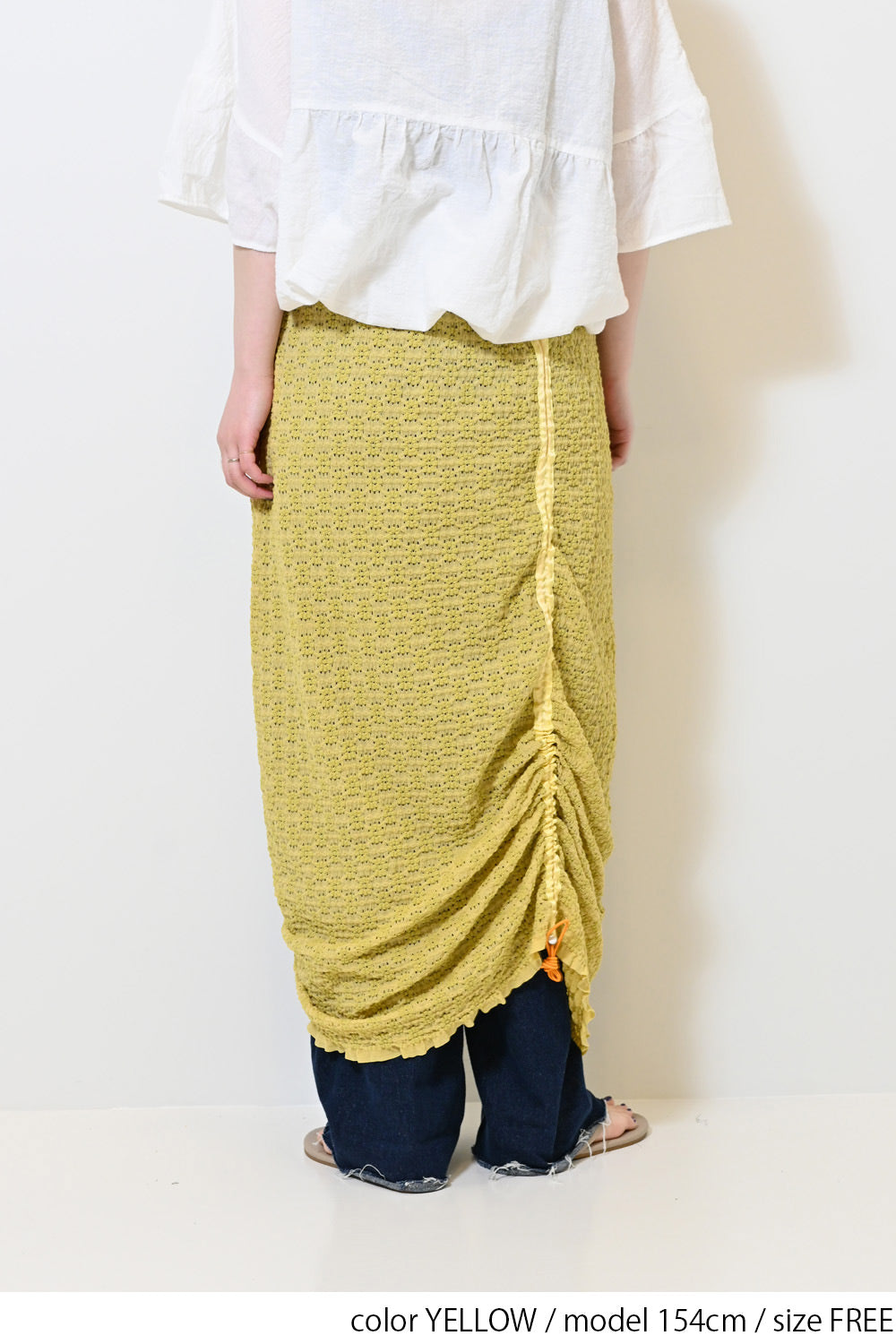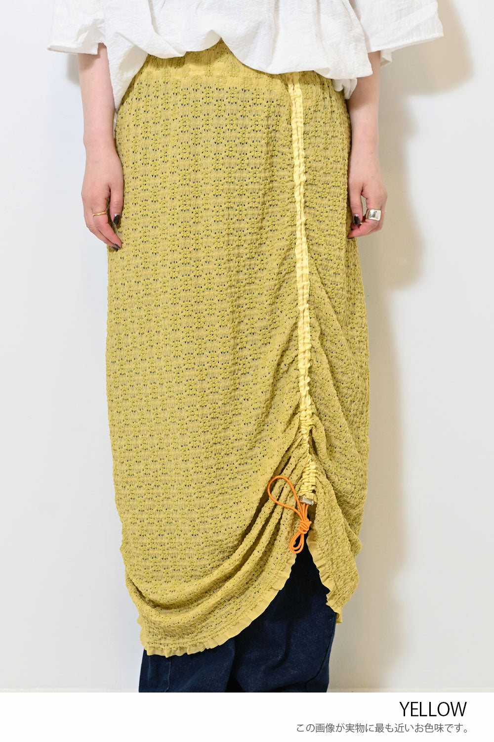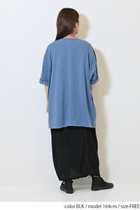 くしゅっと寄せて短めにしたり、ロングシルエットを楽しんだり、アレンジ自在の1枚です。
