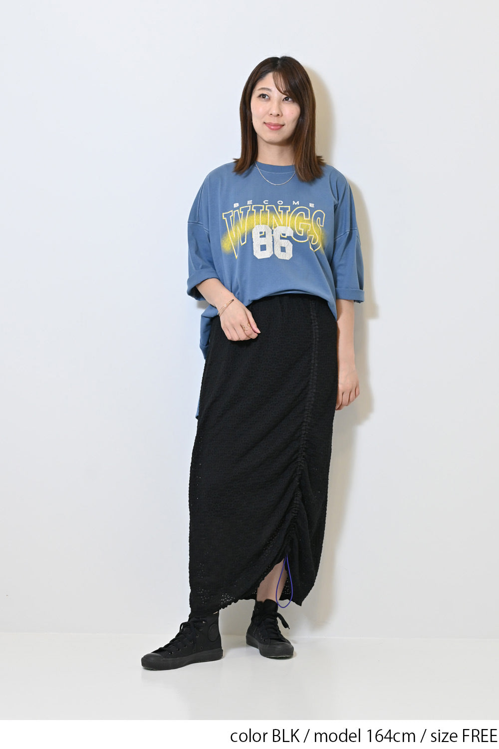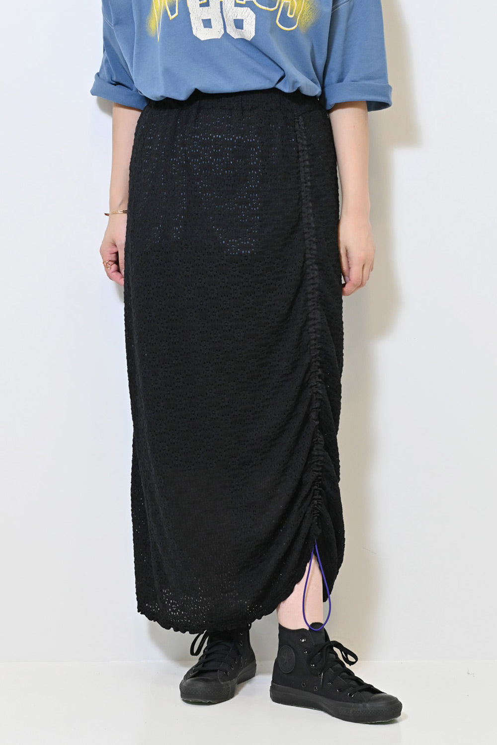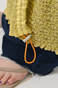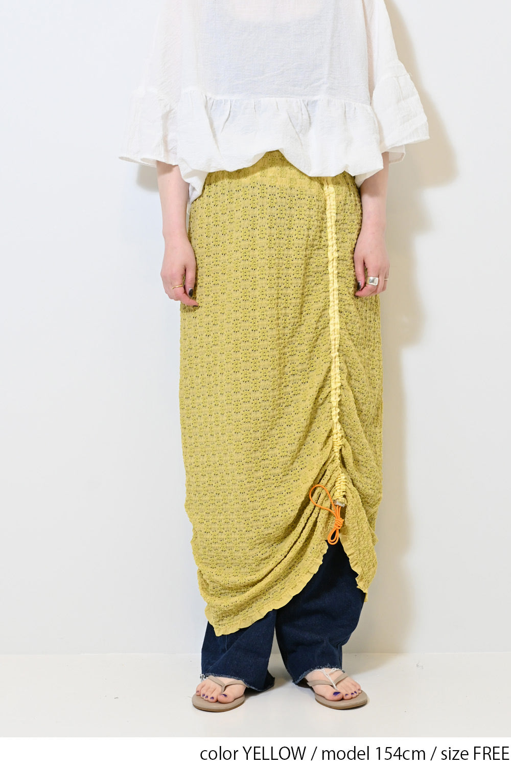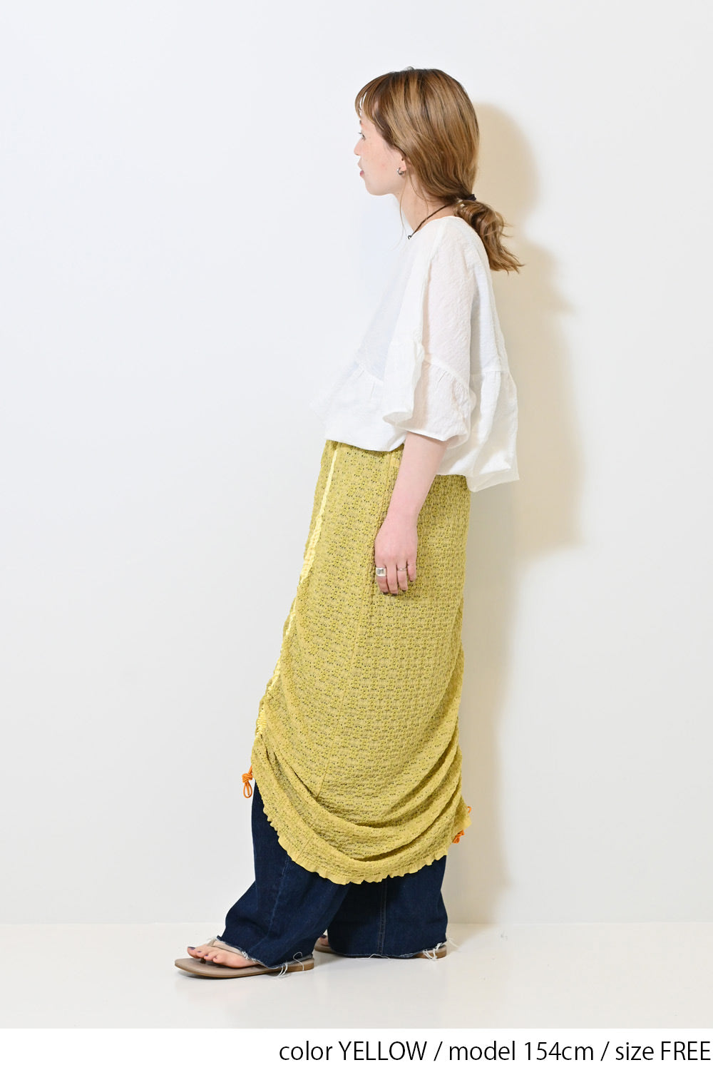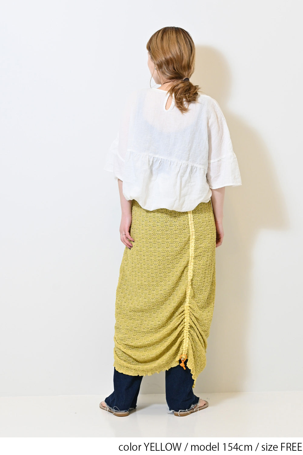 くしゅっと寄せて短めにしたり、ロングシルエットを楽しんだり、アレンジ自在の1枚です。