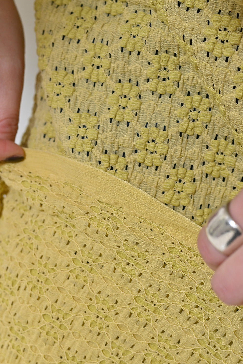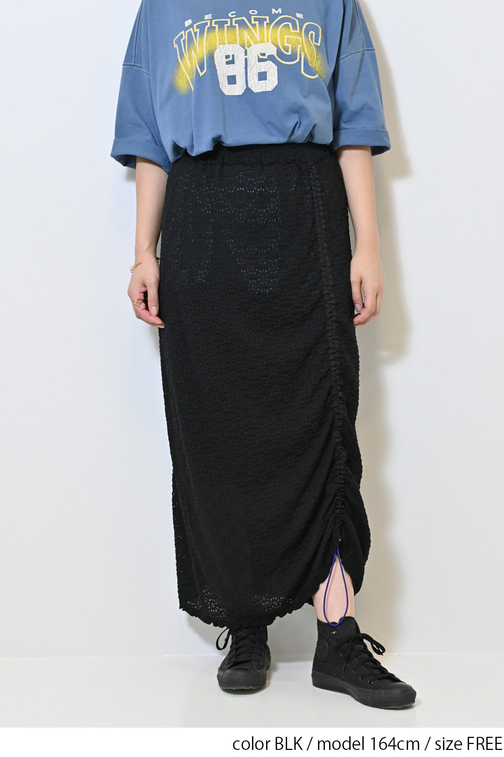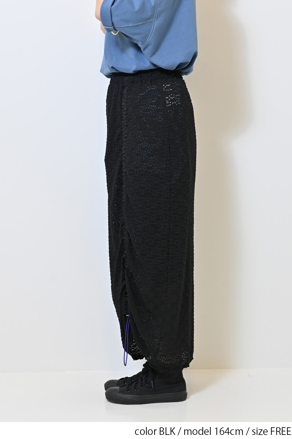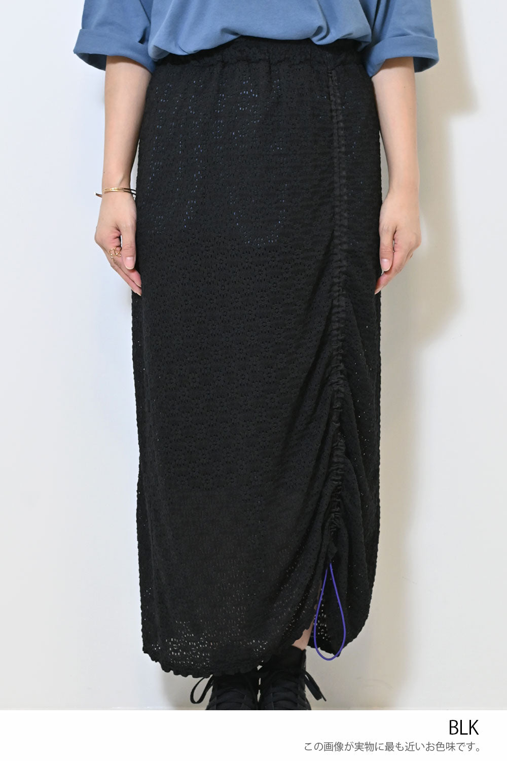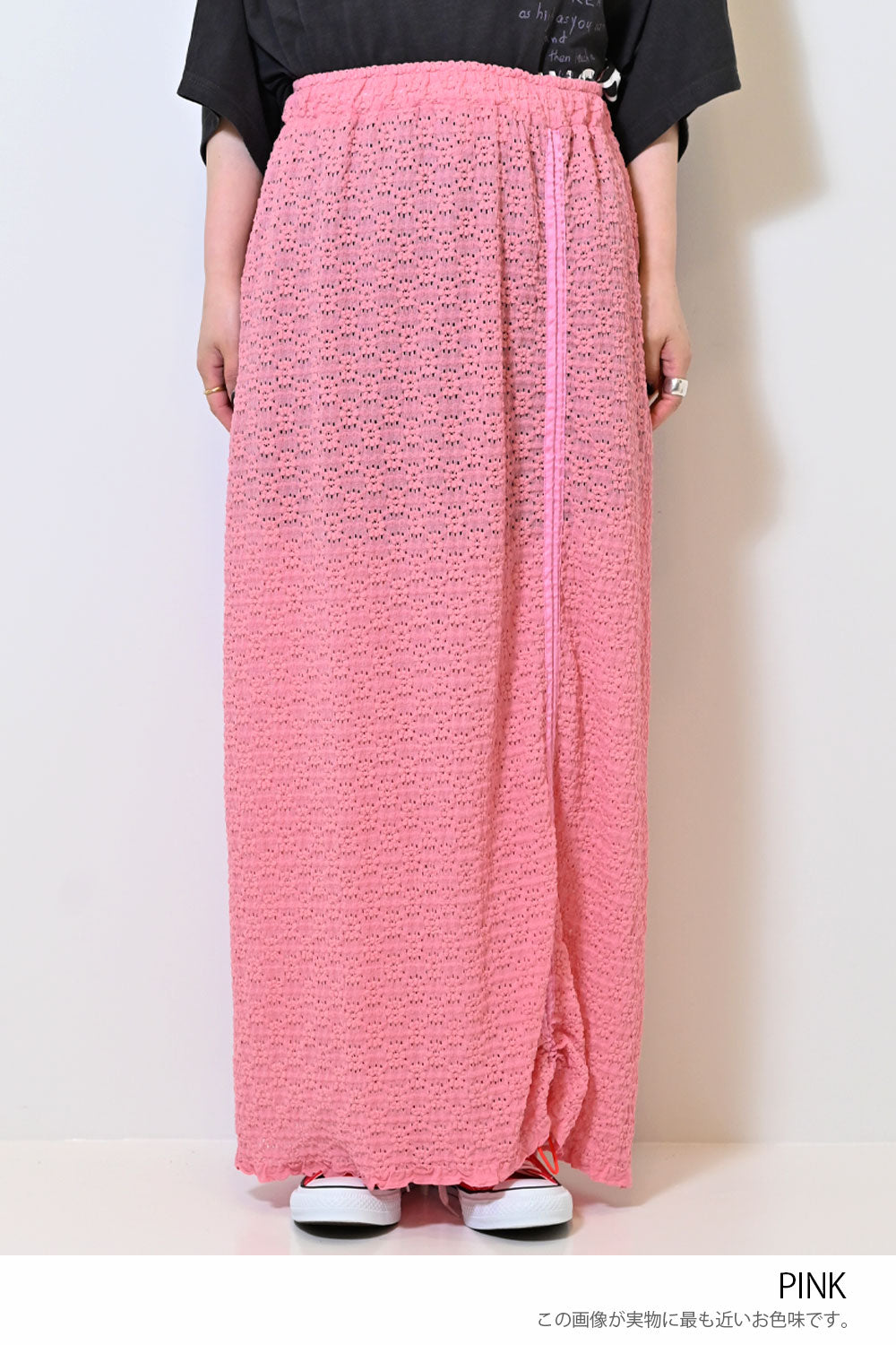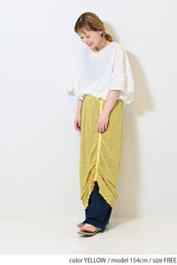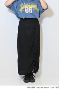 シャーリングデザインが魅力のレーススカート。