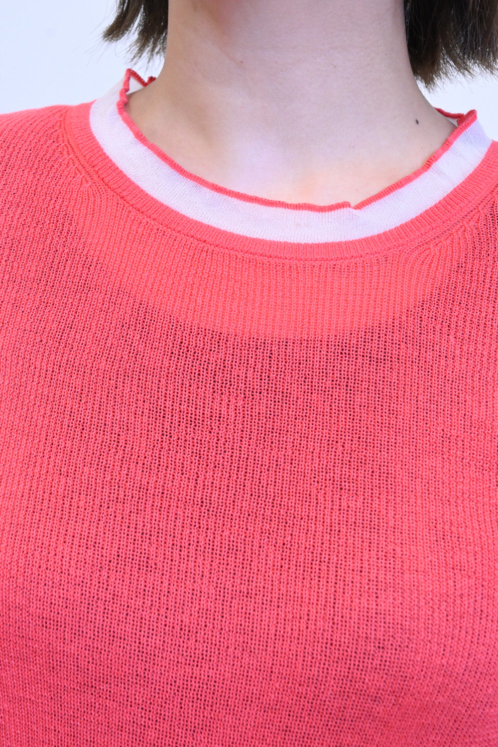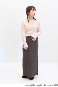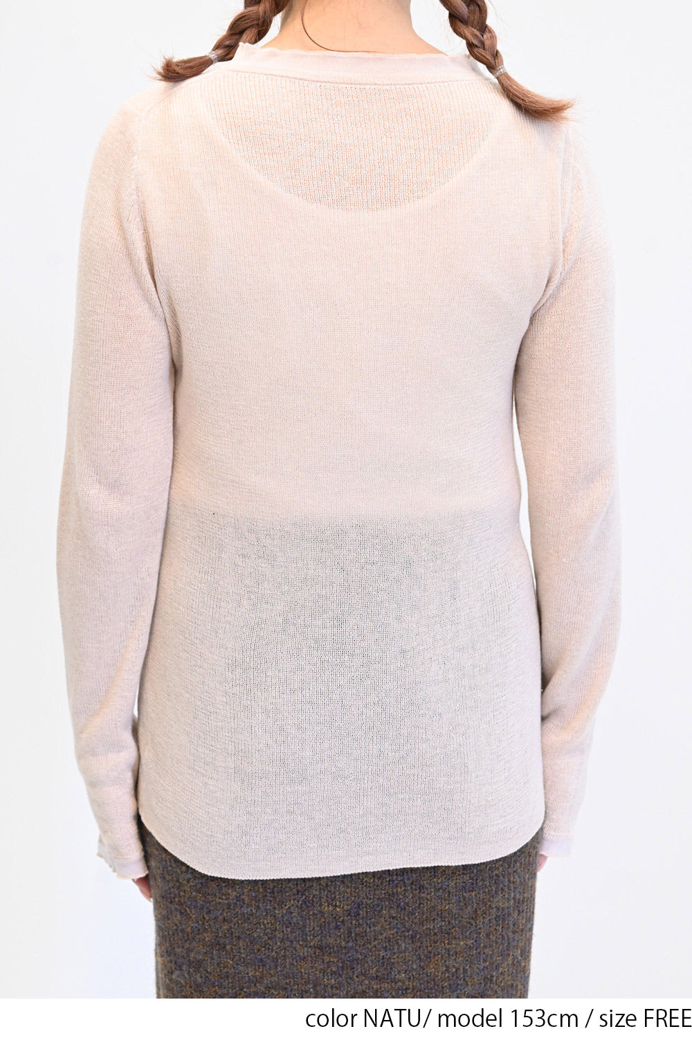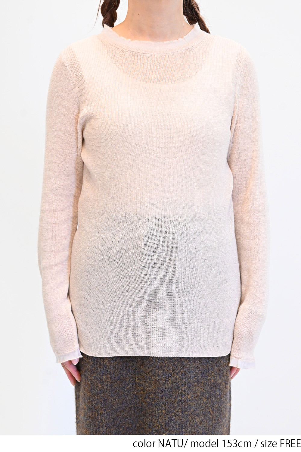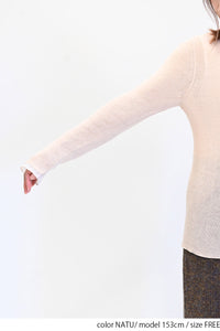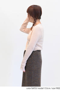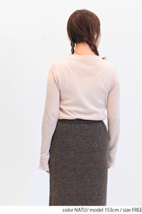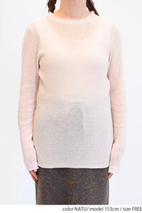 ガーゼのような優しい編み地のシアーニット素材。