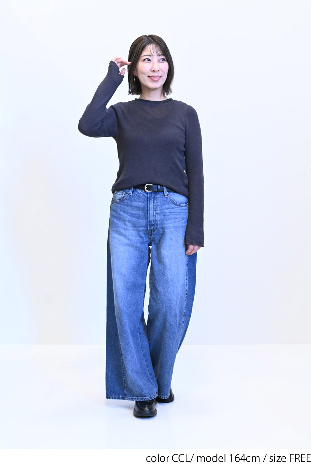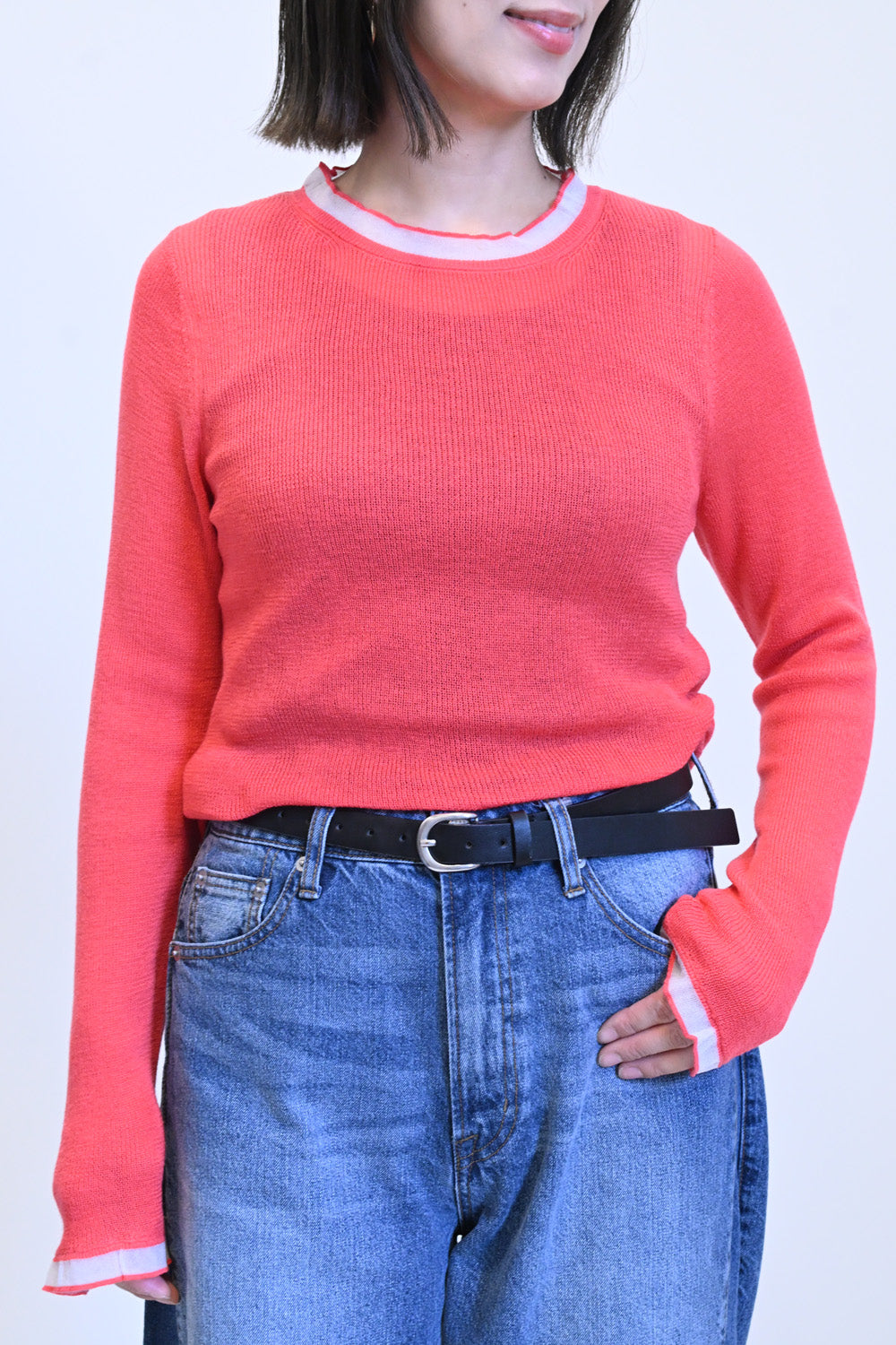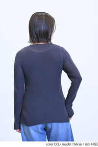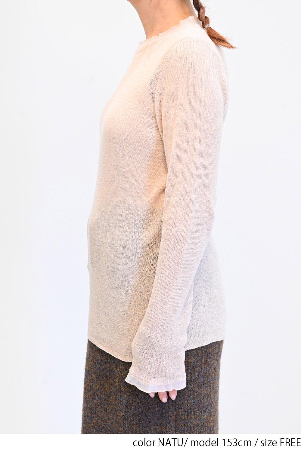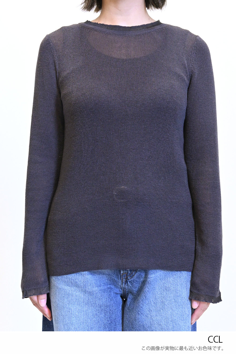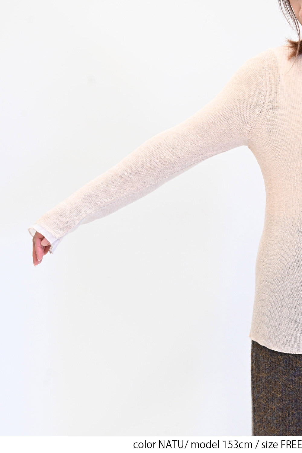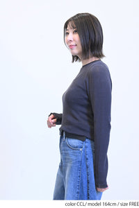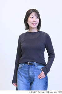 薄手ながらも程よい透け感があり、インナーを合わせたレイヤードスタイルにもぴったりです。