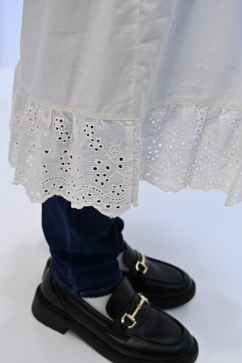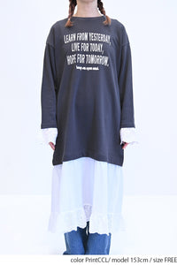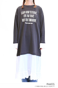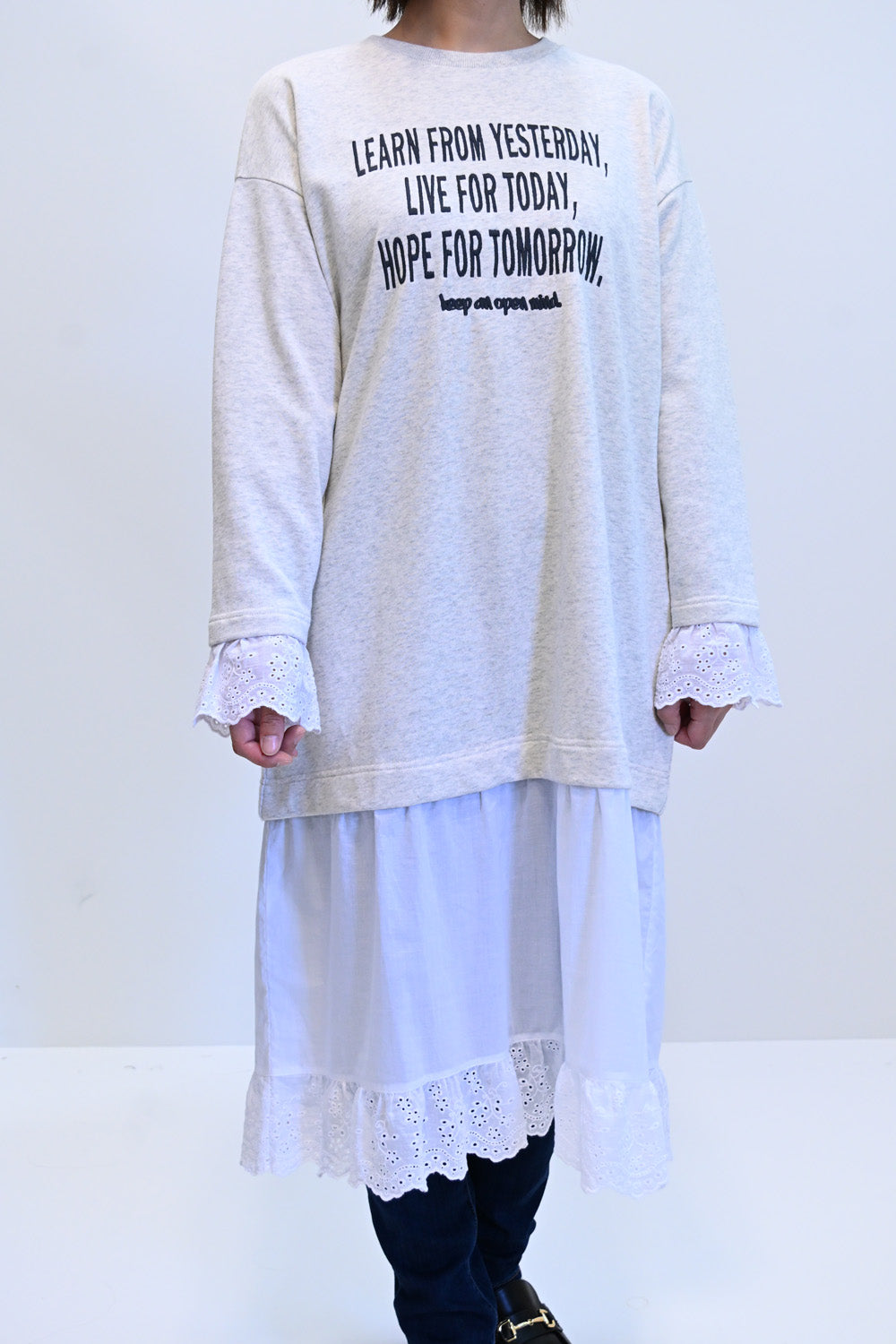 スウェットのようなラフな着心地と、レースの繊細な甘さを組み合わせた、大人のためのワンピース。