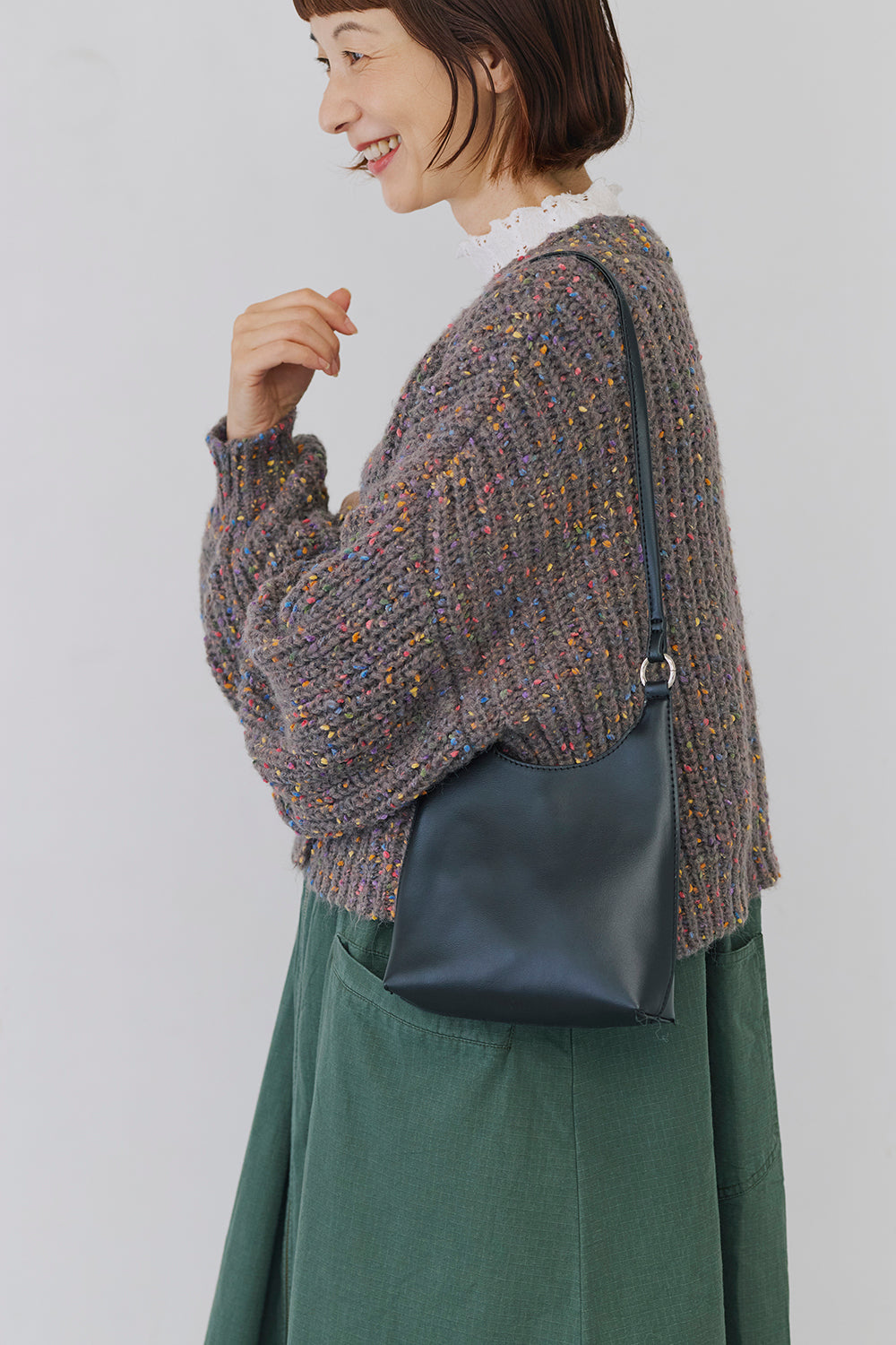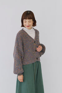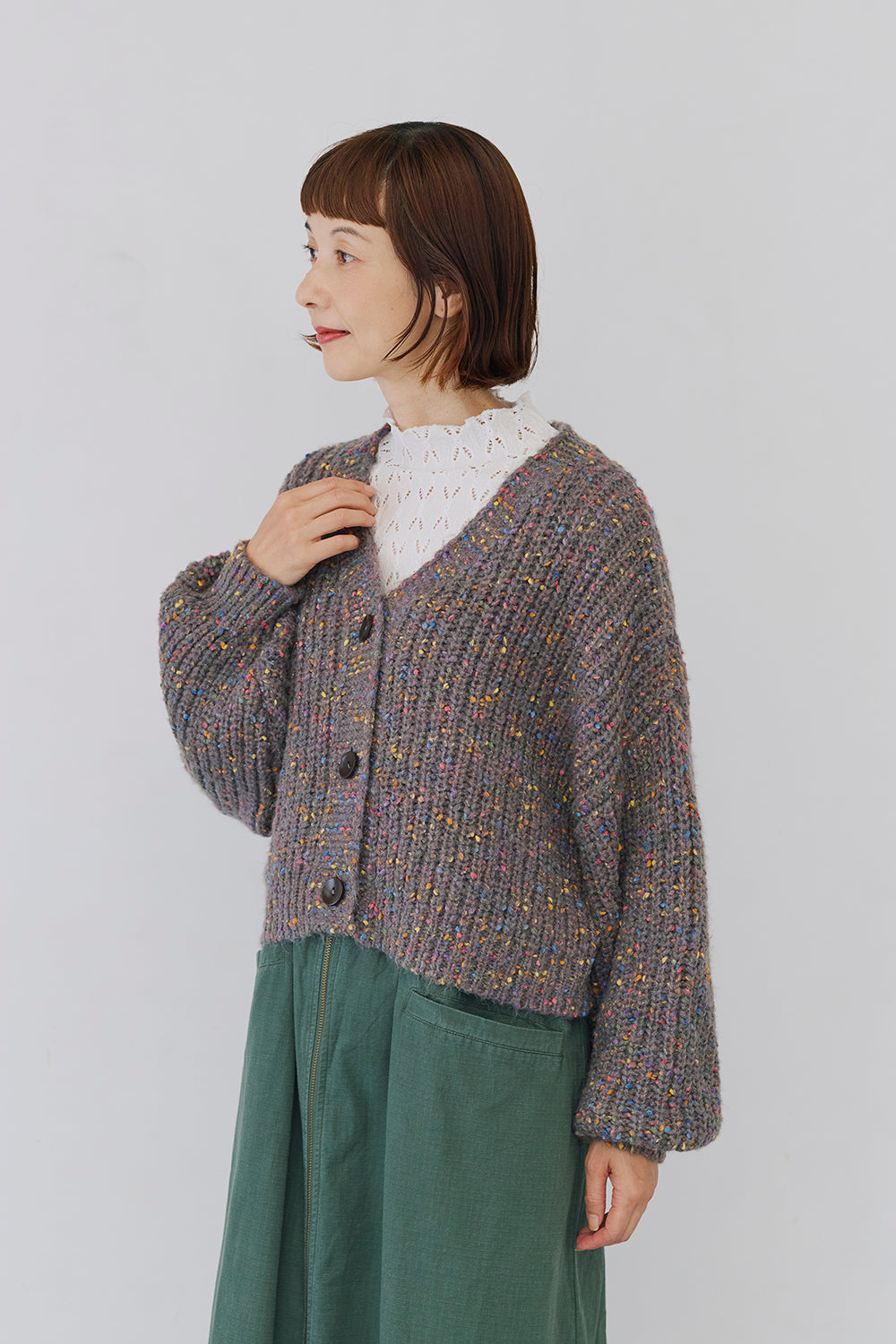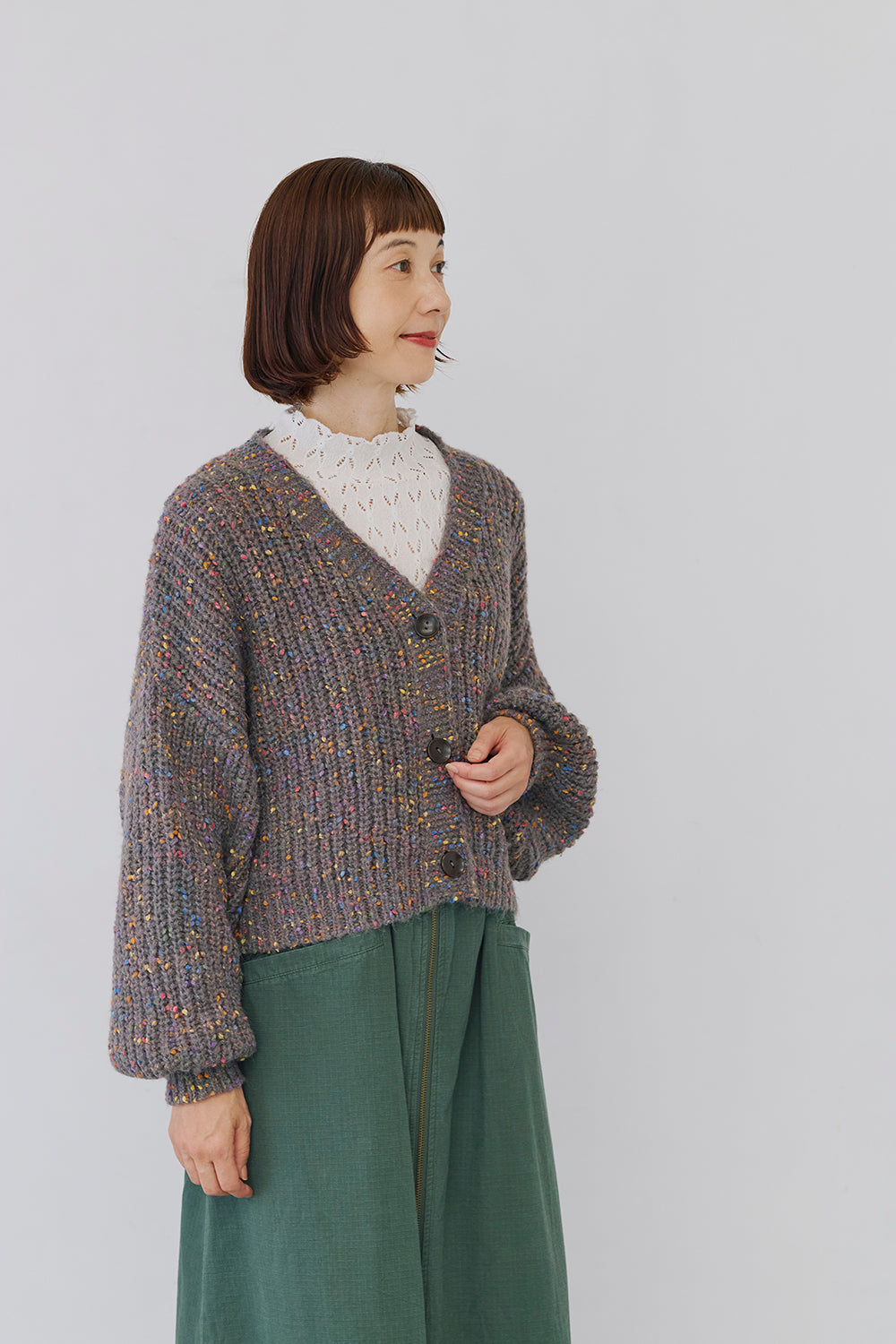 ミックスヤーンでざっくりと編んだ、ニット生地が魅力的なカーディガンです。
