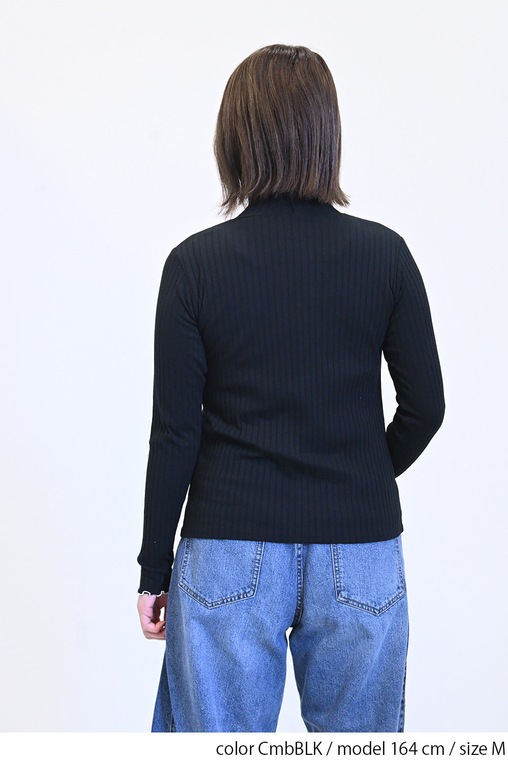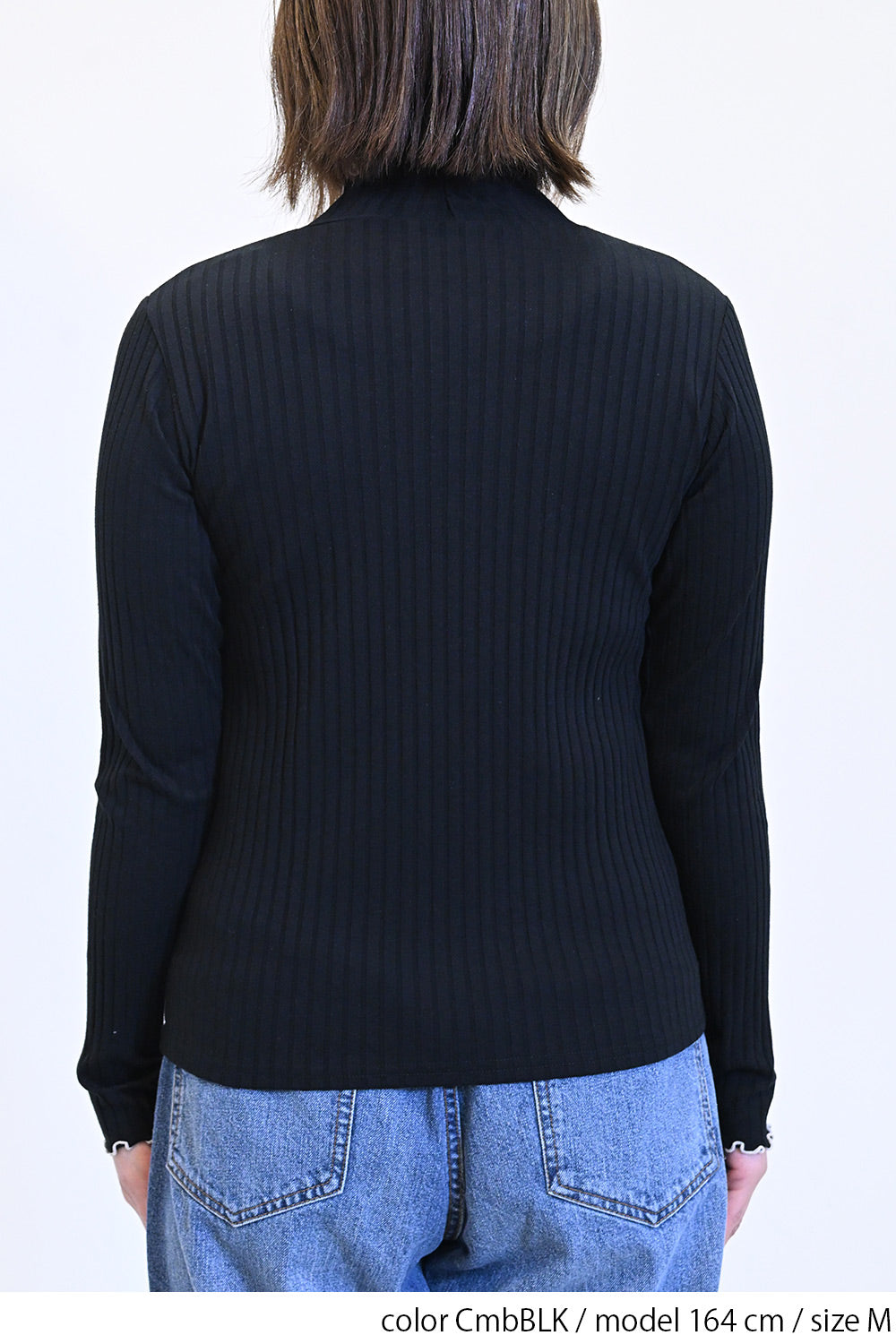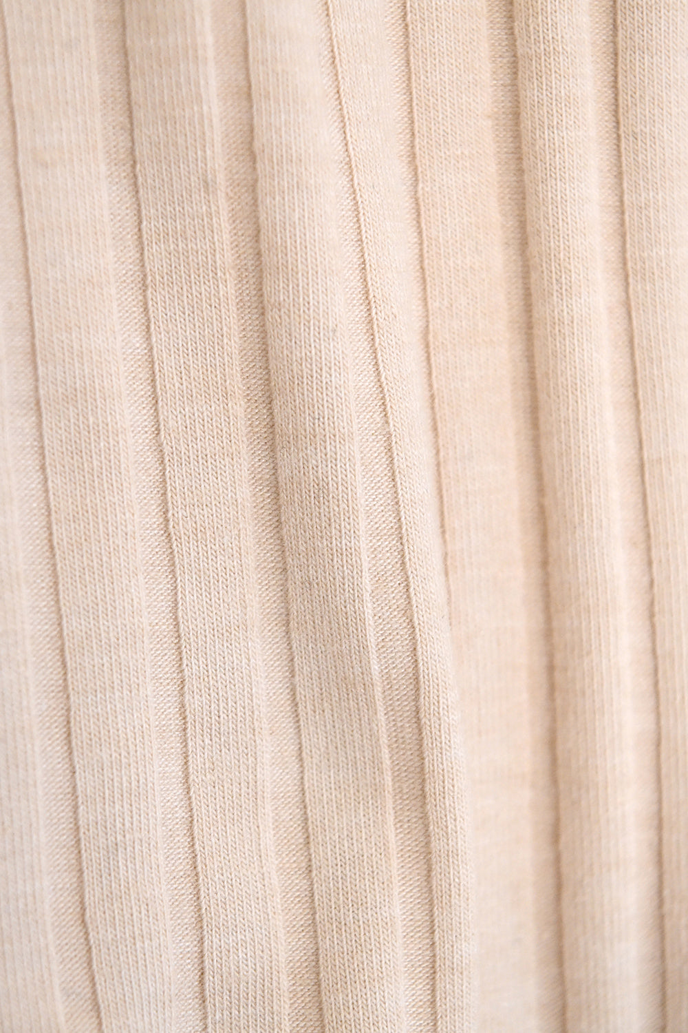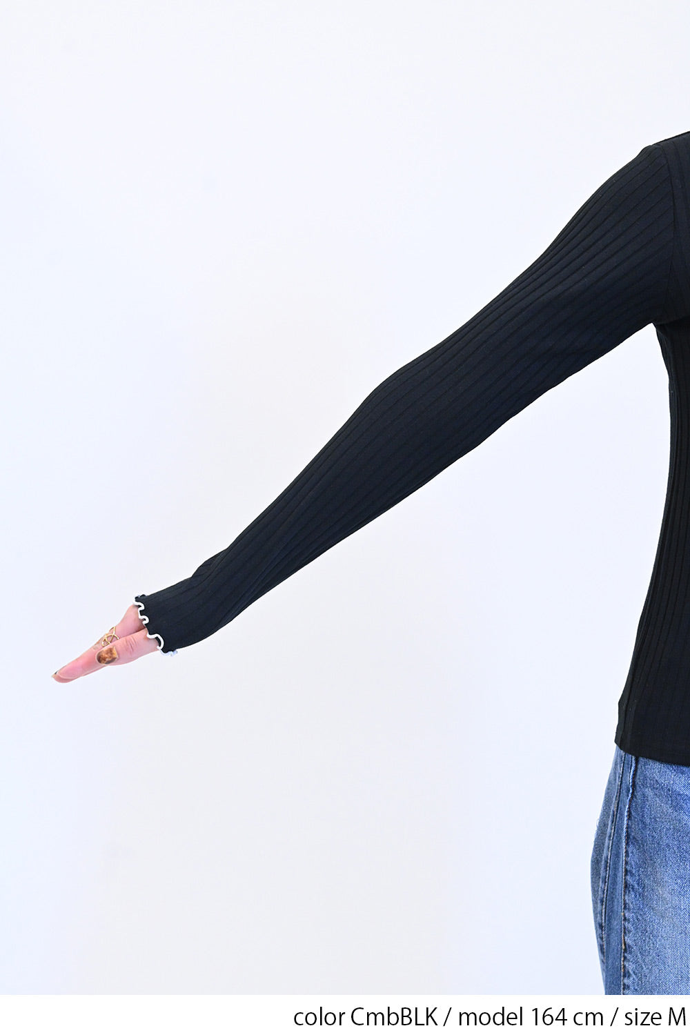 程よいフィット感のリブ素材が体のラインに優しくフィットし、着心地も抜群。
