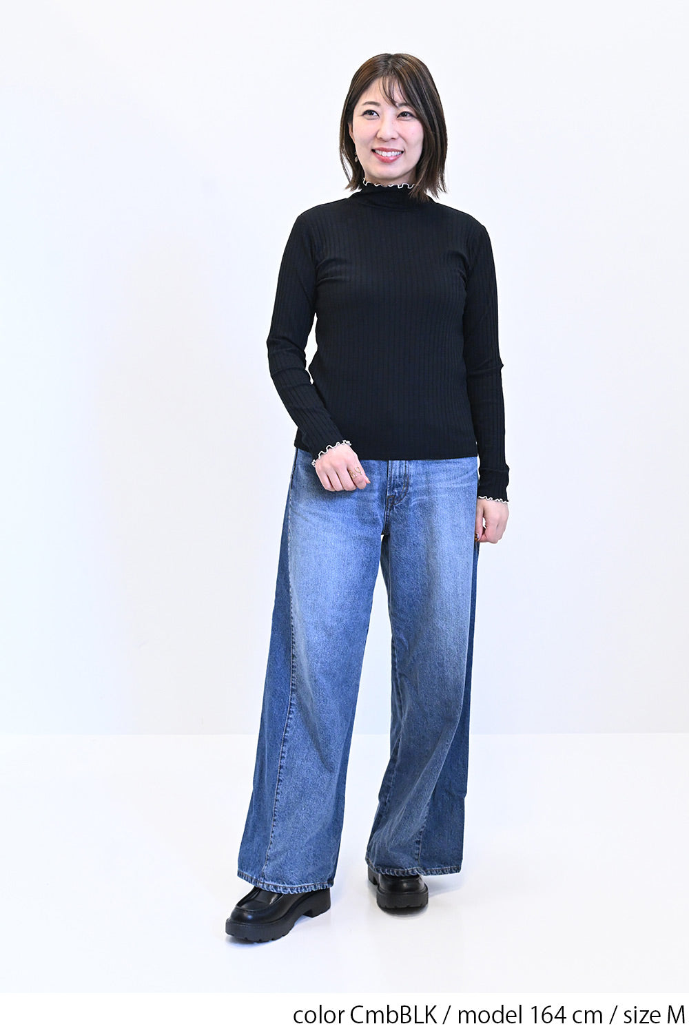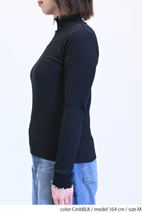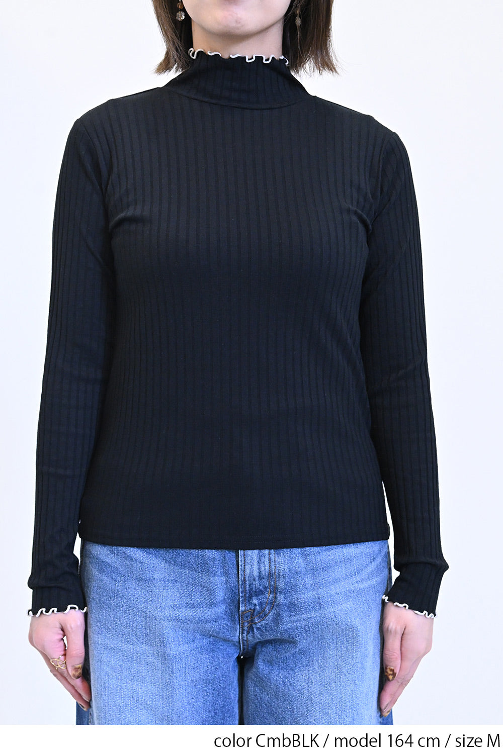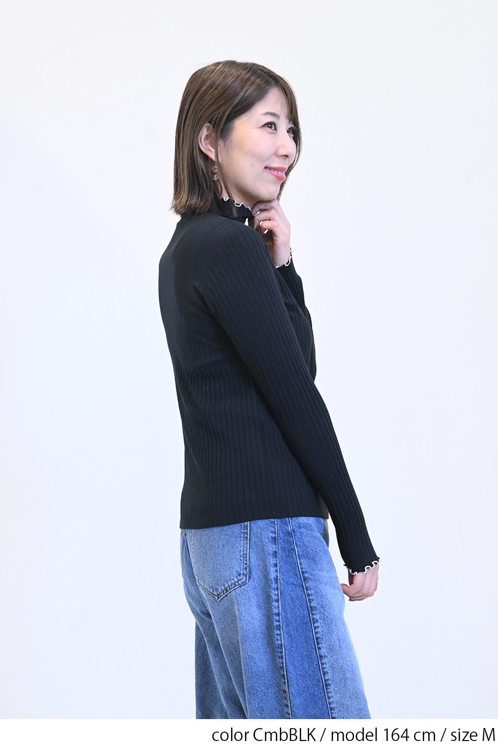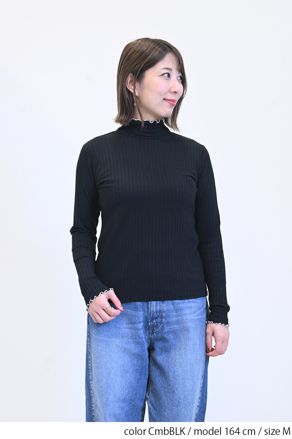 程よいフィット感のリブ素材が体のラインに優しくフィットし、着心地も抜群。