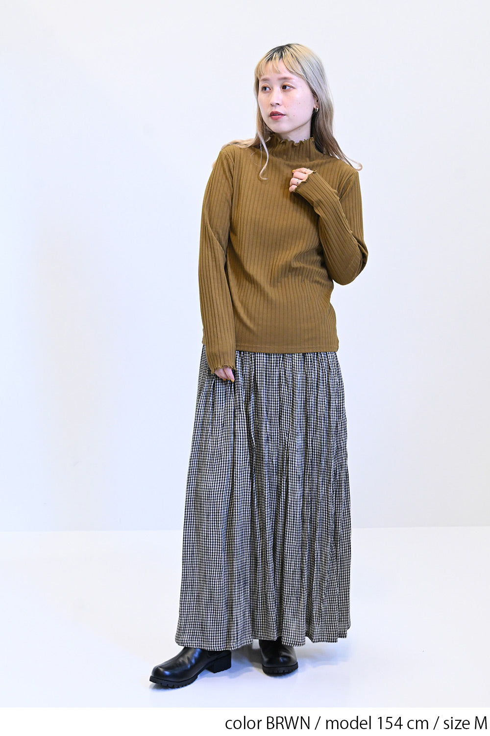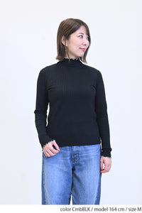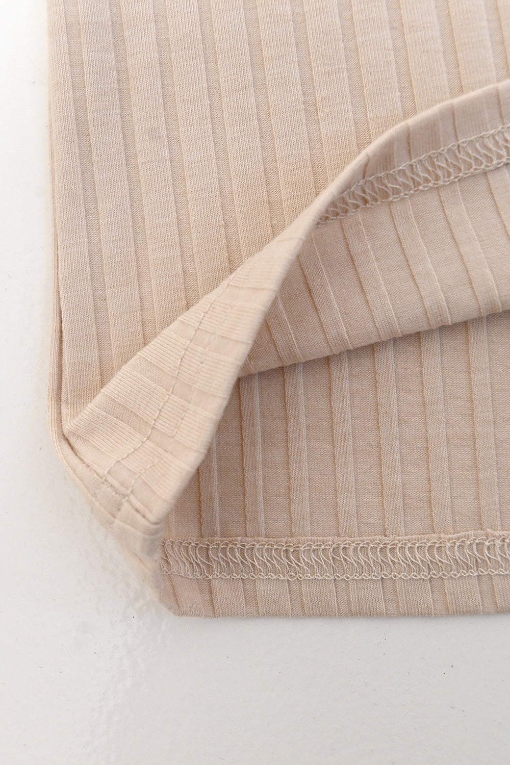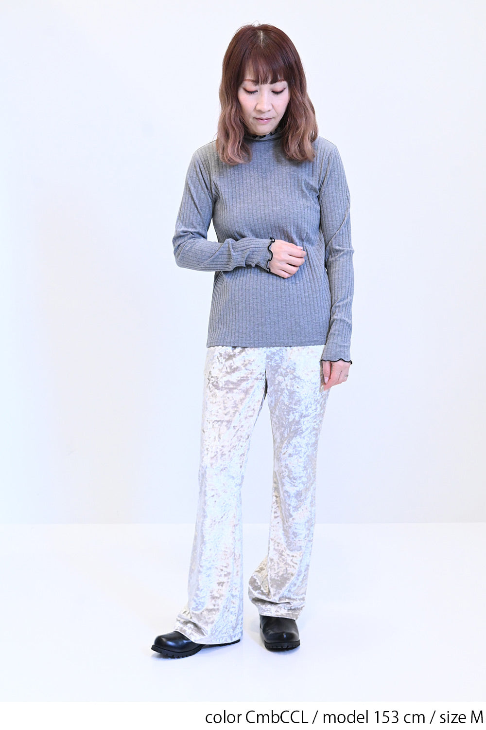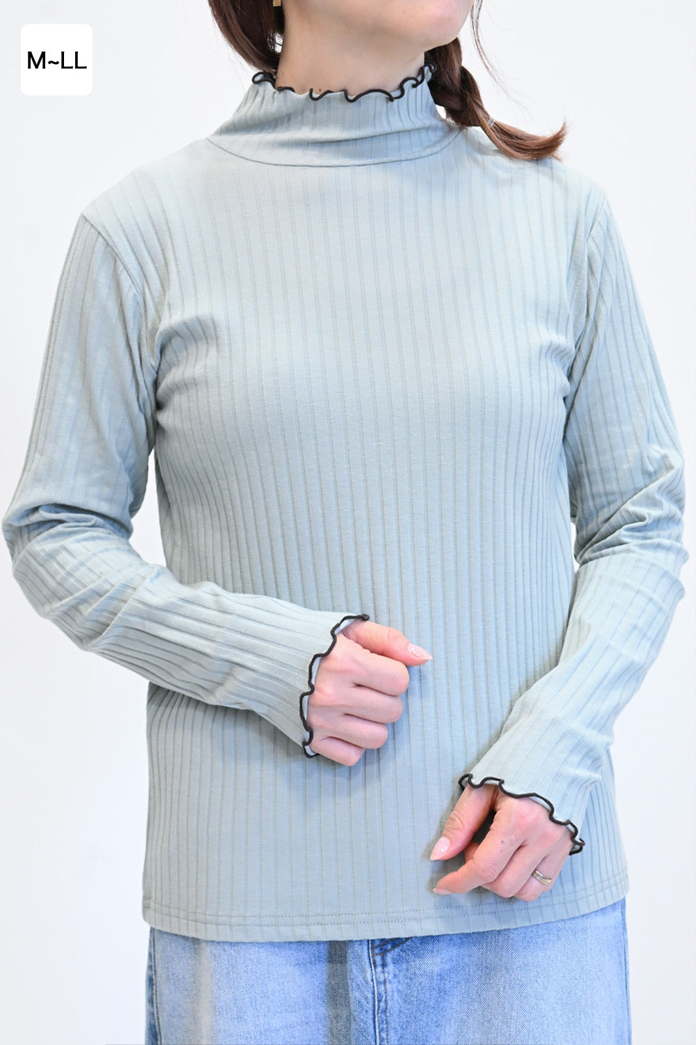 程よいフィット感のリブ素材が体のラインに優しくフィットし、着心地も抜群。