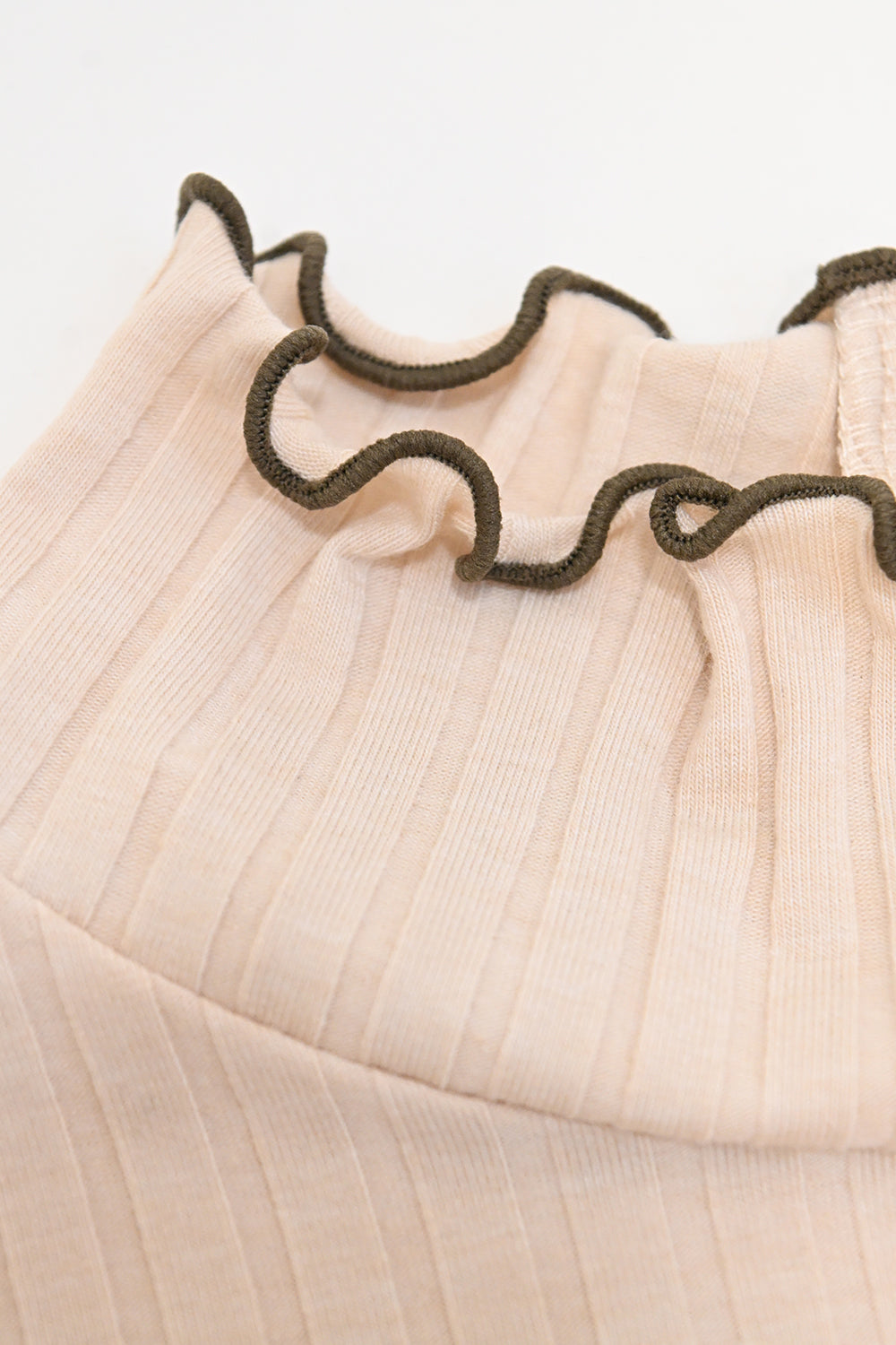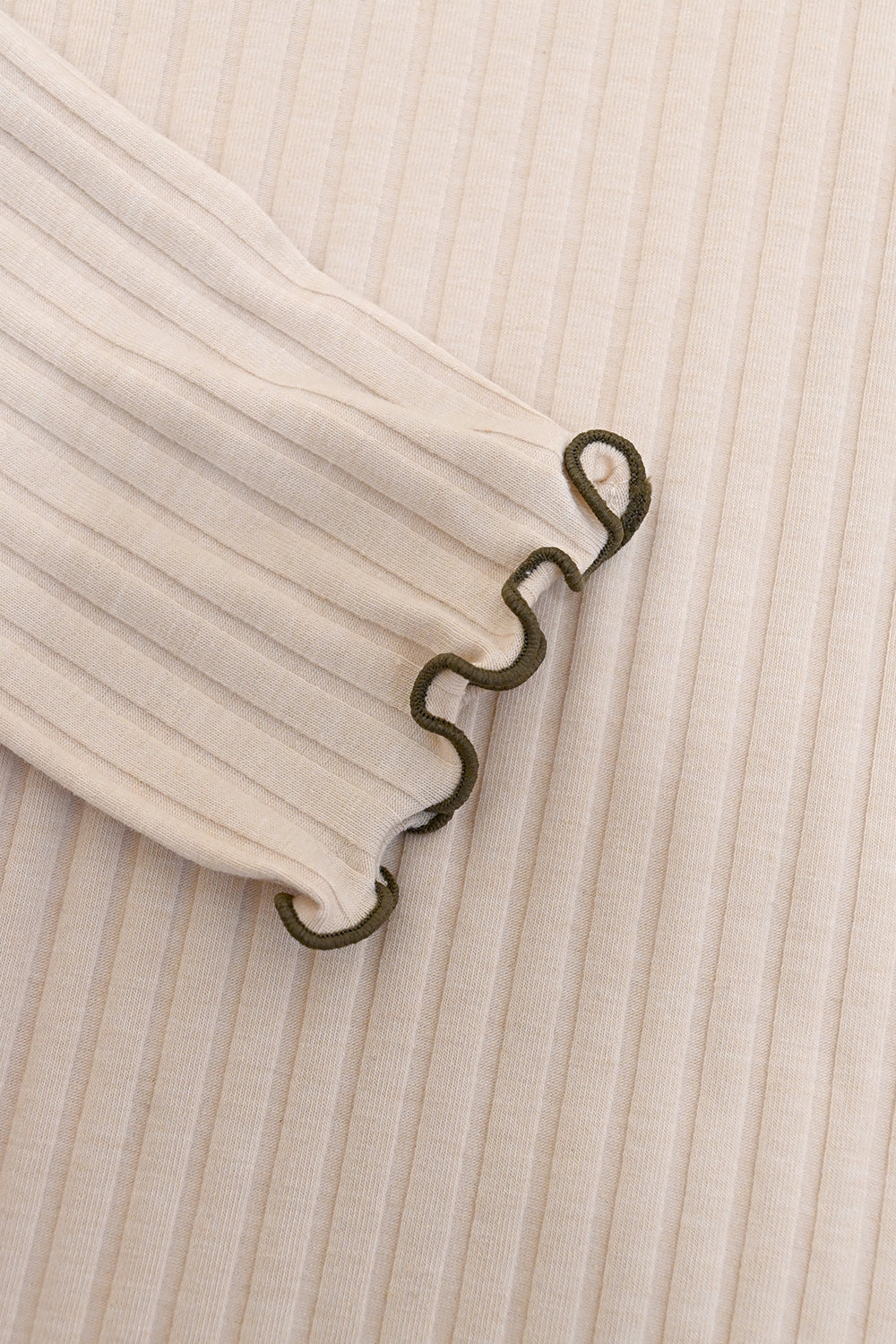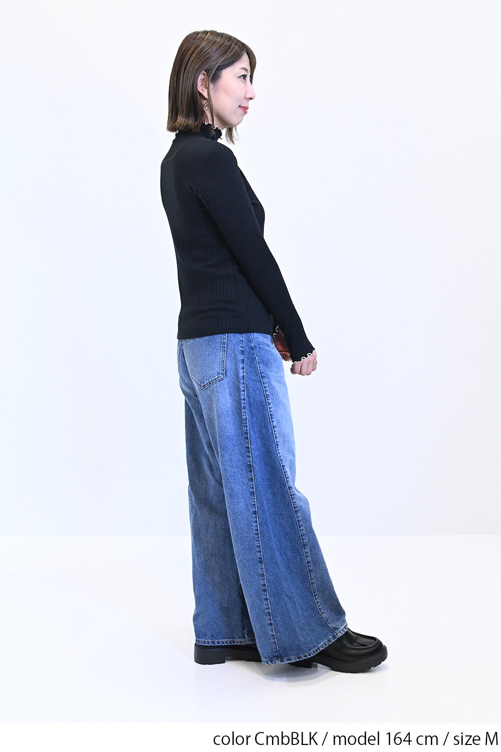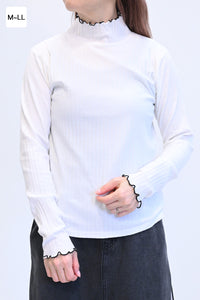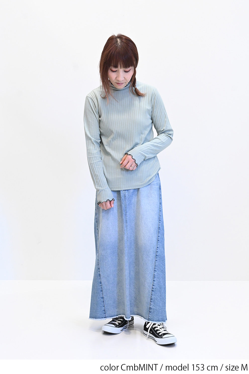 程よいフィット感のリブ素材が体のラインに優しくフィットし、着心地も抜群。