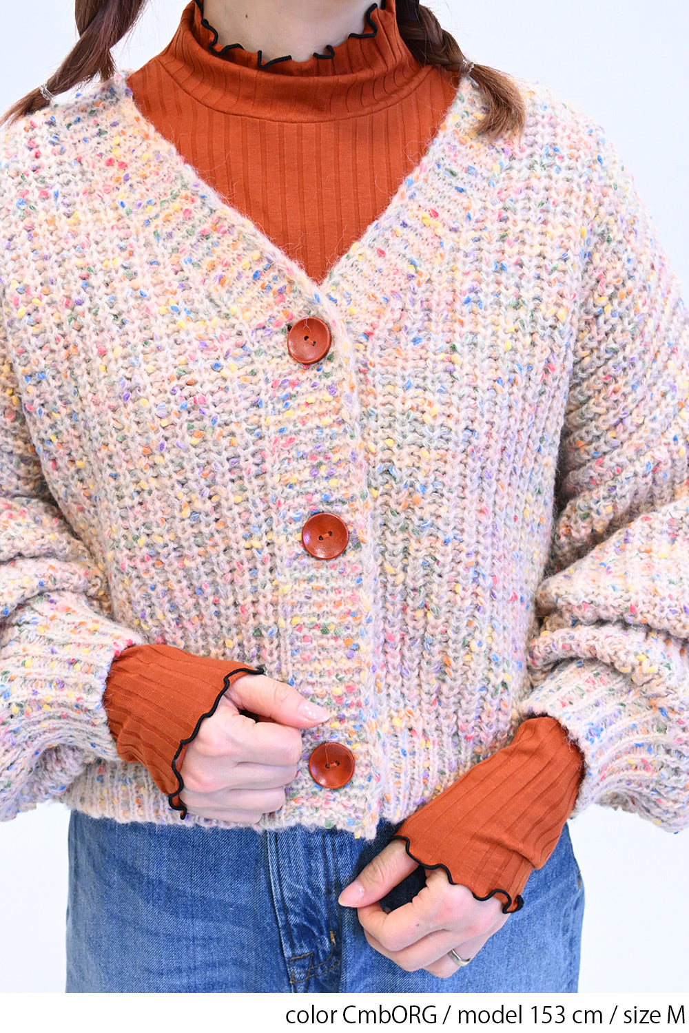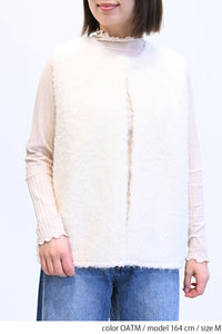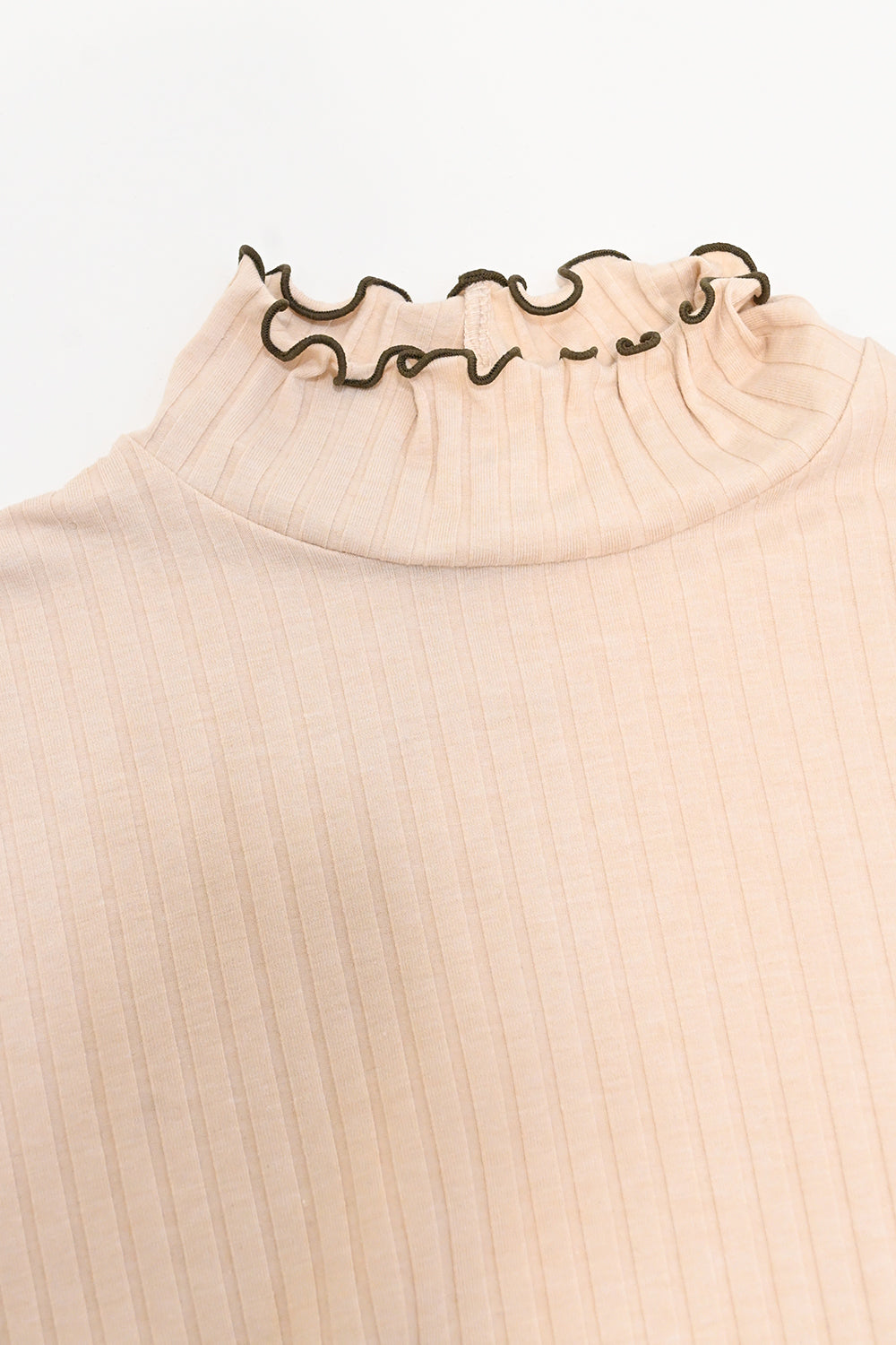 ニットやシャツとレイヤードして、フリルをコーデのポイントにする着方がおすすめです。