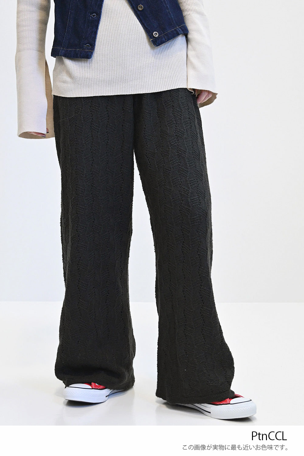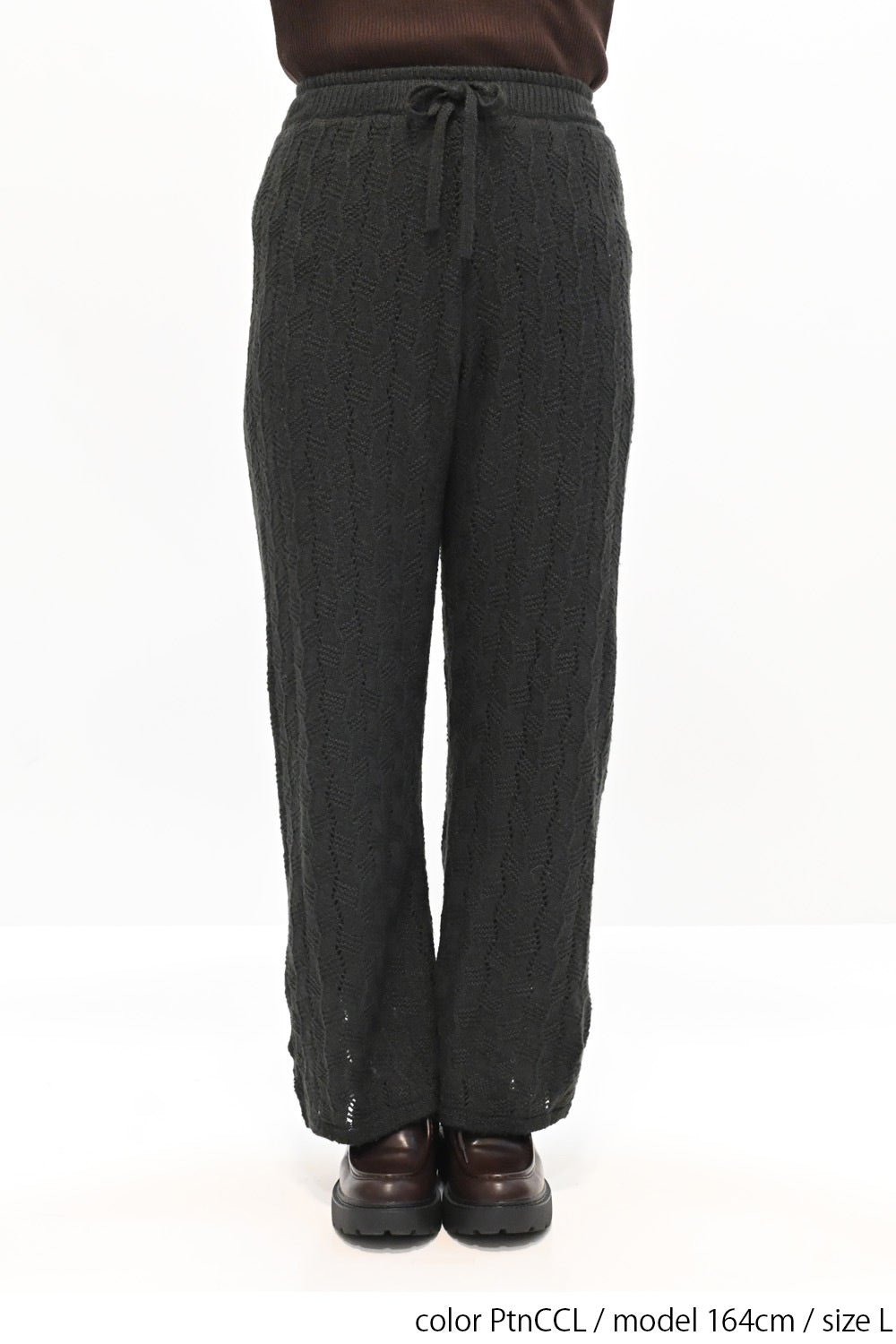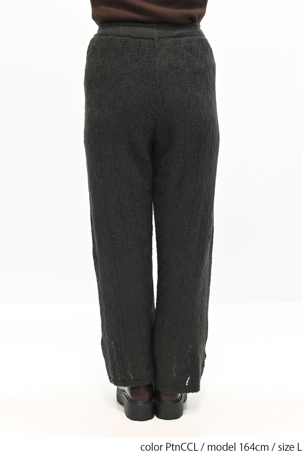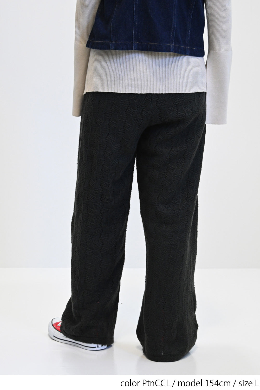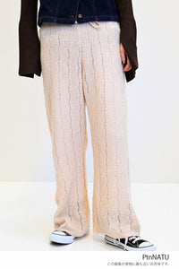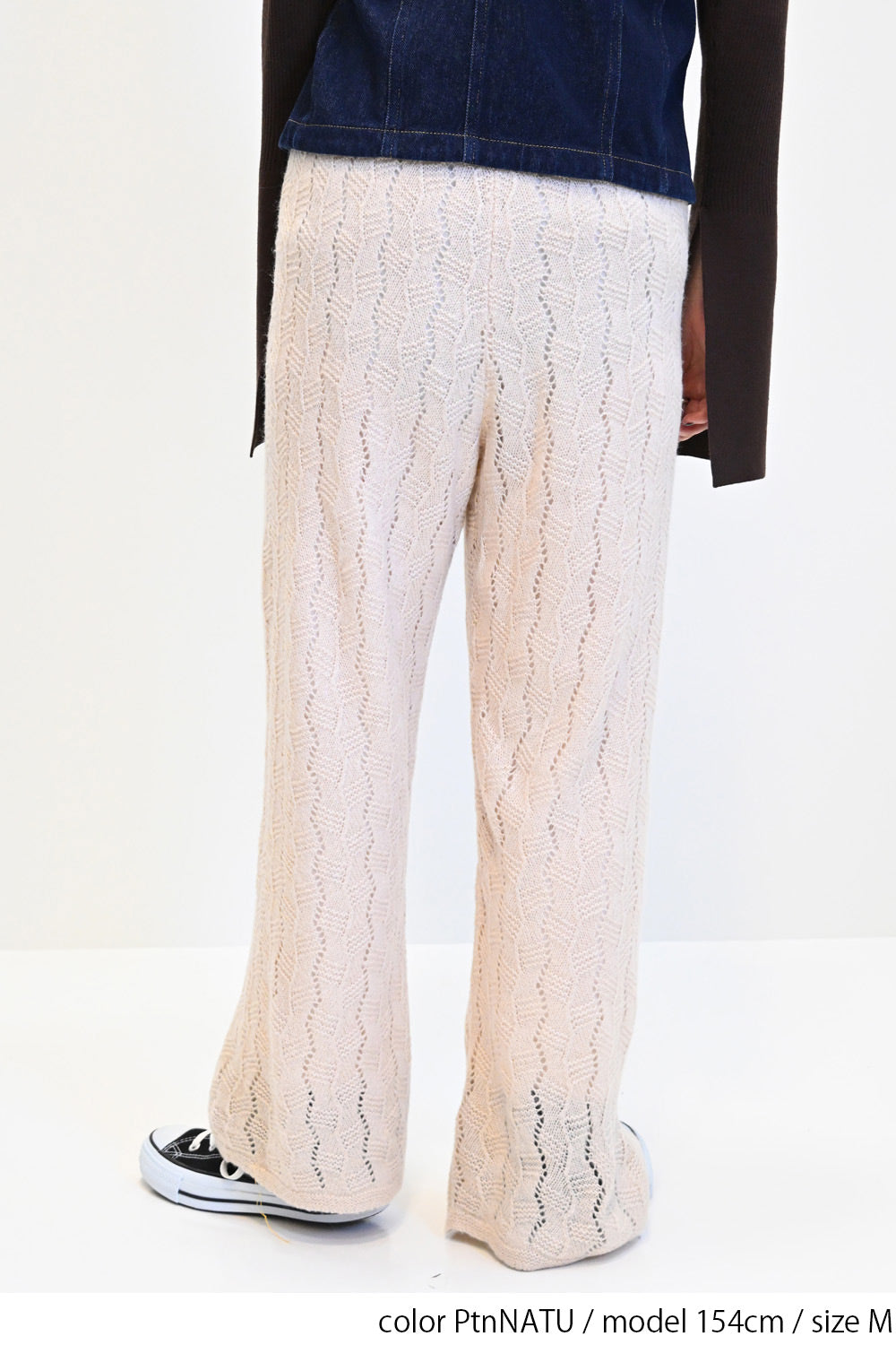 モヘアライクの柔らかなニット素材を使用したレース柄パンツ。