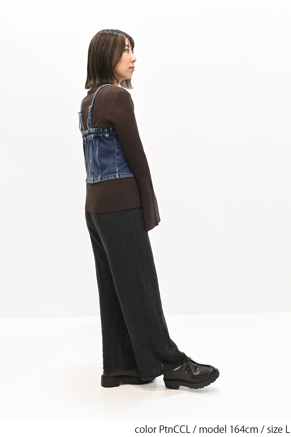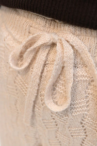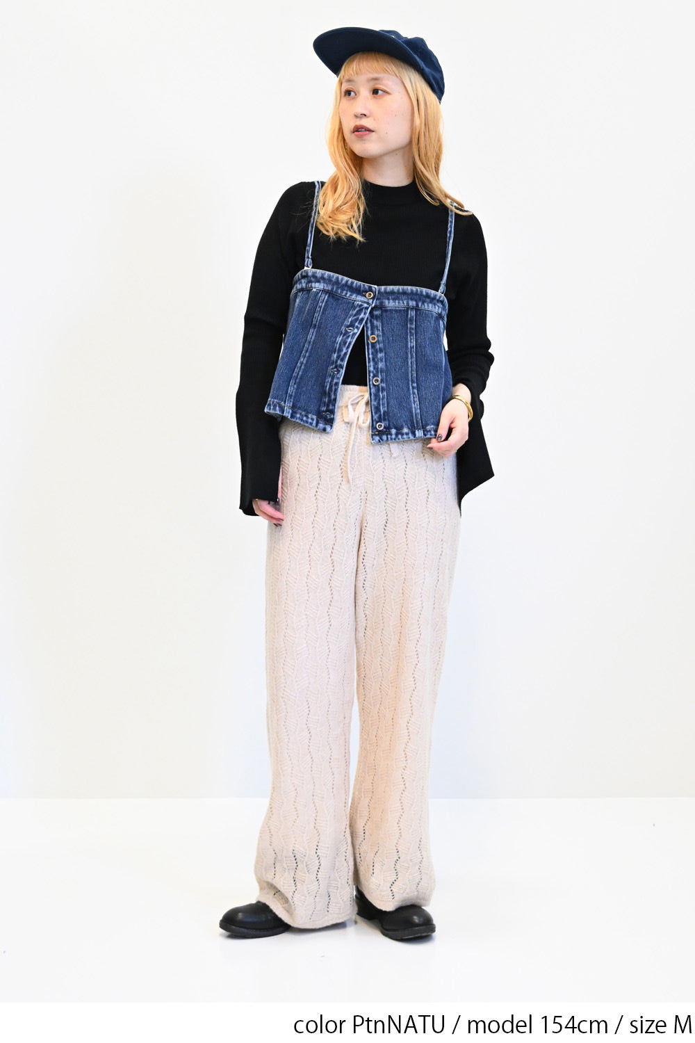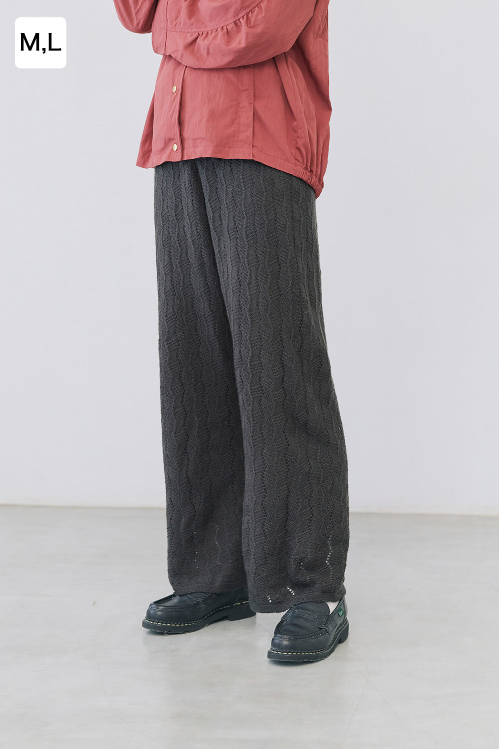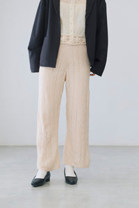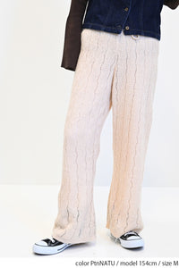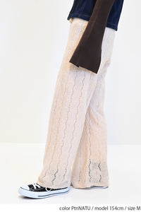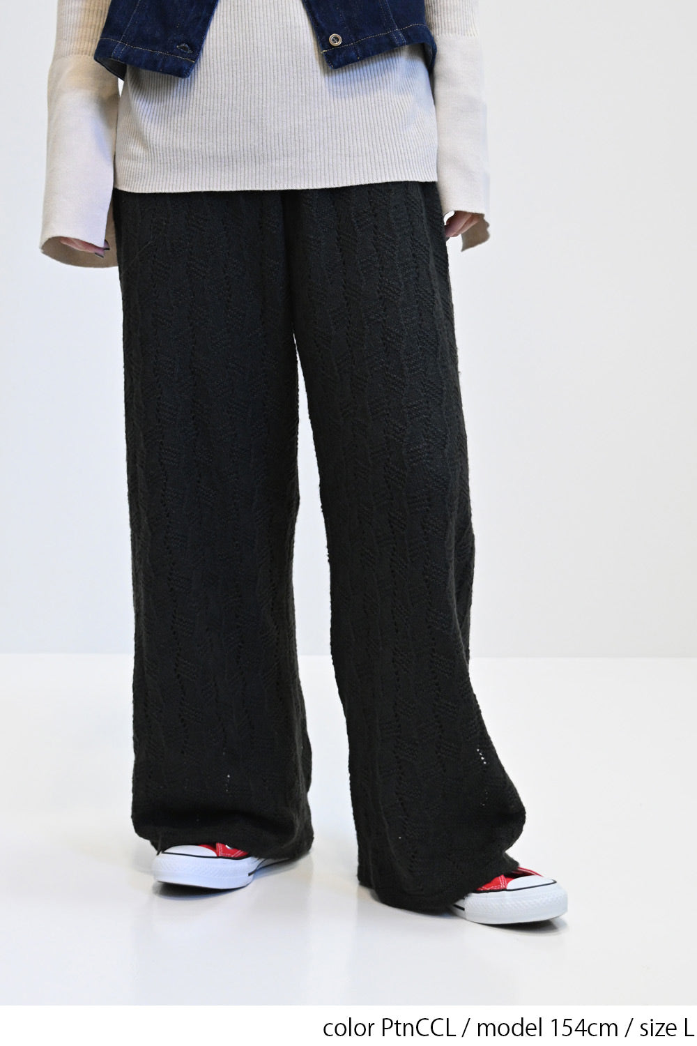 モヘアライクの柔らかなニット素材を使用したレース柄パンツ。