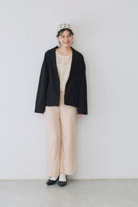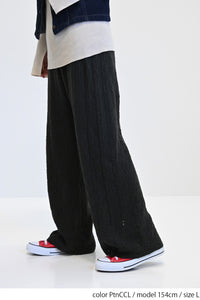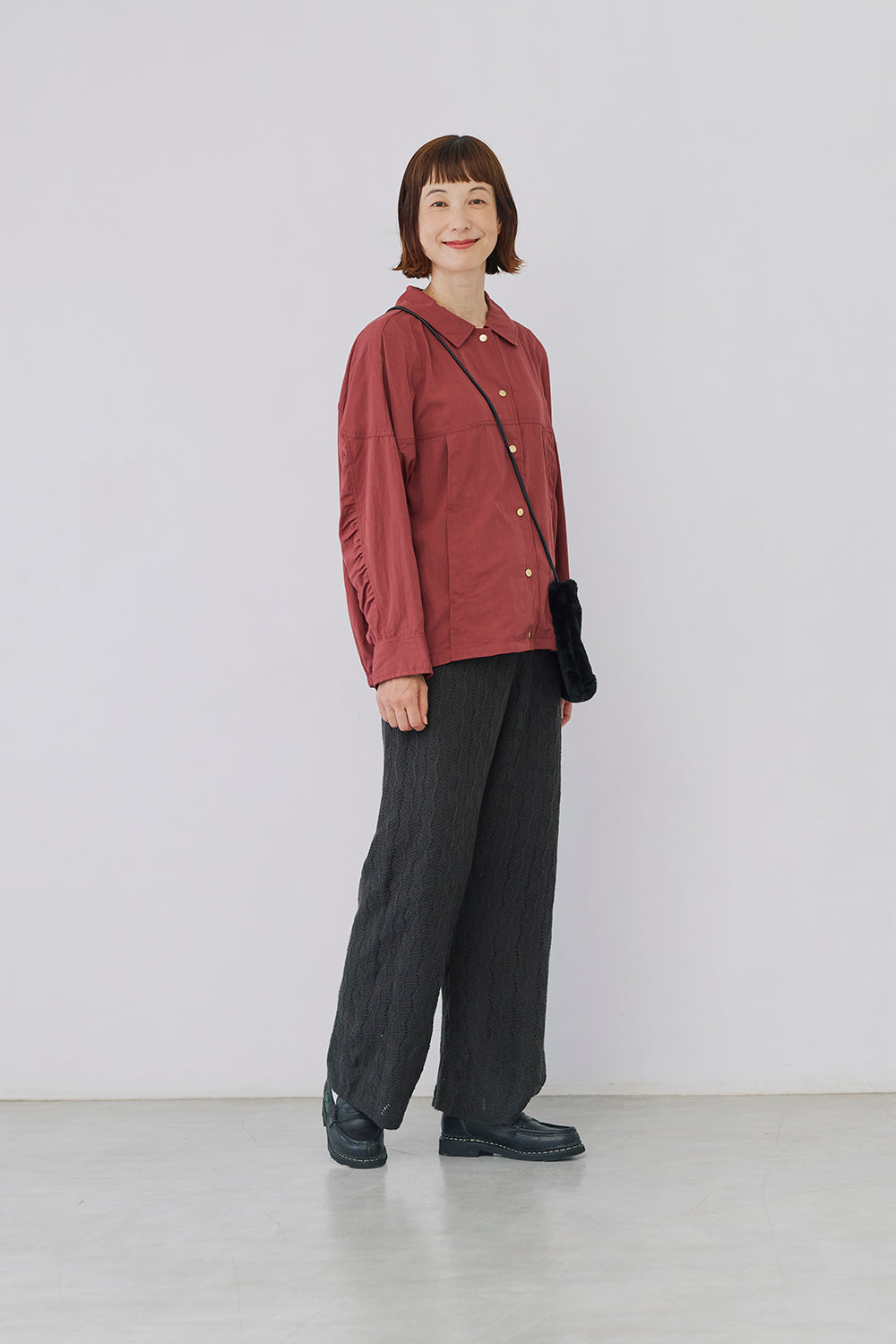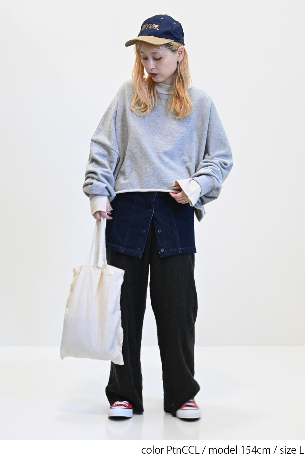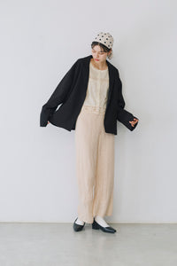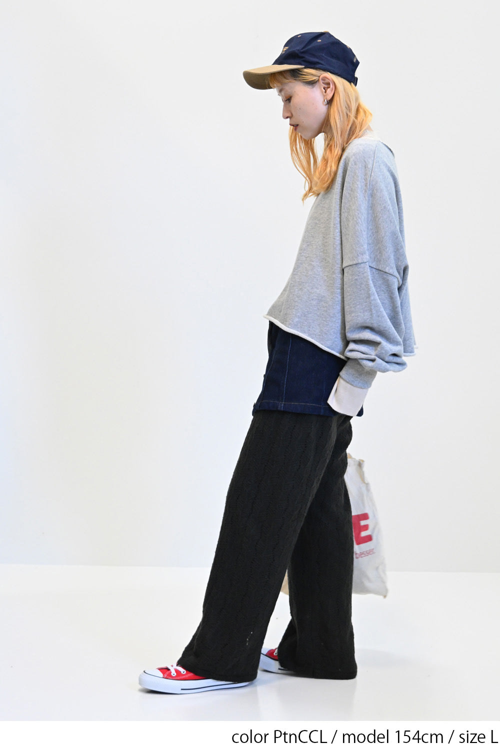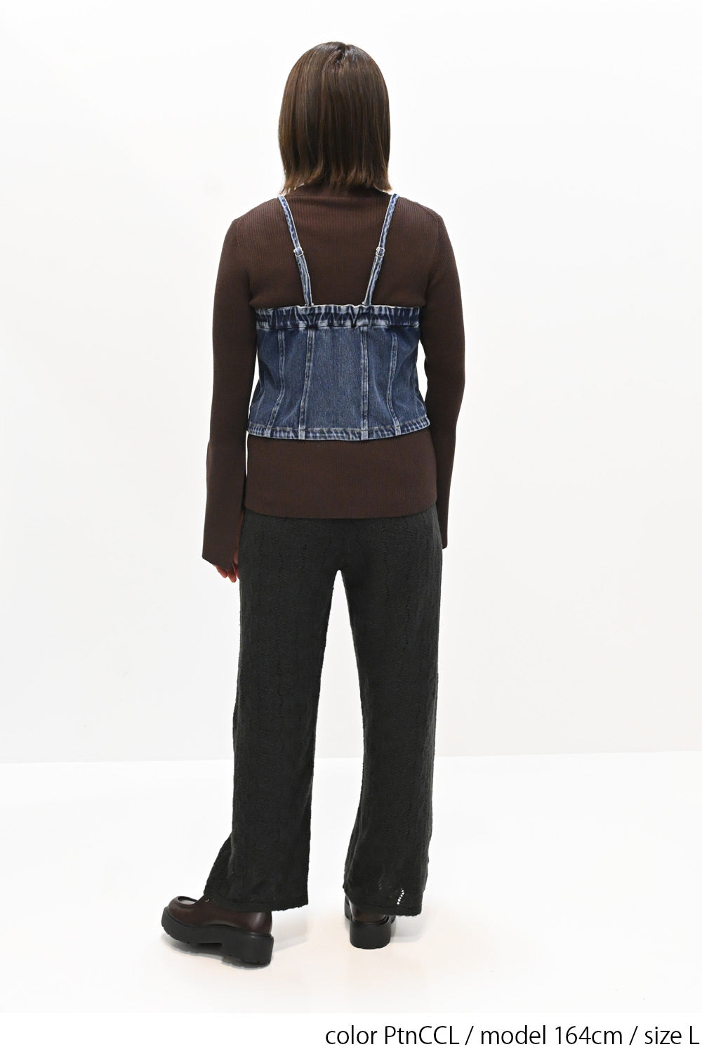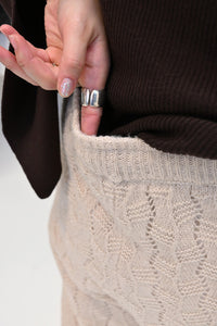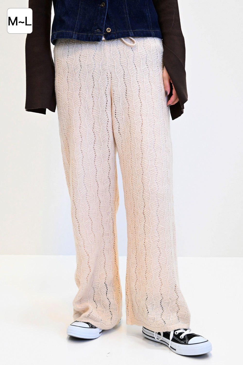 モヘアライクの柔らかなニット素材を使用したレース柄パンツ。