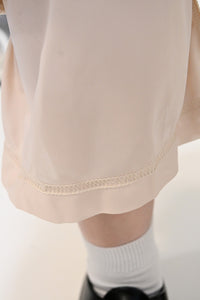 さりげないレース柄が大人のカジュアルスタイルにアクセントを添え、シンプルなトップスとのコーディネートも映える一枚に。