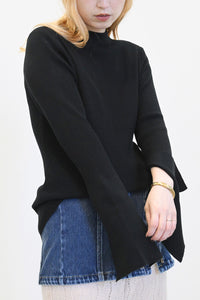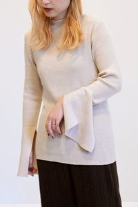 フレアな袖に大胆なスリットを入れた、他にはないデザインが目を惹く一枚。