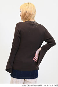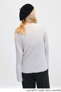 細かいリブ編みがほどよくフィットし、着るだけで華奢見えする女性らしいシルエットに仕上げています。
