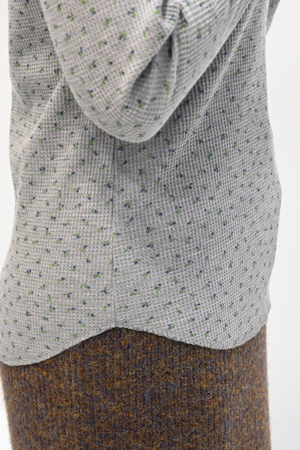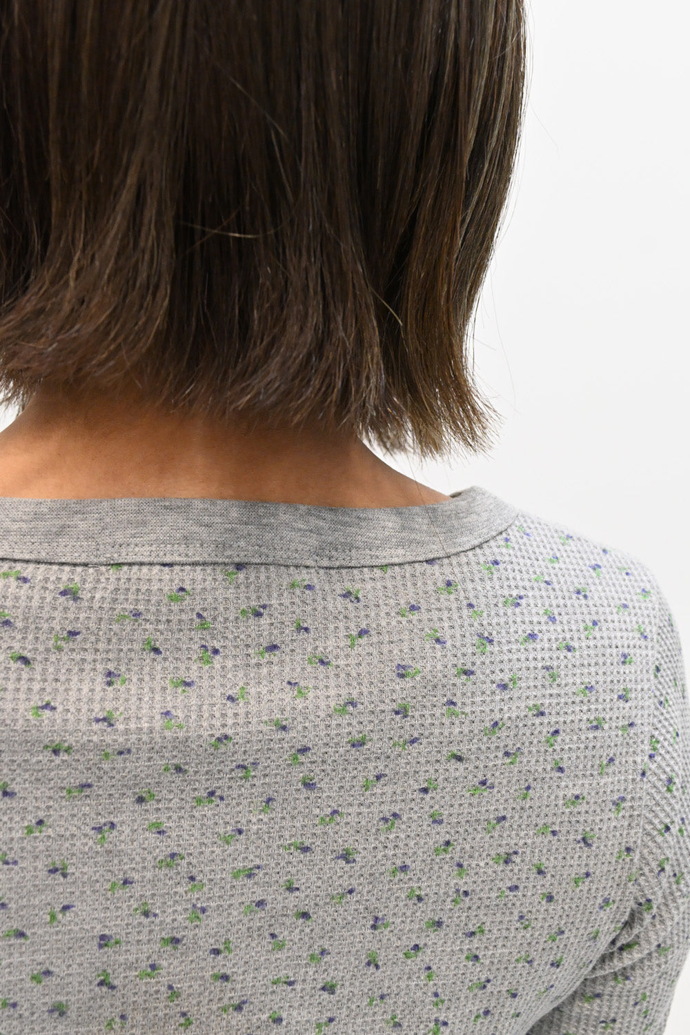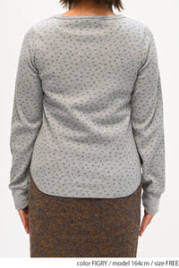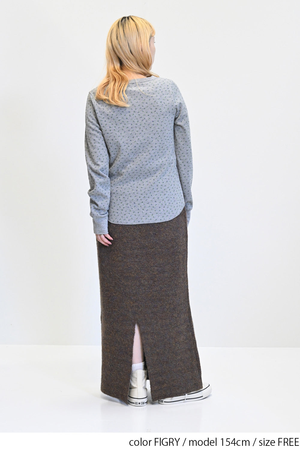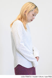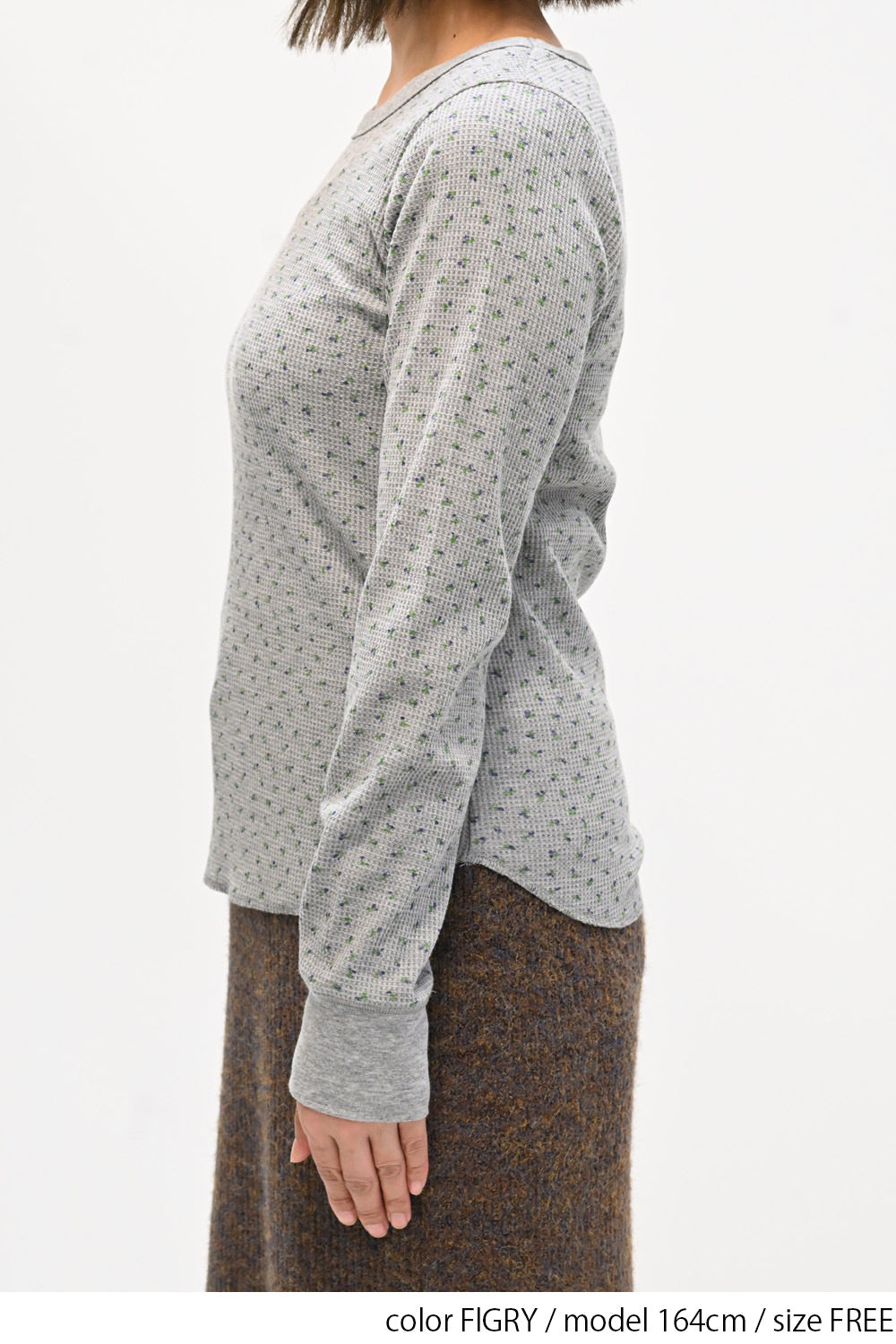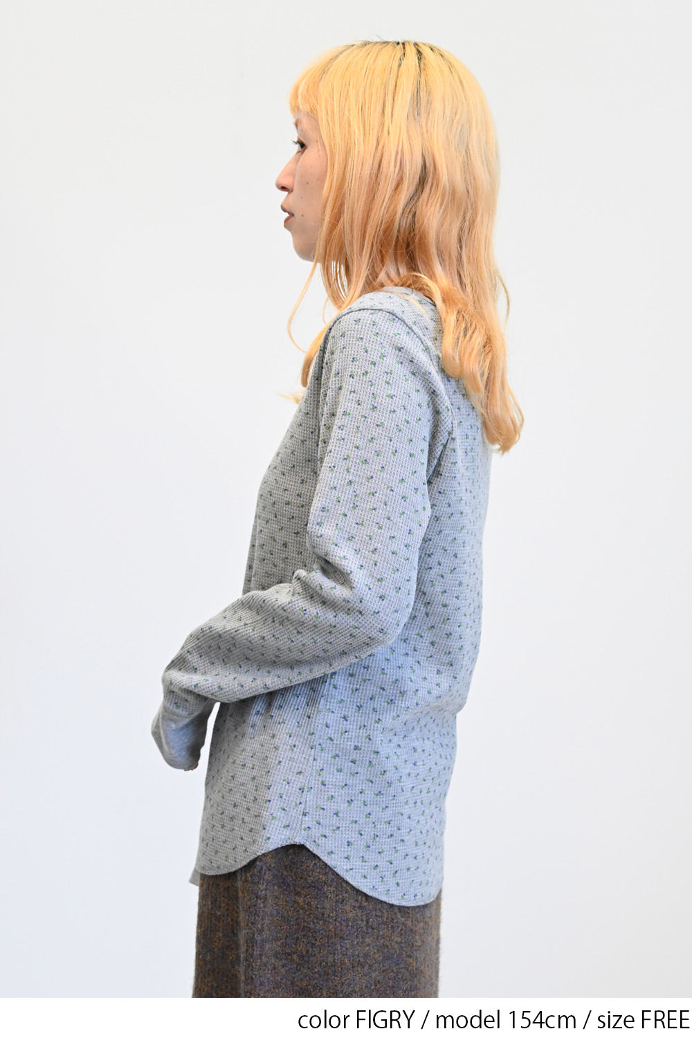 小さな花柄がさりげなく可愛らしさをプラスし、一枚で着てもインナーとして重ねても映えるデザイン。
