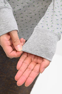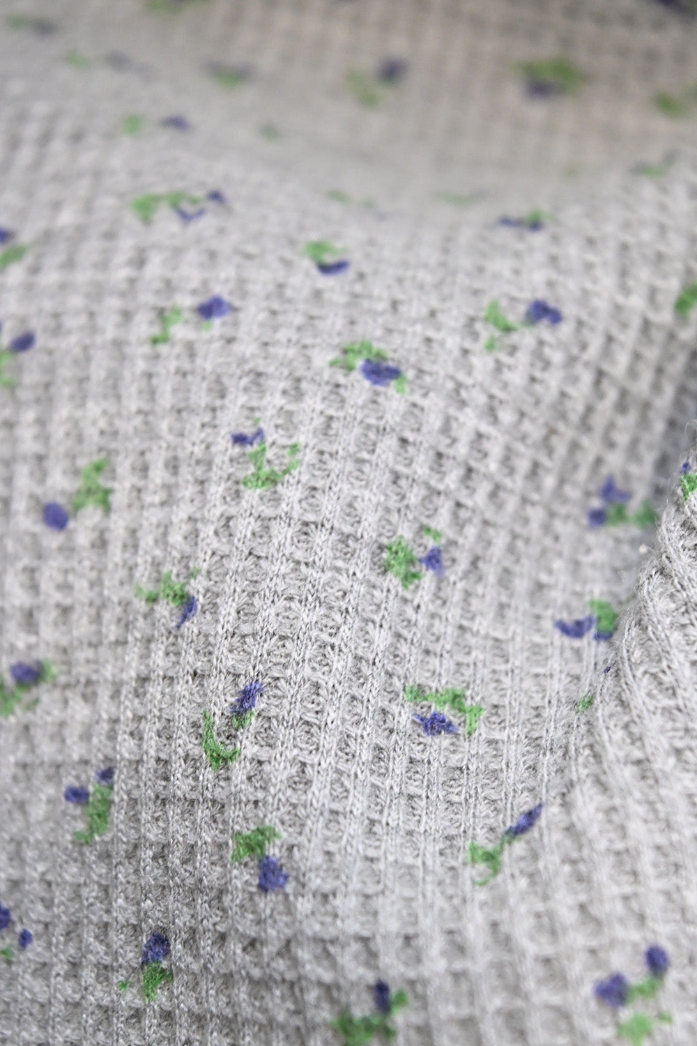 柔らかく軽やかな綿と、シワになりにくく型崩れしにくいポリエステルをブレンドしたサーマル素材。