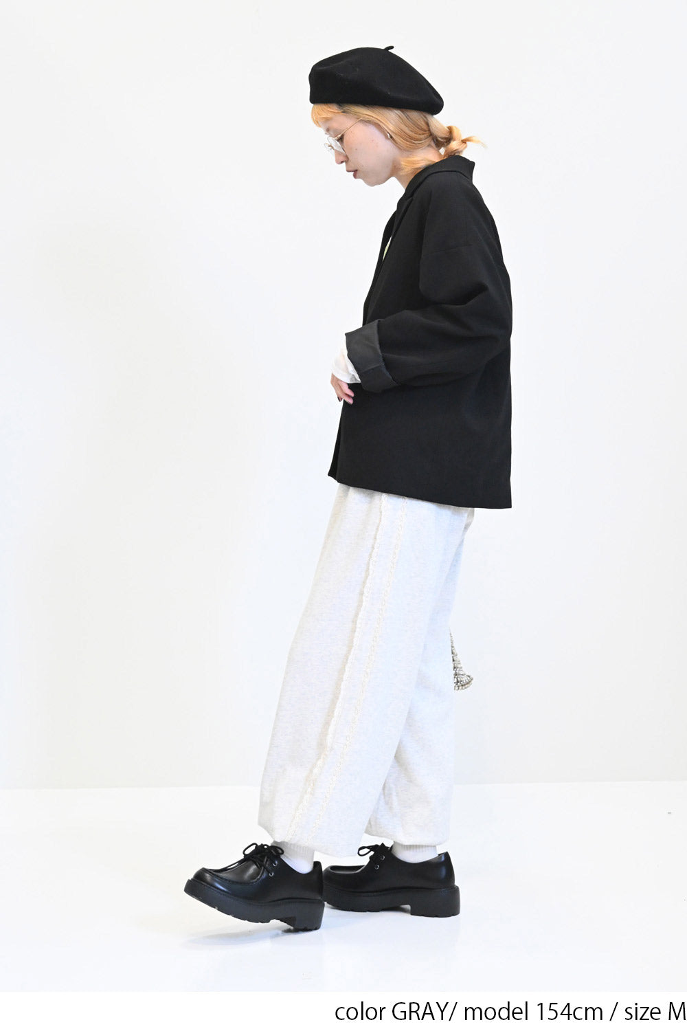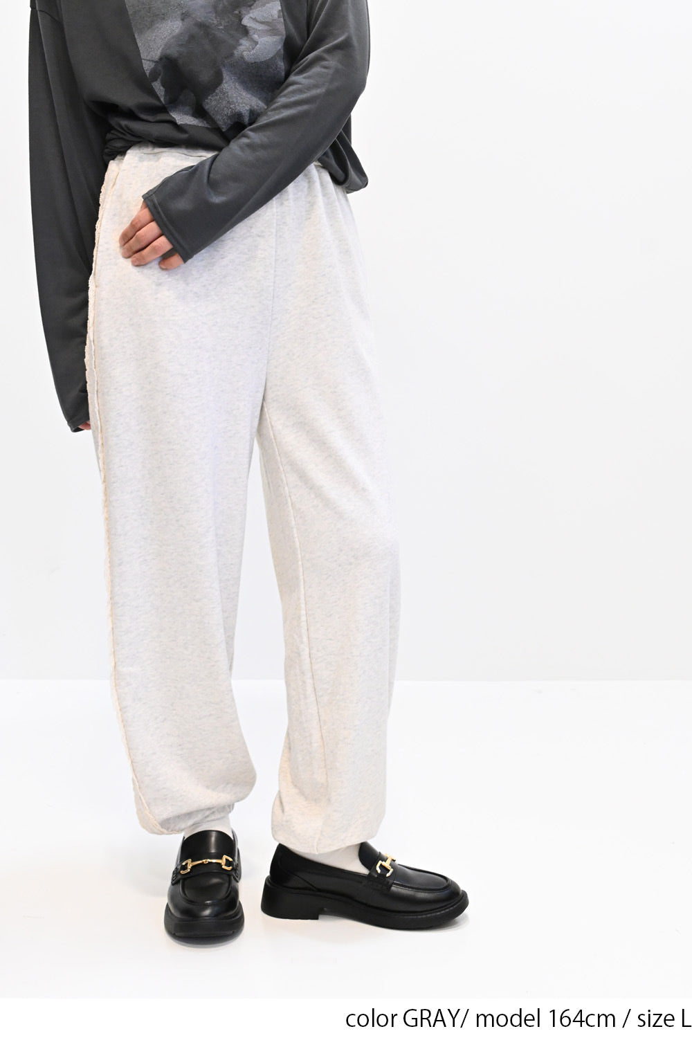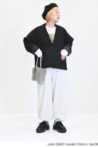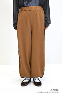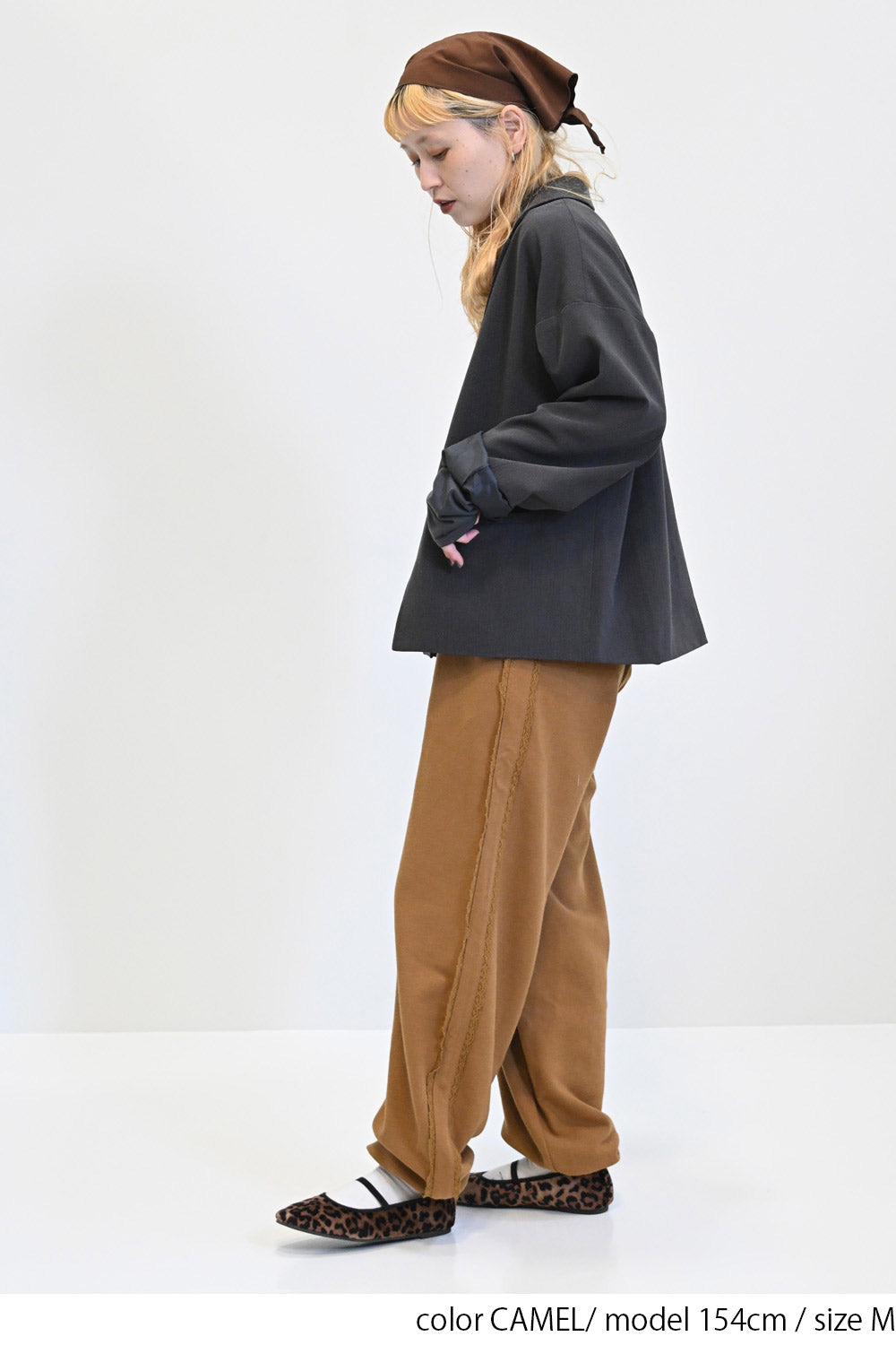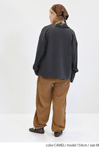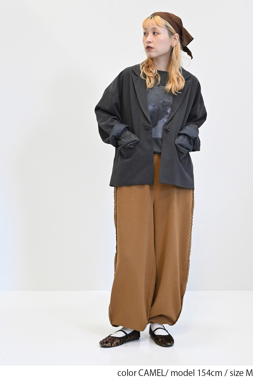 シルエットはゆったりとしつつ、裾にぐるりとゴムを入れ、きゅっと絞られたメリハリのあるデザインに。