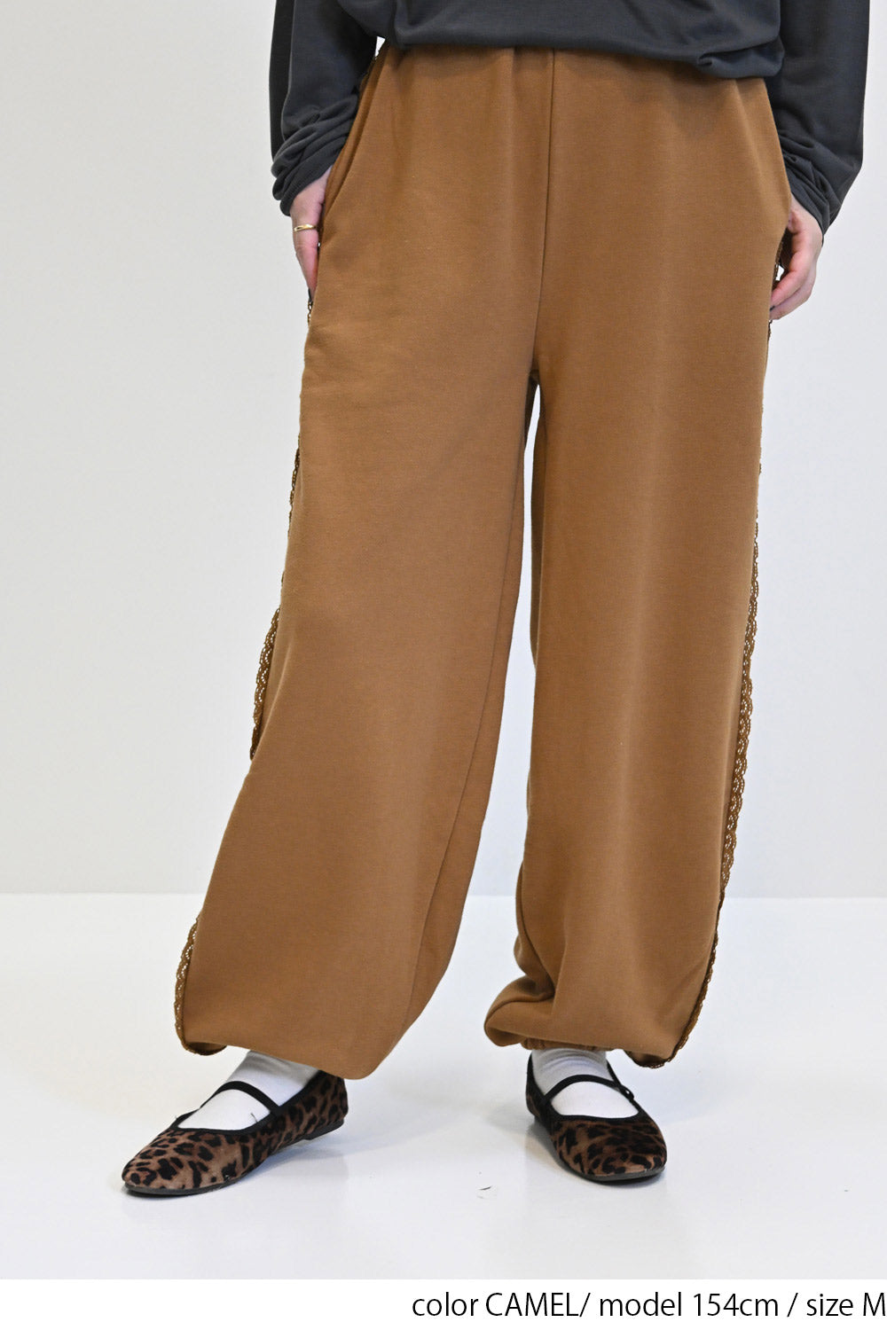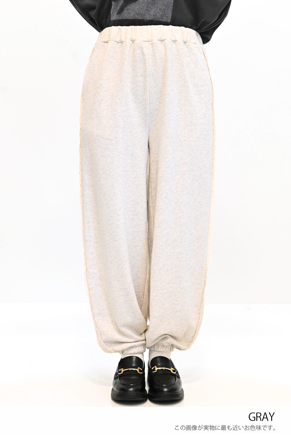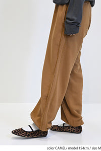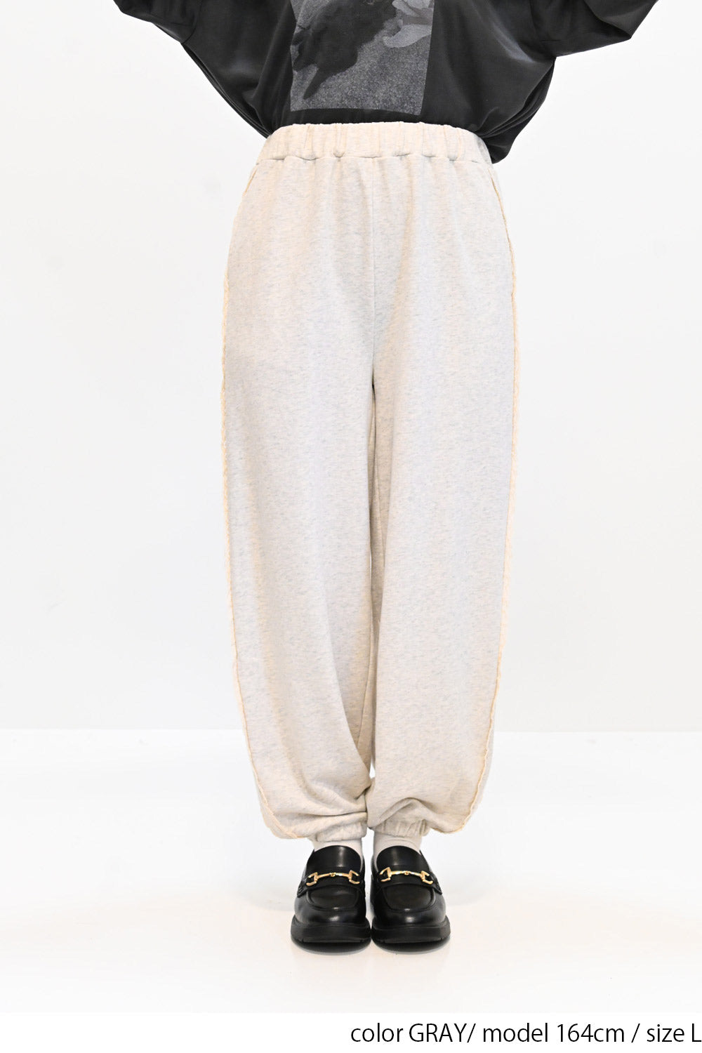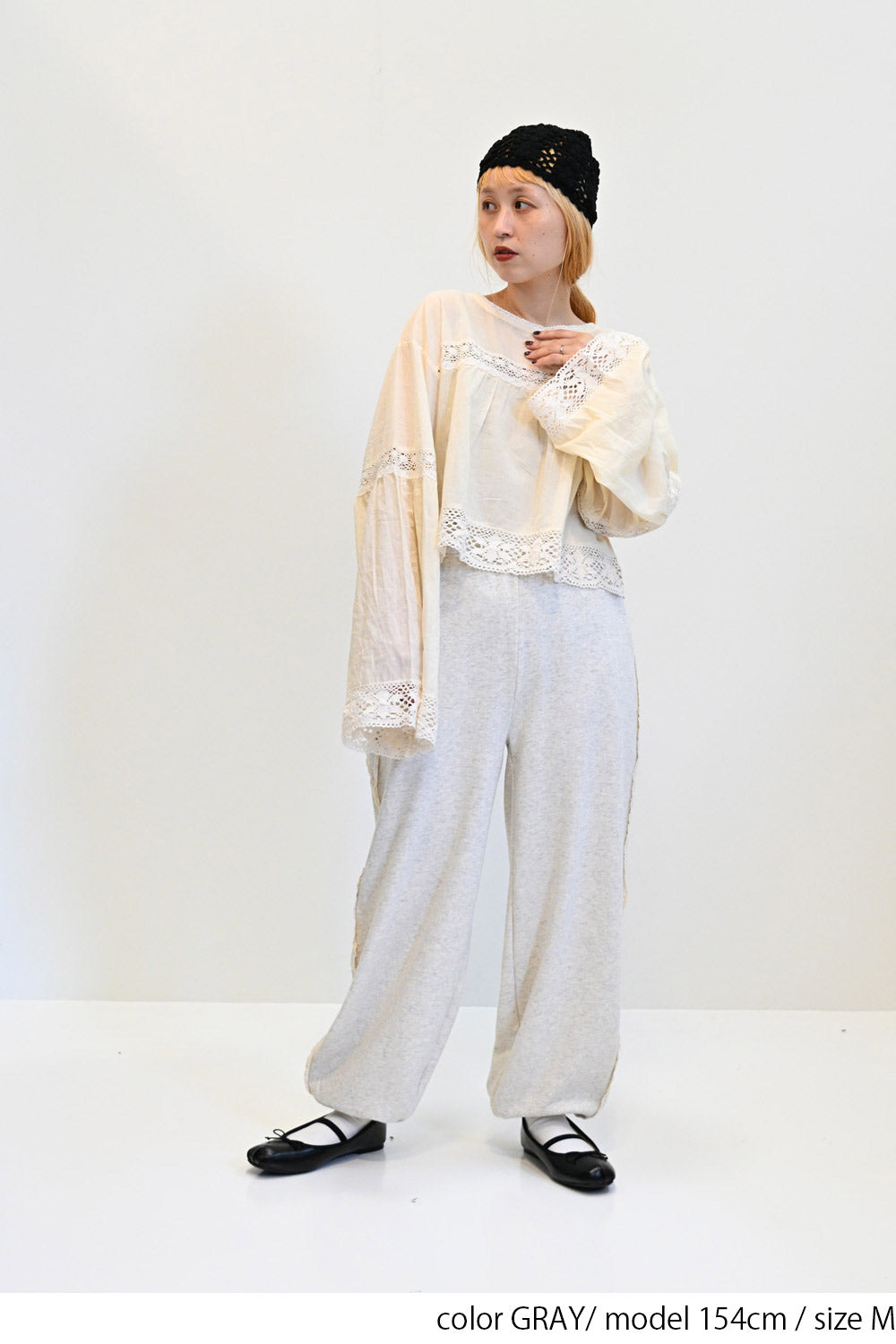 シルエットはゆったりとしつつ、裾にぐるりとゴムを入れ、きゅっと絞られたメリハリのあるデザインに。