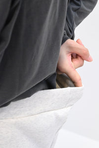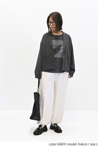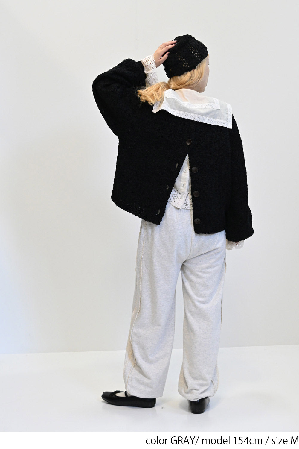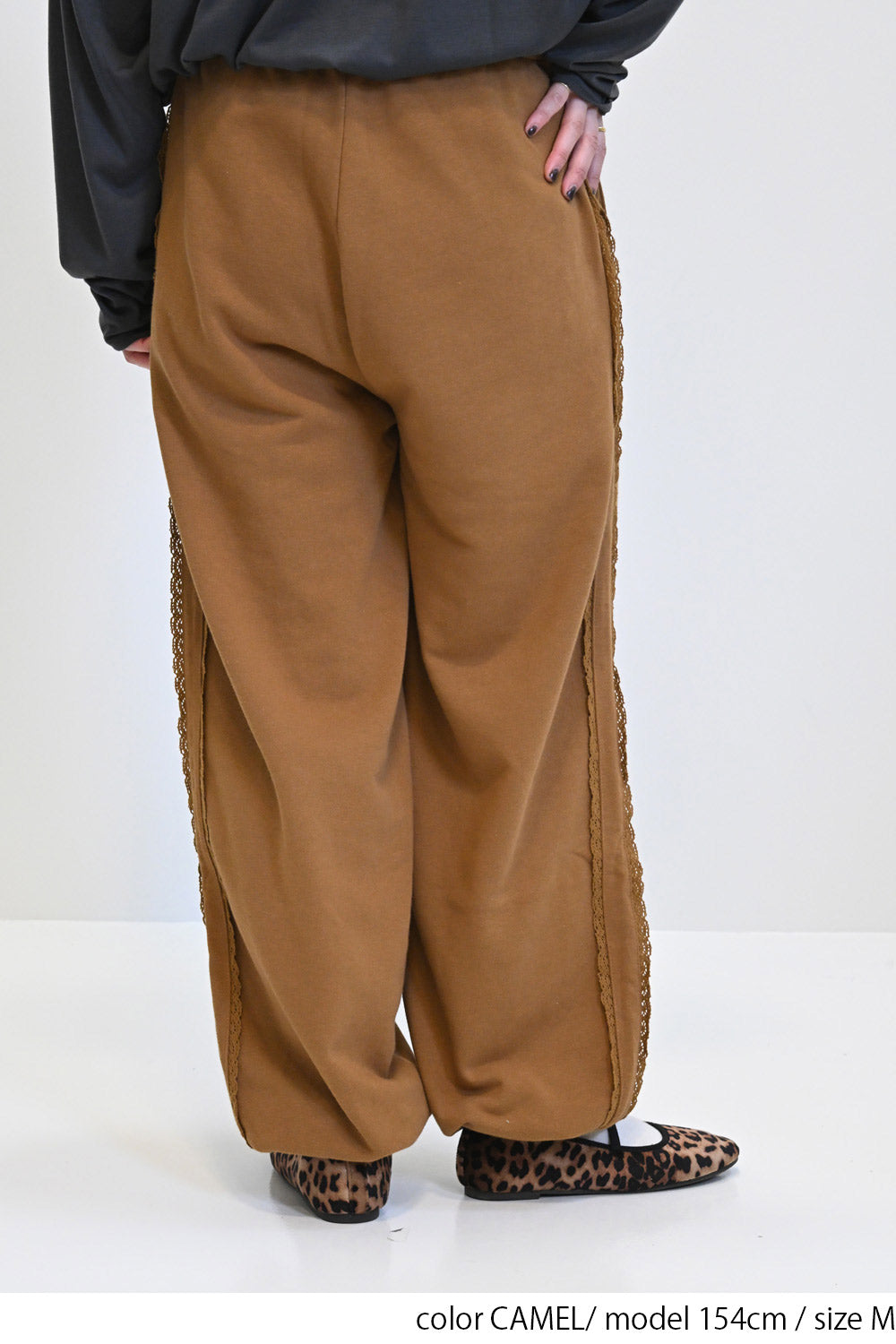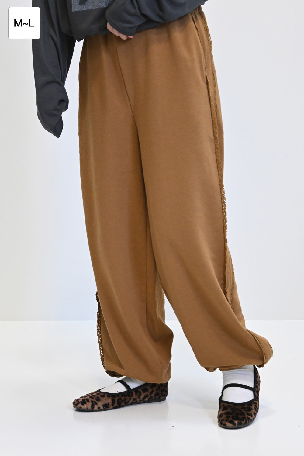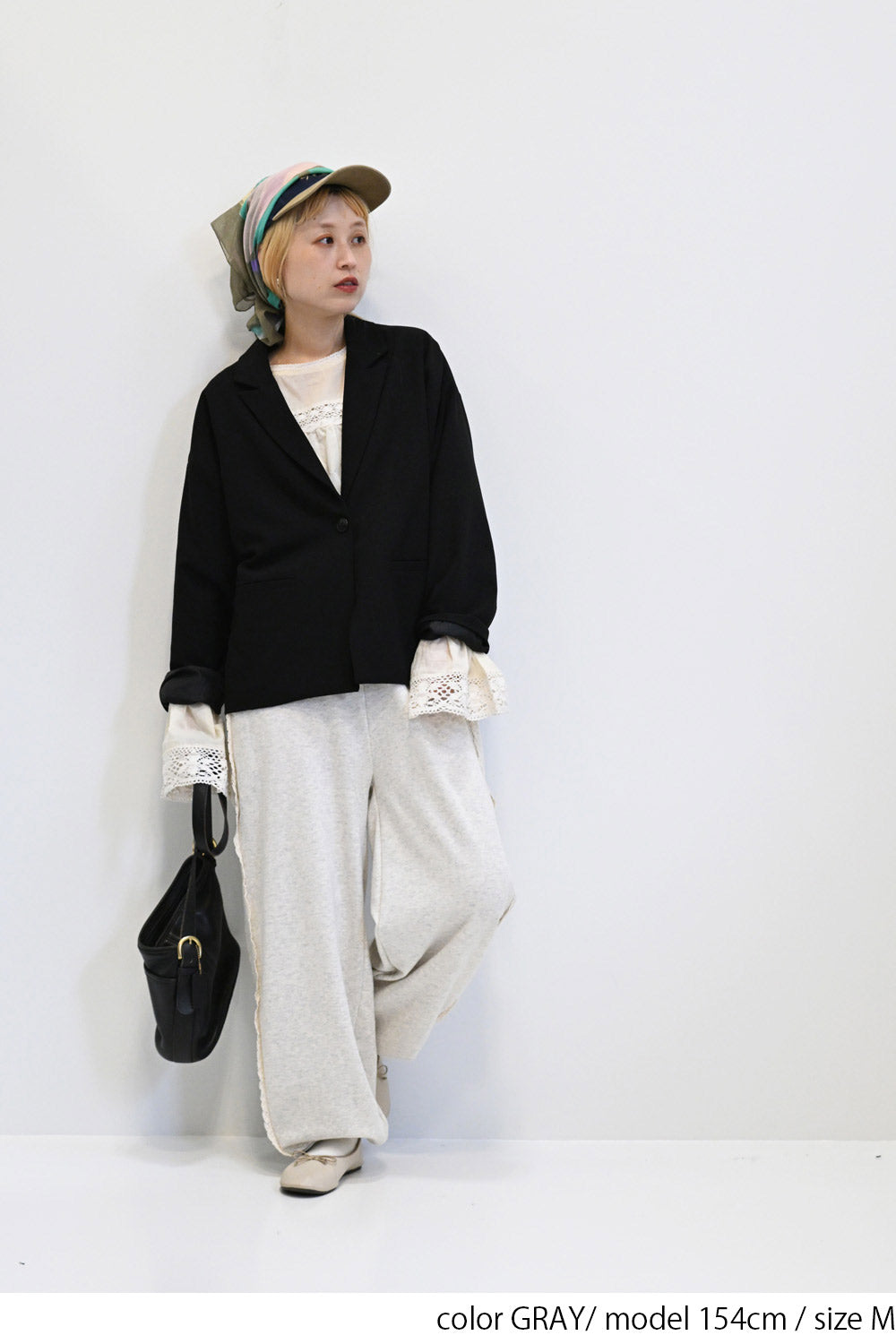 シルエットはゆったりとしつつ、裾にぐるりとゴムを入れ、きゅっと絞られたメリハリのあるデザインに。