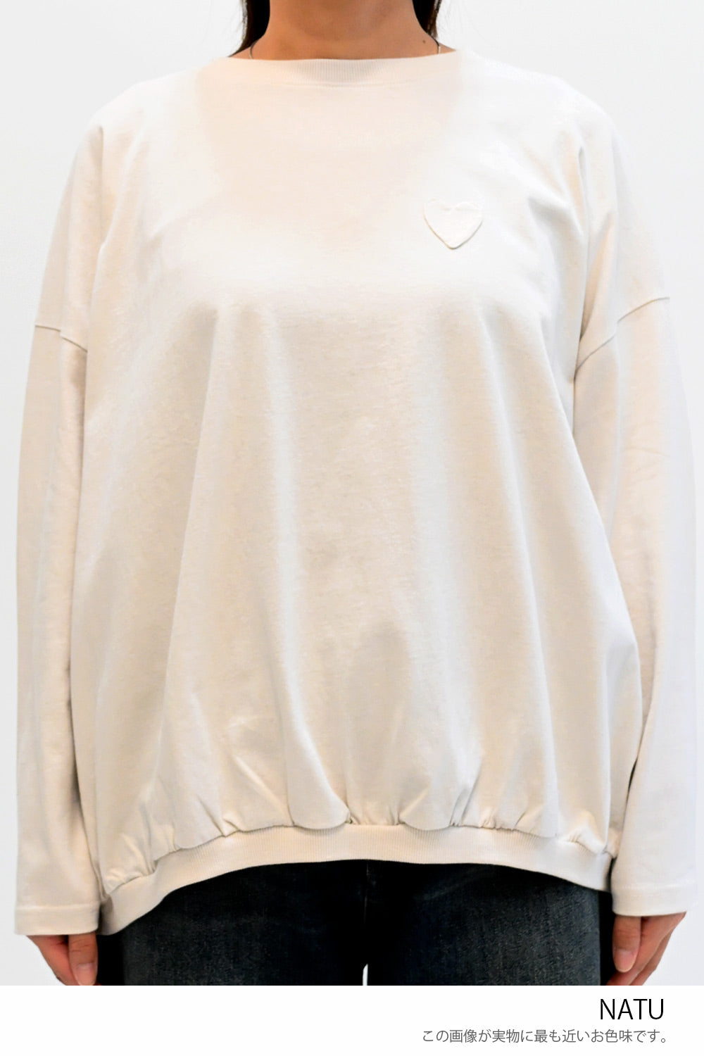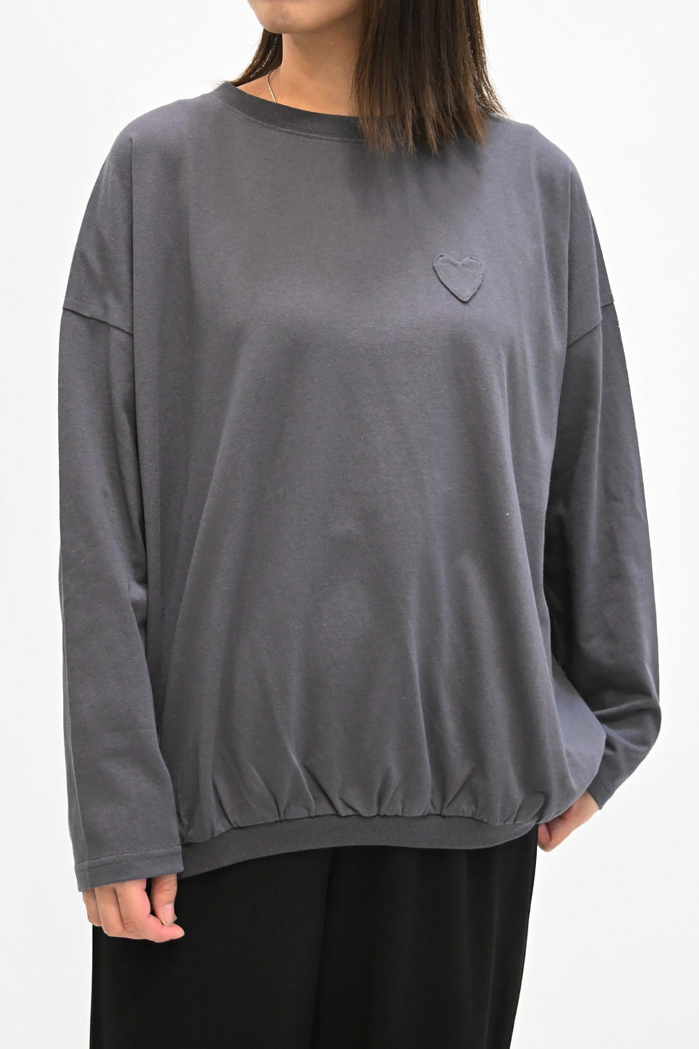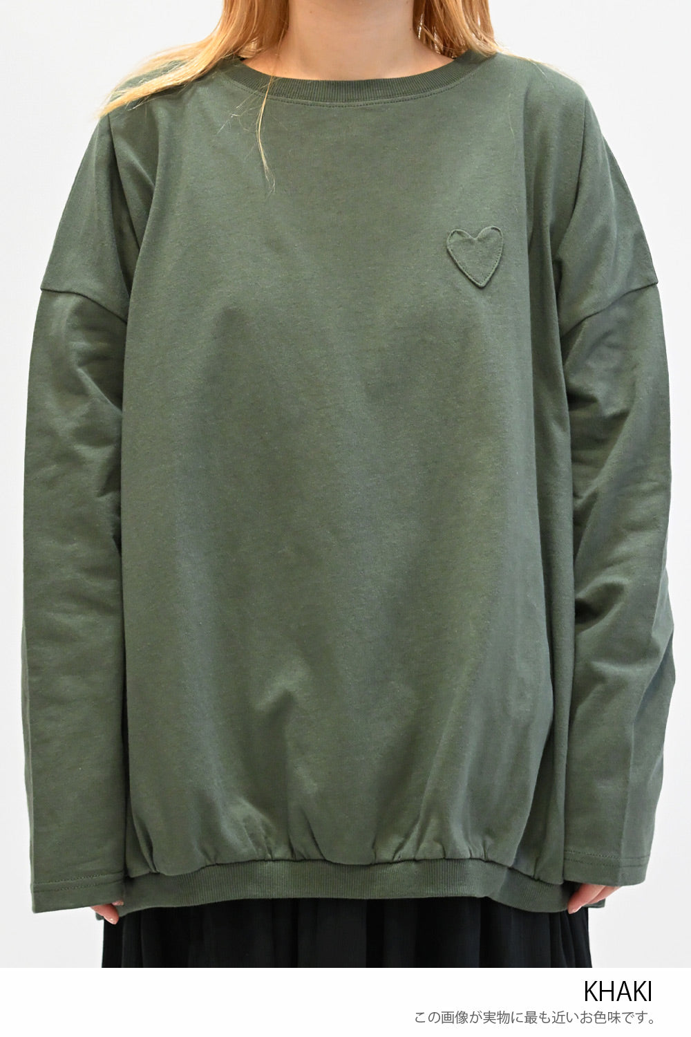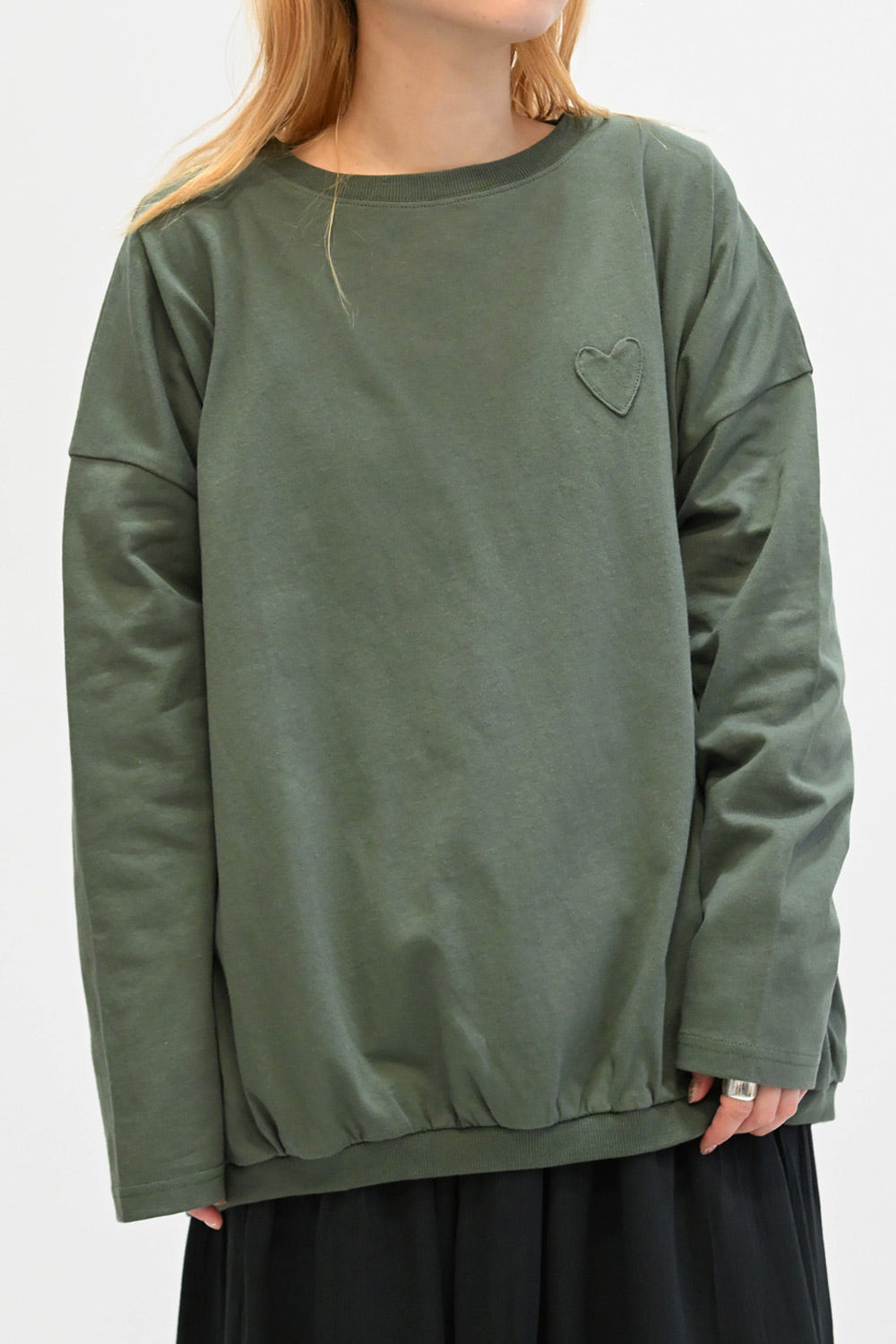 ふんわりやさしいシルエットが魅力の、ハートポケット裾ギャザープルオーバー。