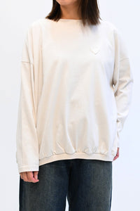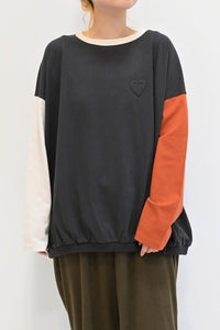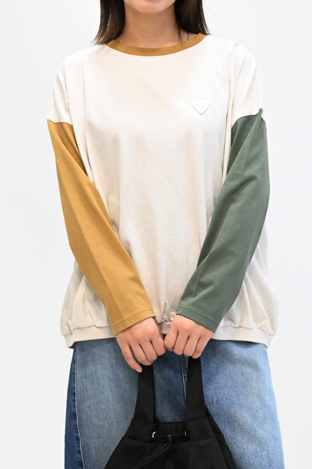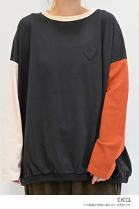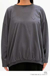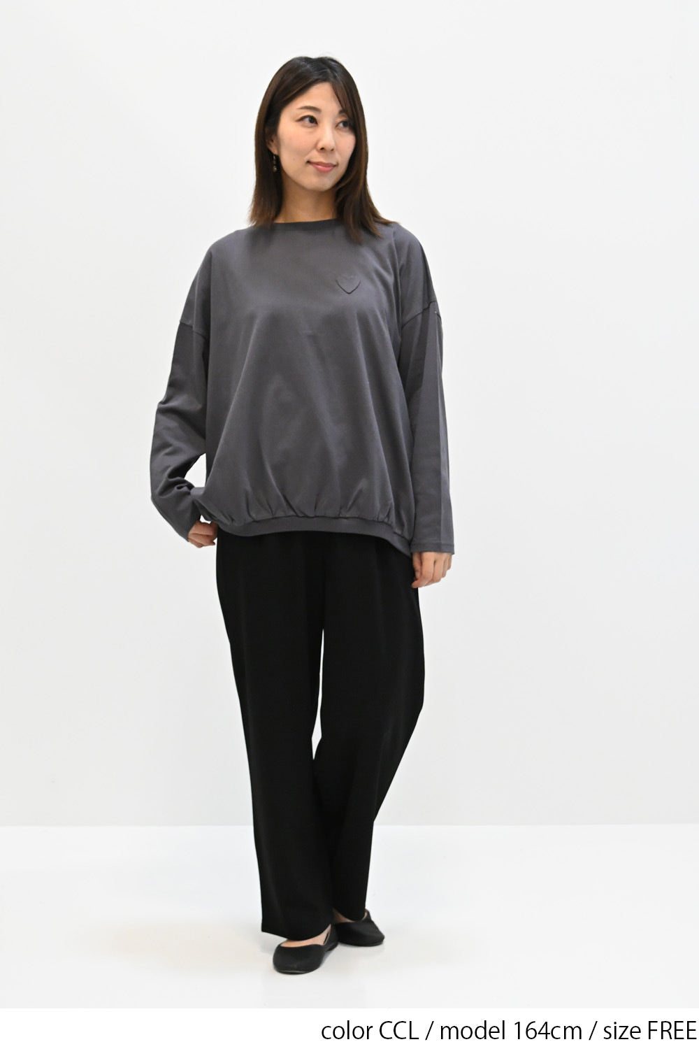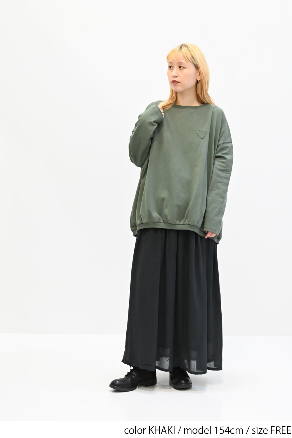 ふんわりやさしいシルエットが魅力の、ハートポケット裾ギャザープルオーバー。