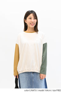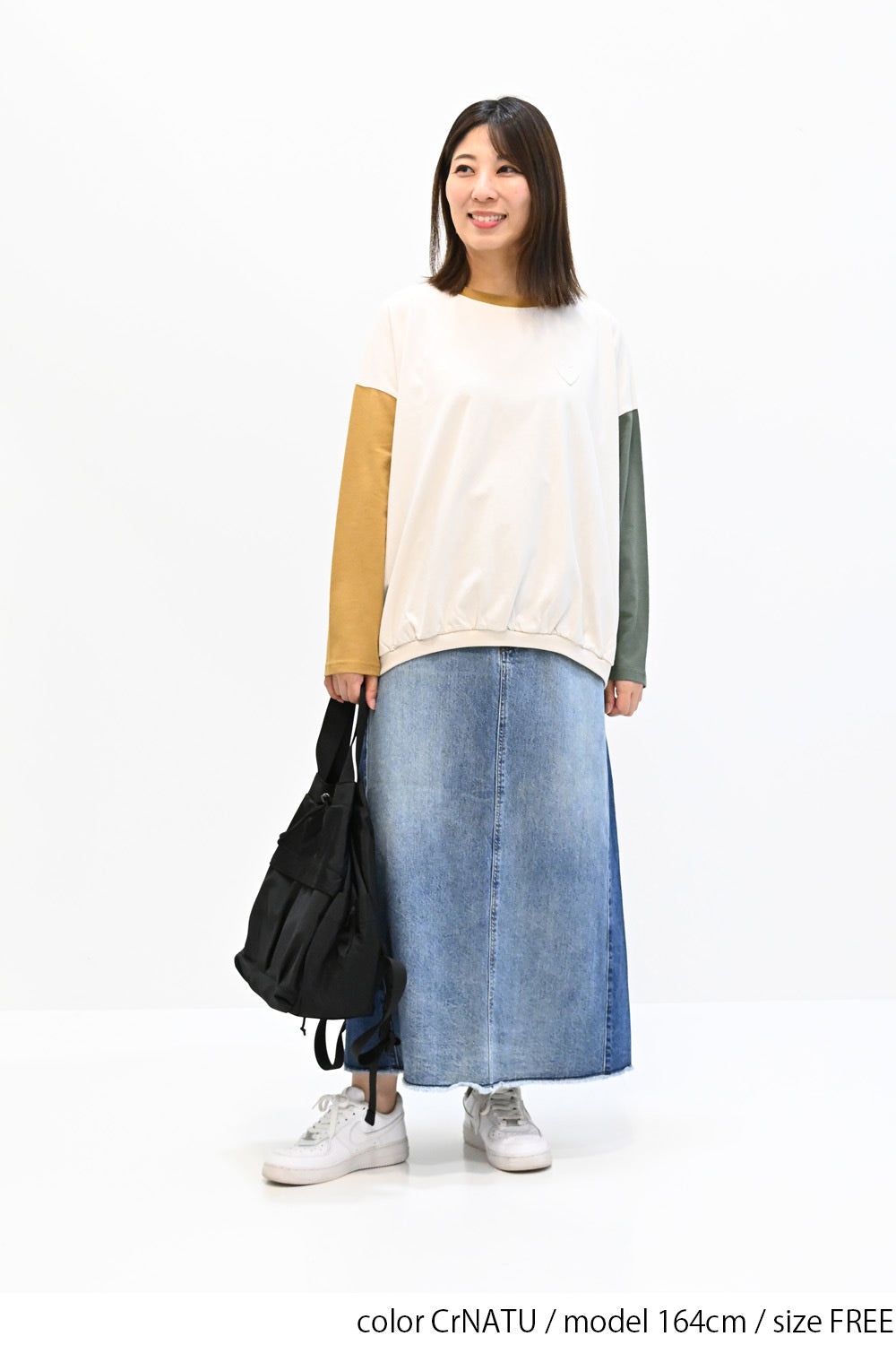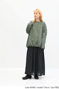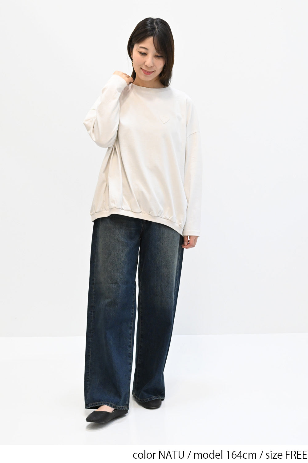 ややゆったりとした身幅に、裾のギャザーがふんわりと自然な丸みをプラスし、リラクシーな着心地と女性らしさを両立。