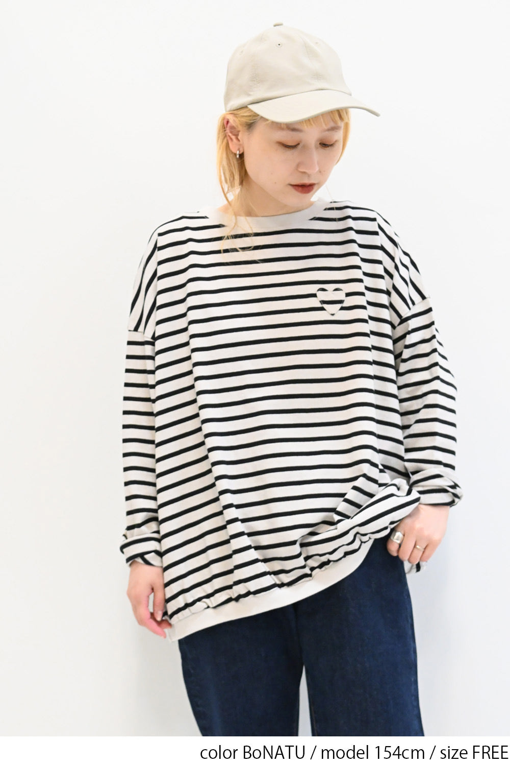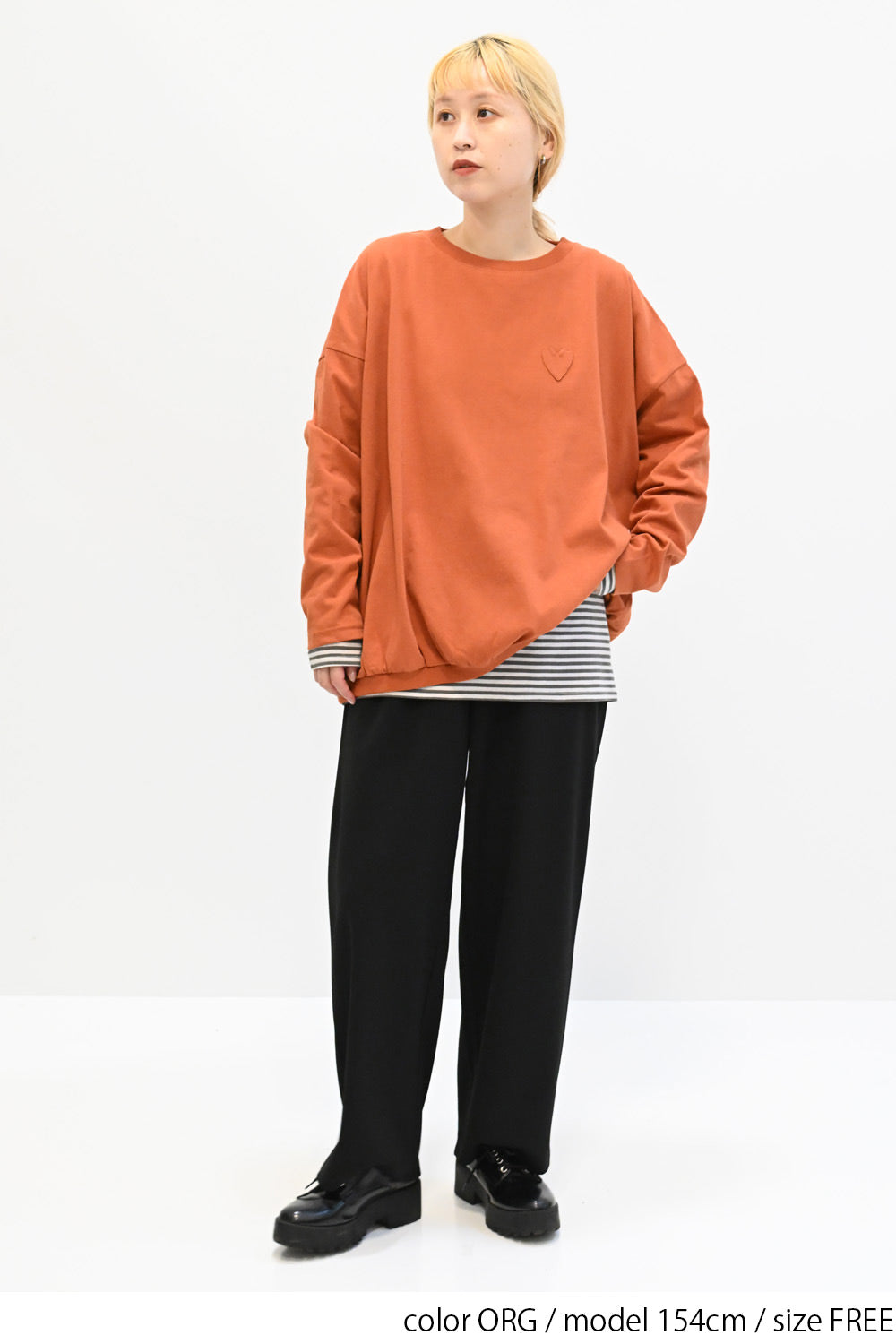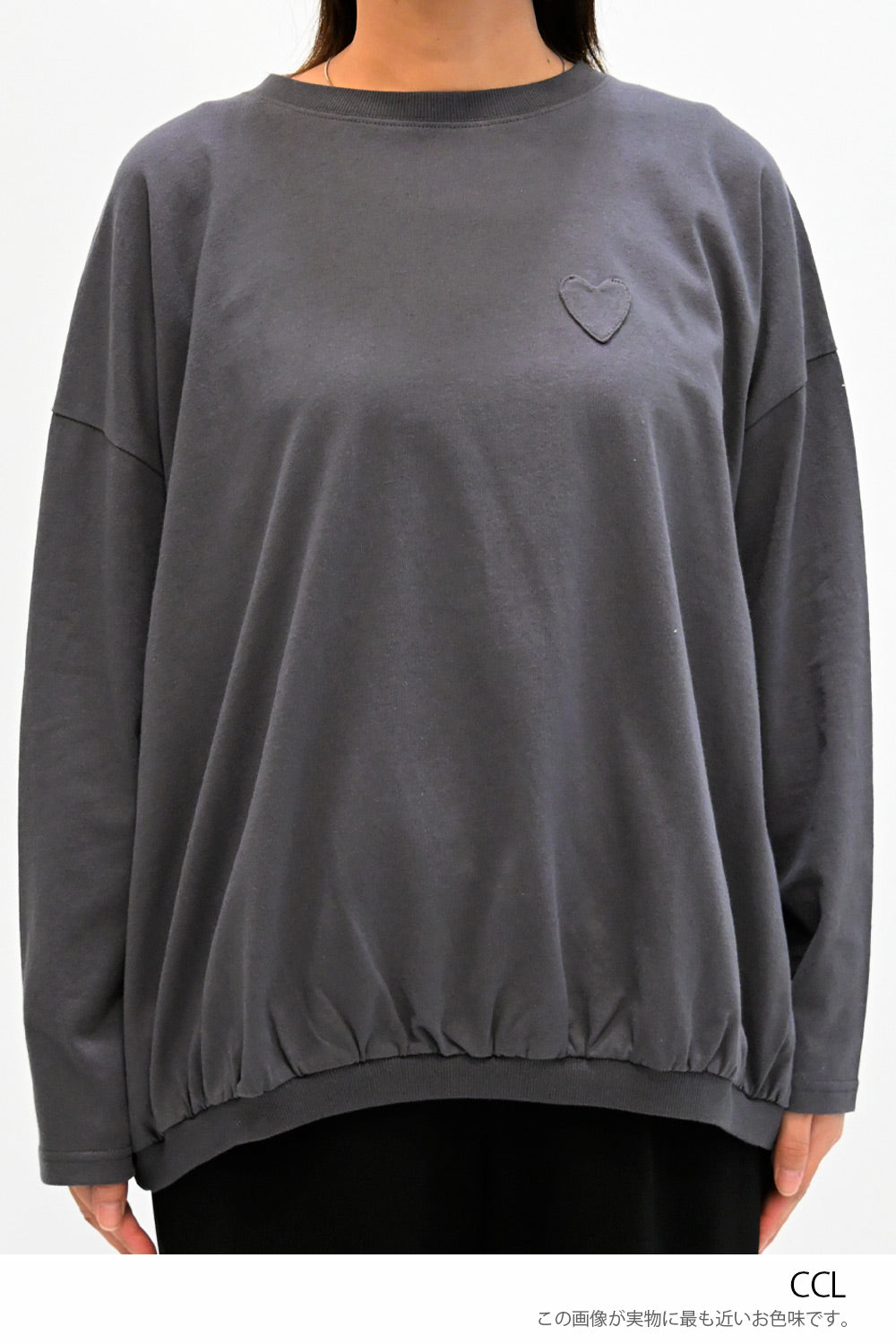 シンプルなプルオーバーにハートマークでときめきを乗せた1着です。
