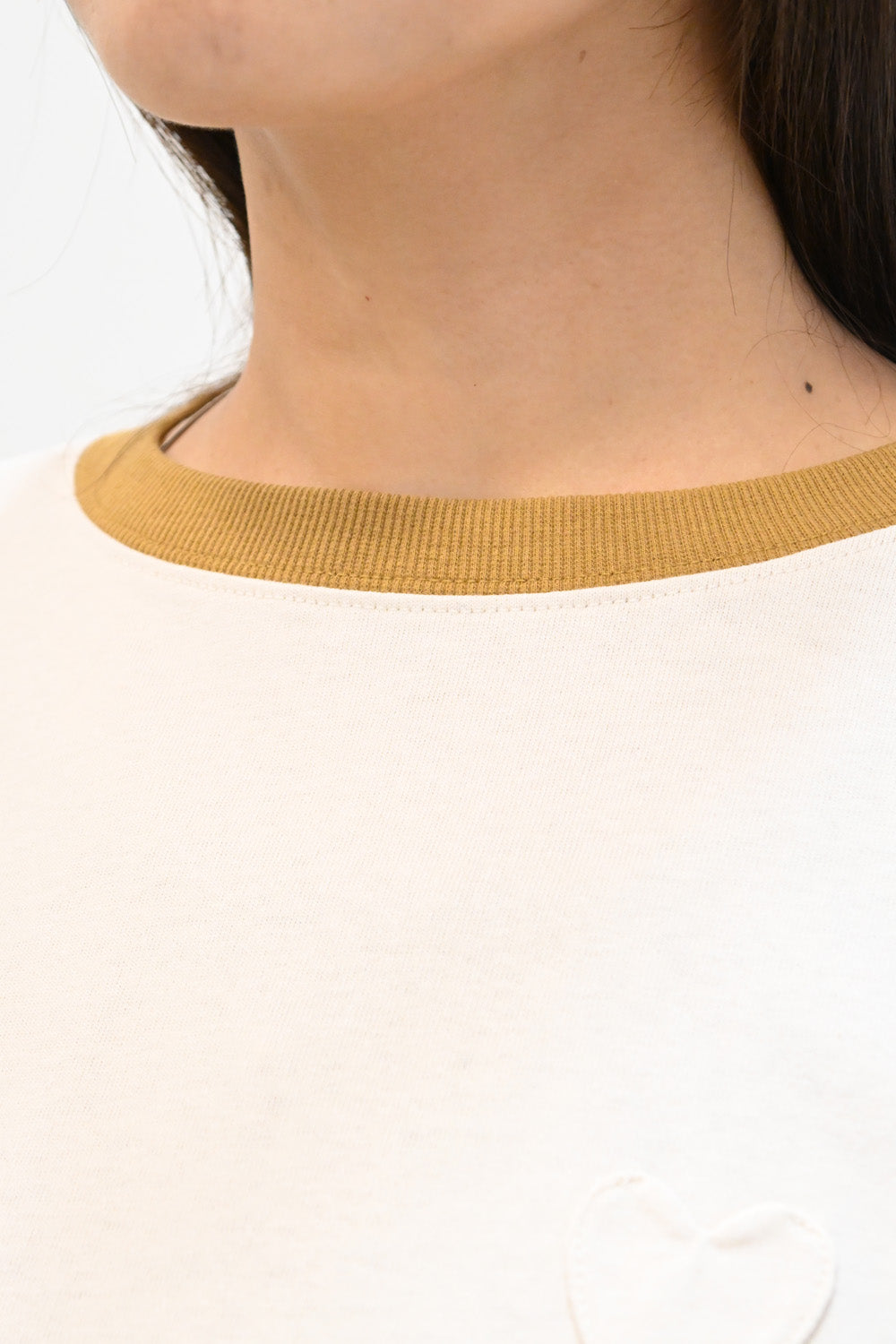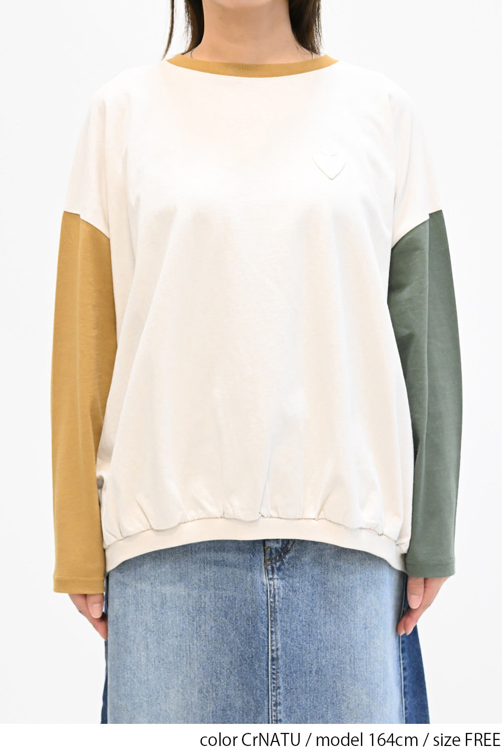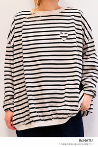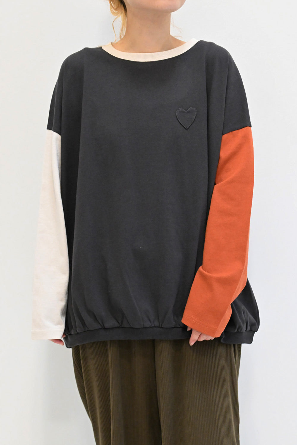 シンプルなプルオーバーにハートマークでときめきを乗せた1着です。
