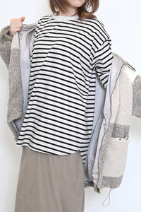 ヒップラインまでしっかり隠れる丈感と、ほどよくゆとりのあるシルエットで、体型カバーもしながら快適な着心地を実現。