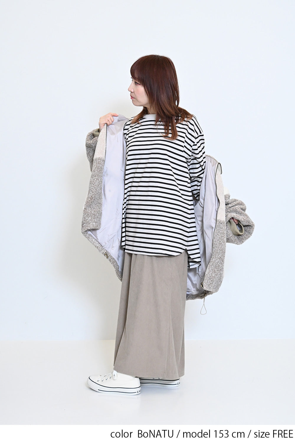 パンツにもスカートにも合わせやすく、年齢を問わず着こなしやすい1枚です。