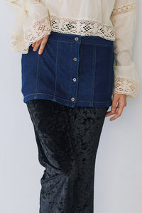 綿素材のデニム生地にポリウレタンを混紡することで伸縮性をプラス。