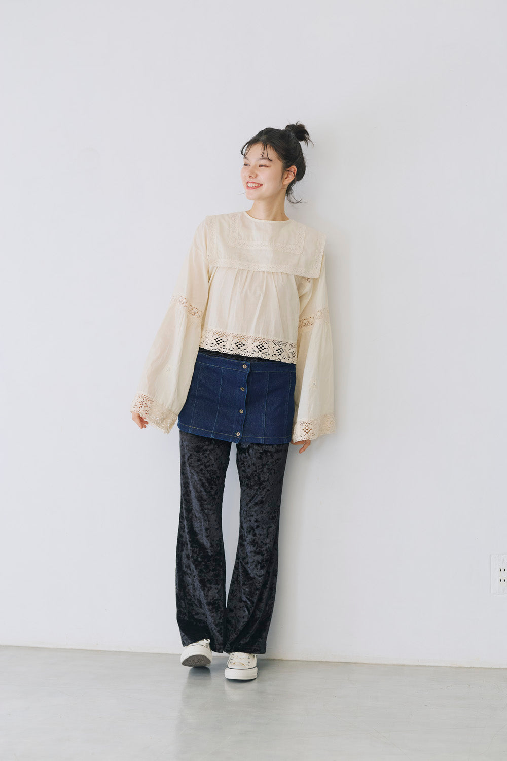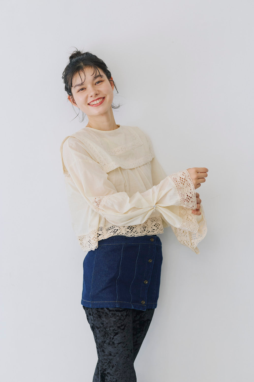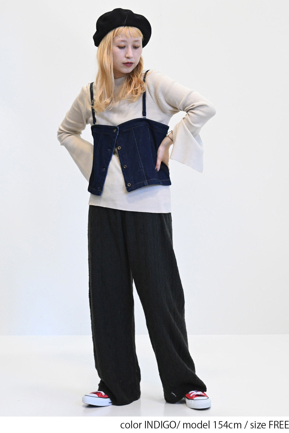 トップスとして着れば旬のレイヤードスタイルに、パンツやスカートと合わせればウエストアクセントとして活躍します。