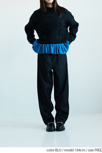 裾にたっぷりフリルをあしらったハイゲージニットのプルオーバー。