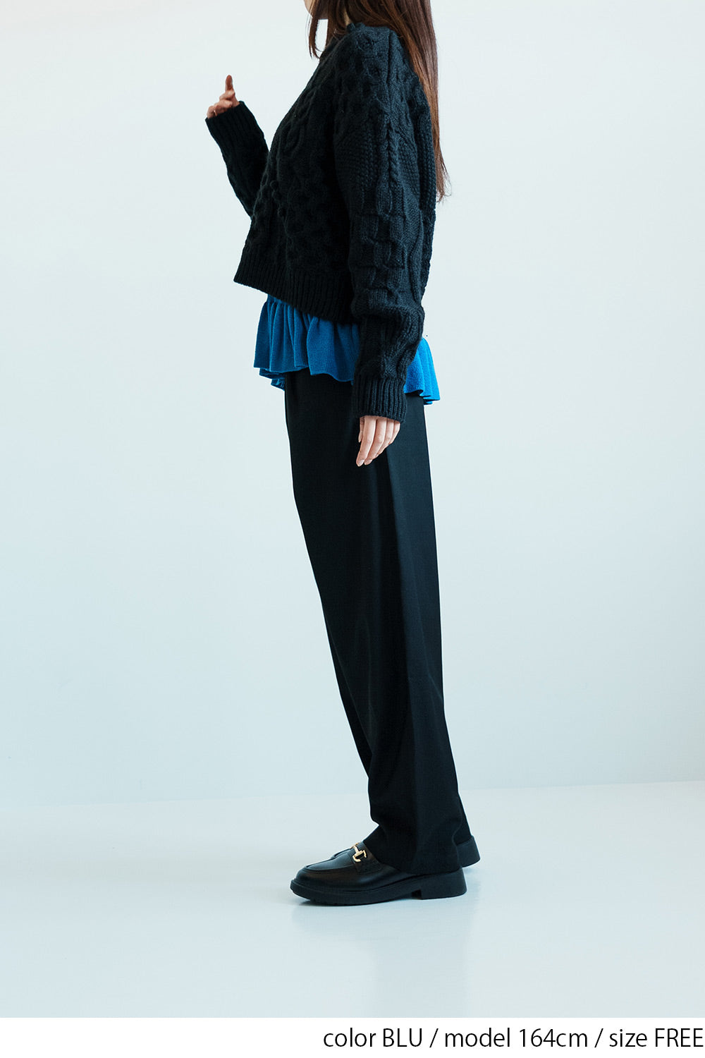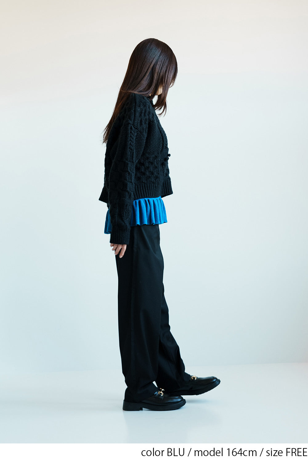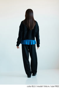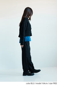 フリルは少し長めに設計されており、重ね着した時にチラ見せすることでコーディネートに立体感と華やかさをプラスします。