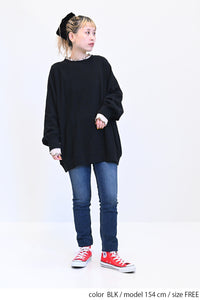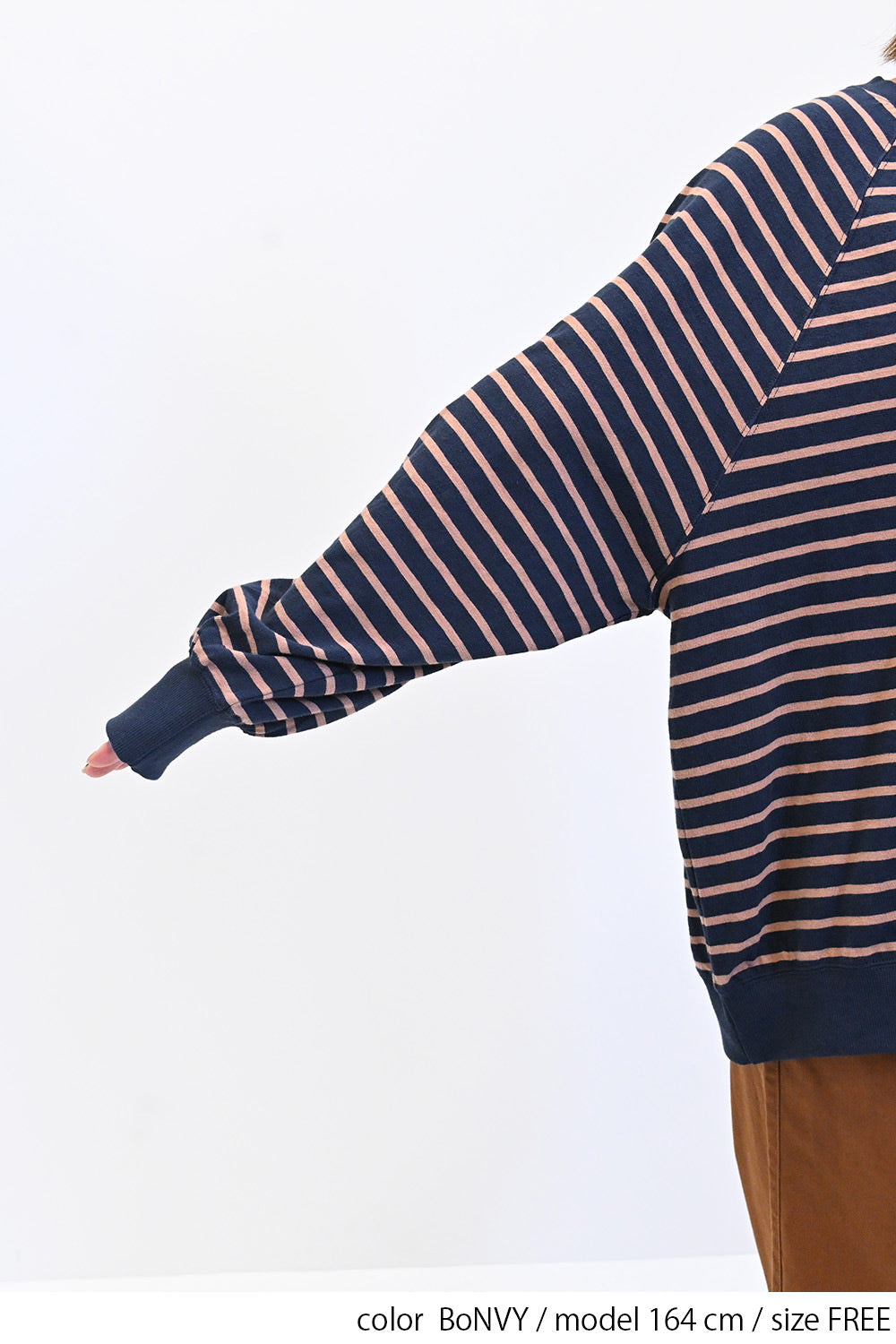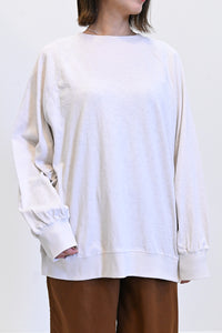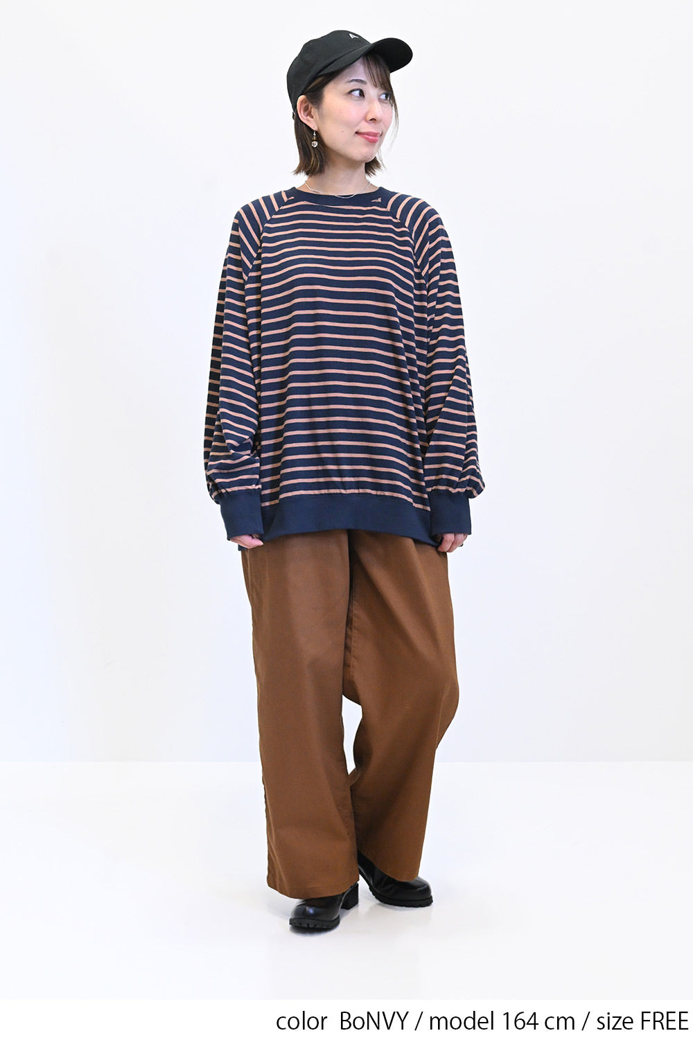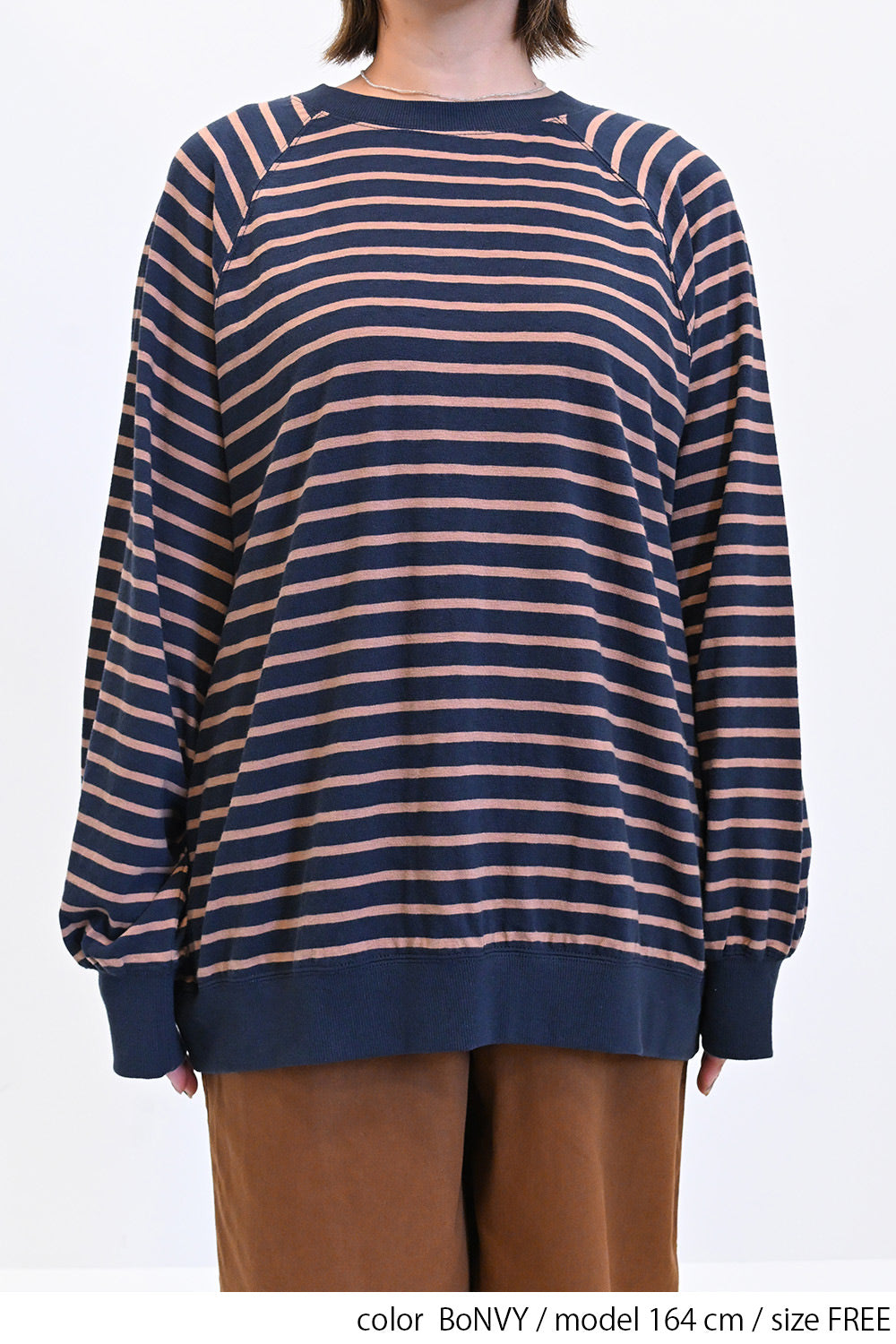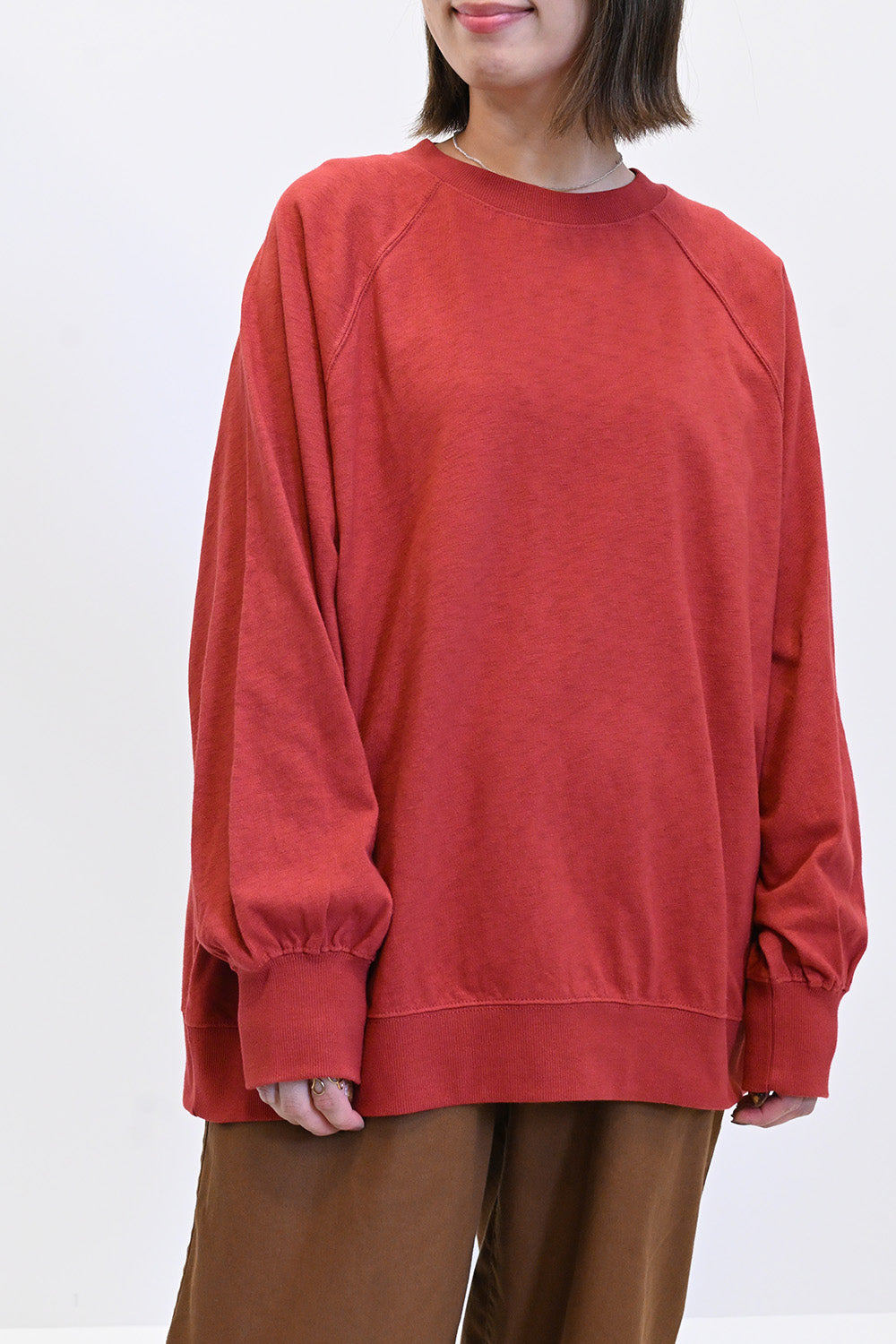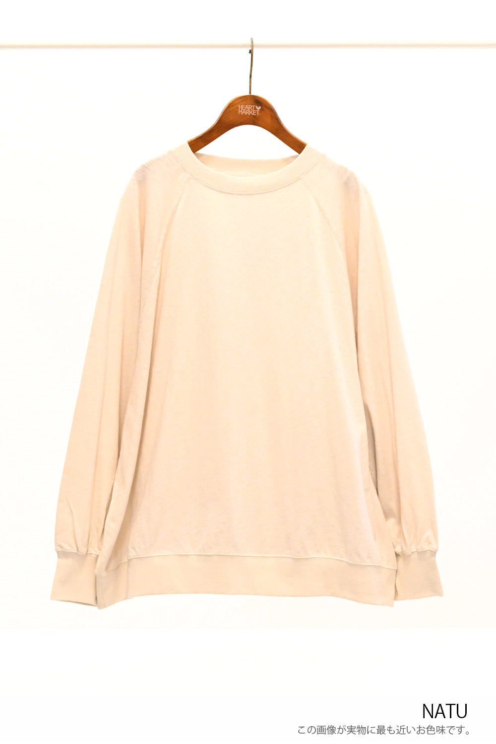 ラグランスリーブ仕様で肩まわりにゆとりがあり、動きやすくリラックス感のある着心地に。