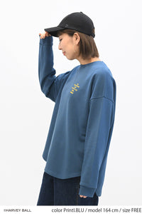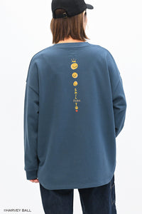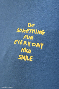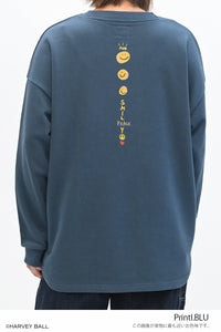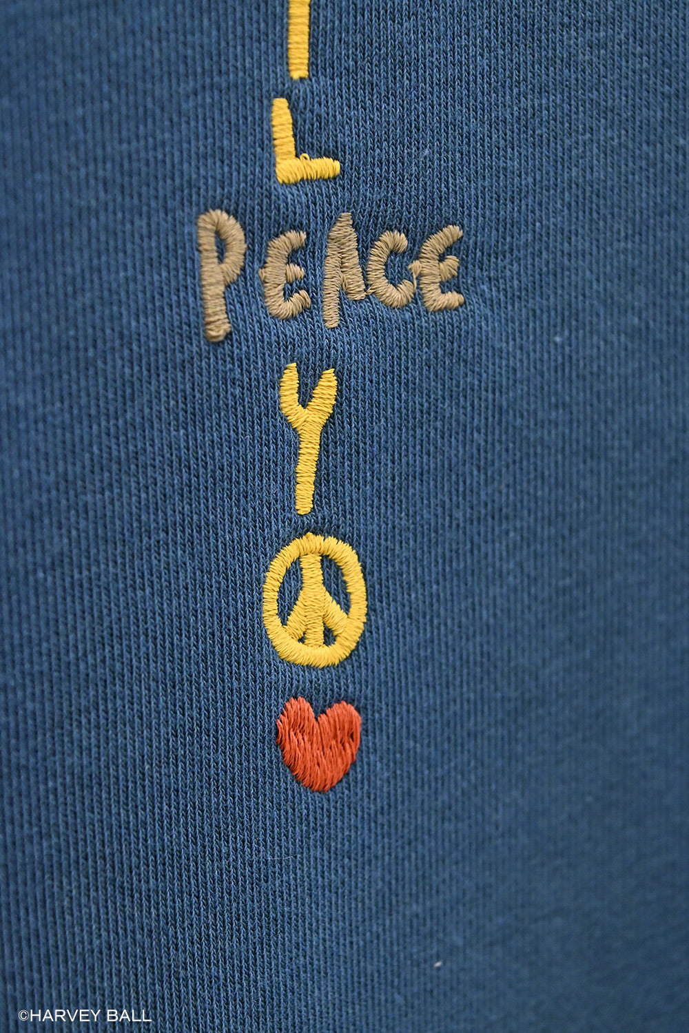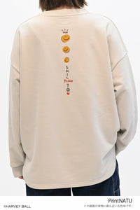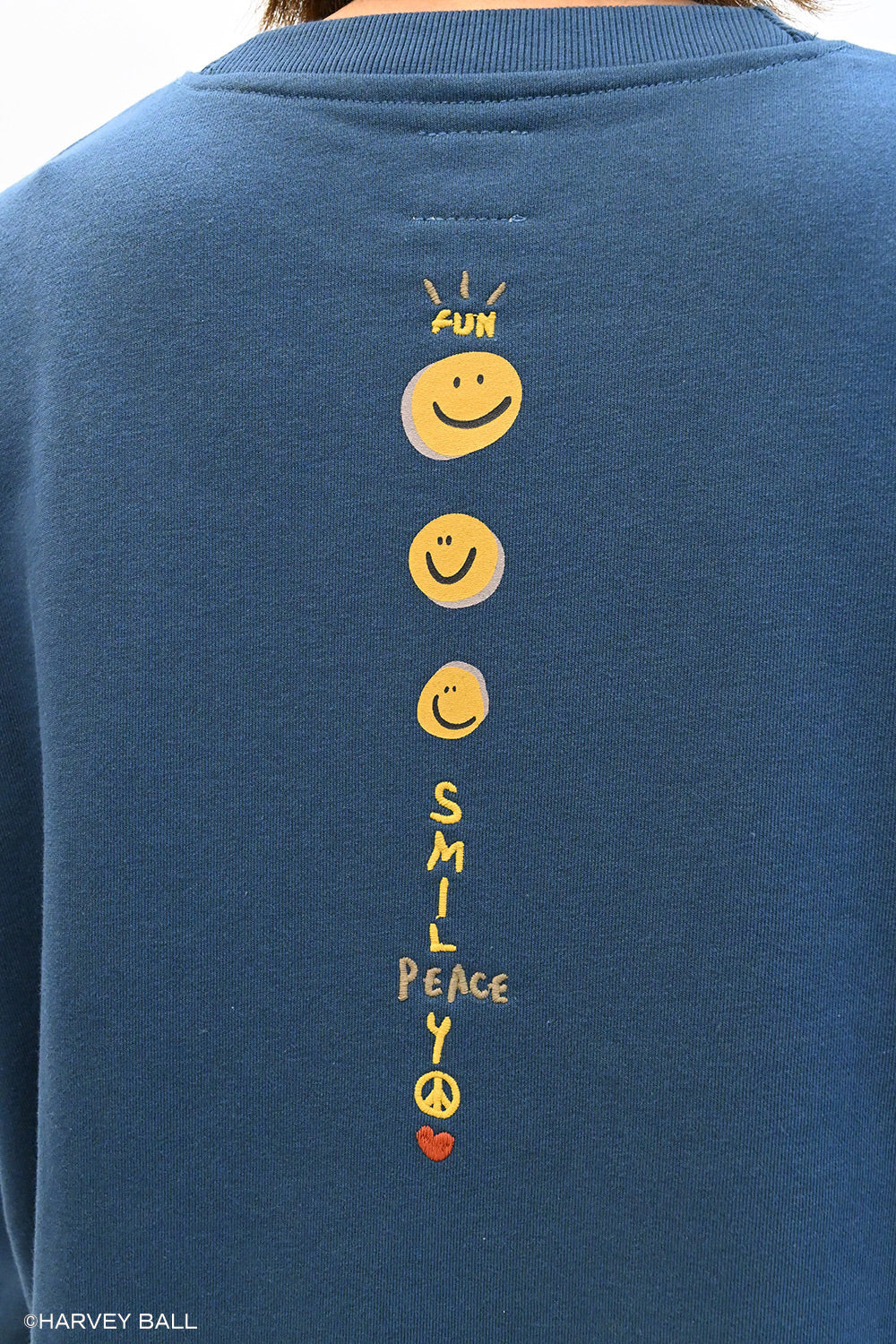 フロントは胸元のワンポイント刺繍でシンプルに、バックにはロゴとスマイルを組み合わせた遊び心のある刺繍&プリントを施しました。