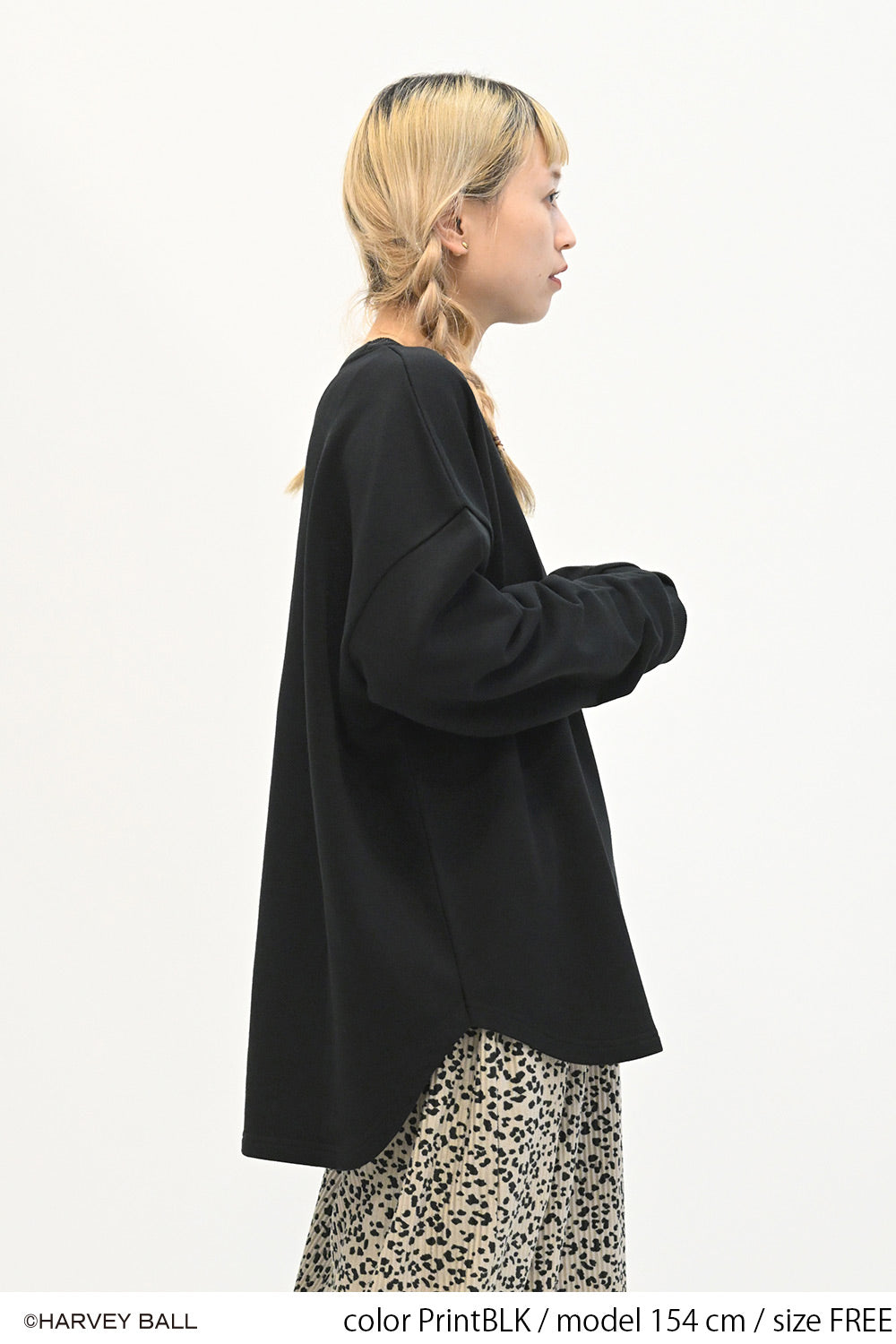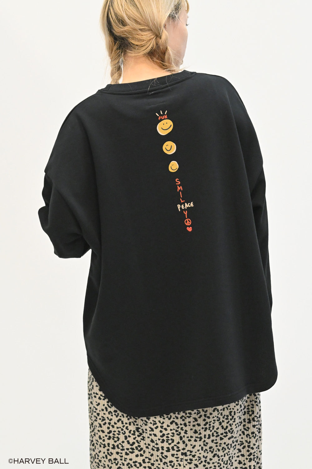 背中のキュートな“スマイル”が映える、リラックス感たっぷりの裏毛チュニック。