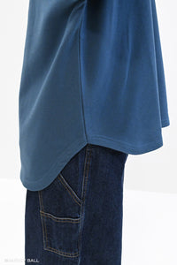 前後差のある裾のラウンドシルエットが、腰まわりをさりげなくカバーしつつ女性らしい印象をプラス。