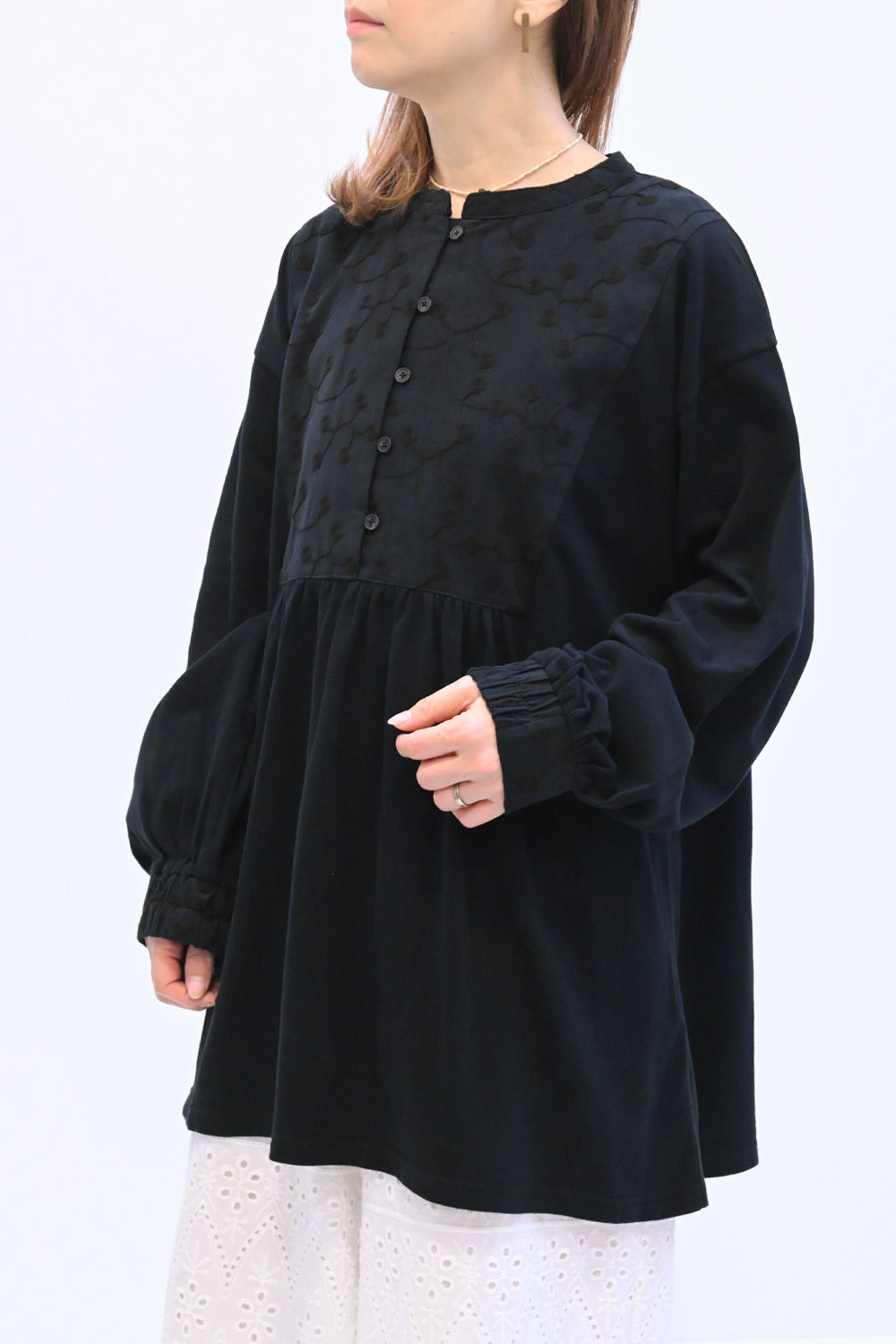 繊細な刺繍とやわらかなコットン素材が魅力のチュニック。