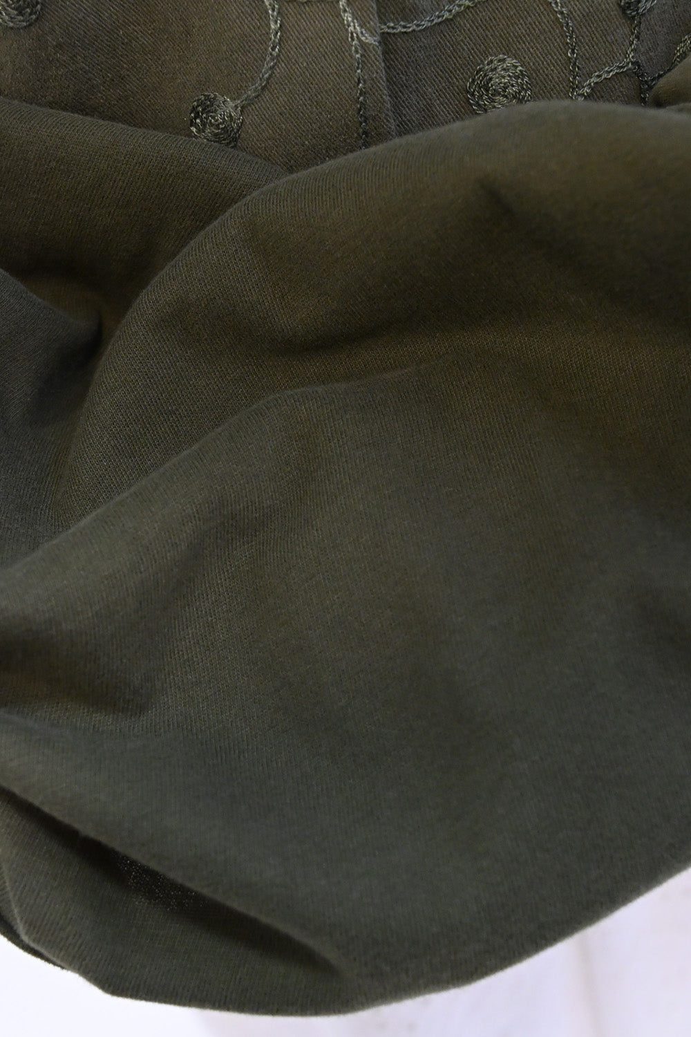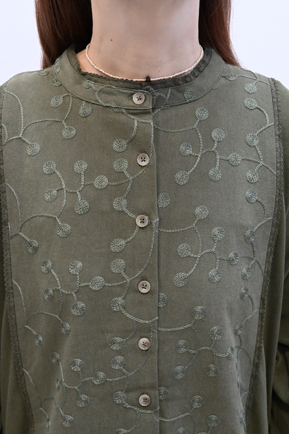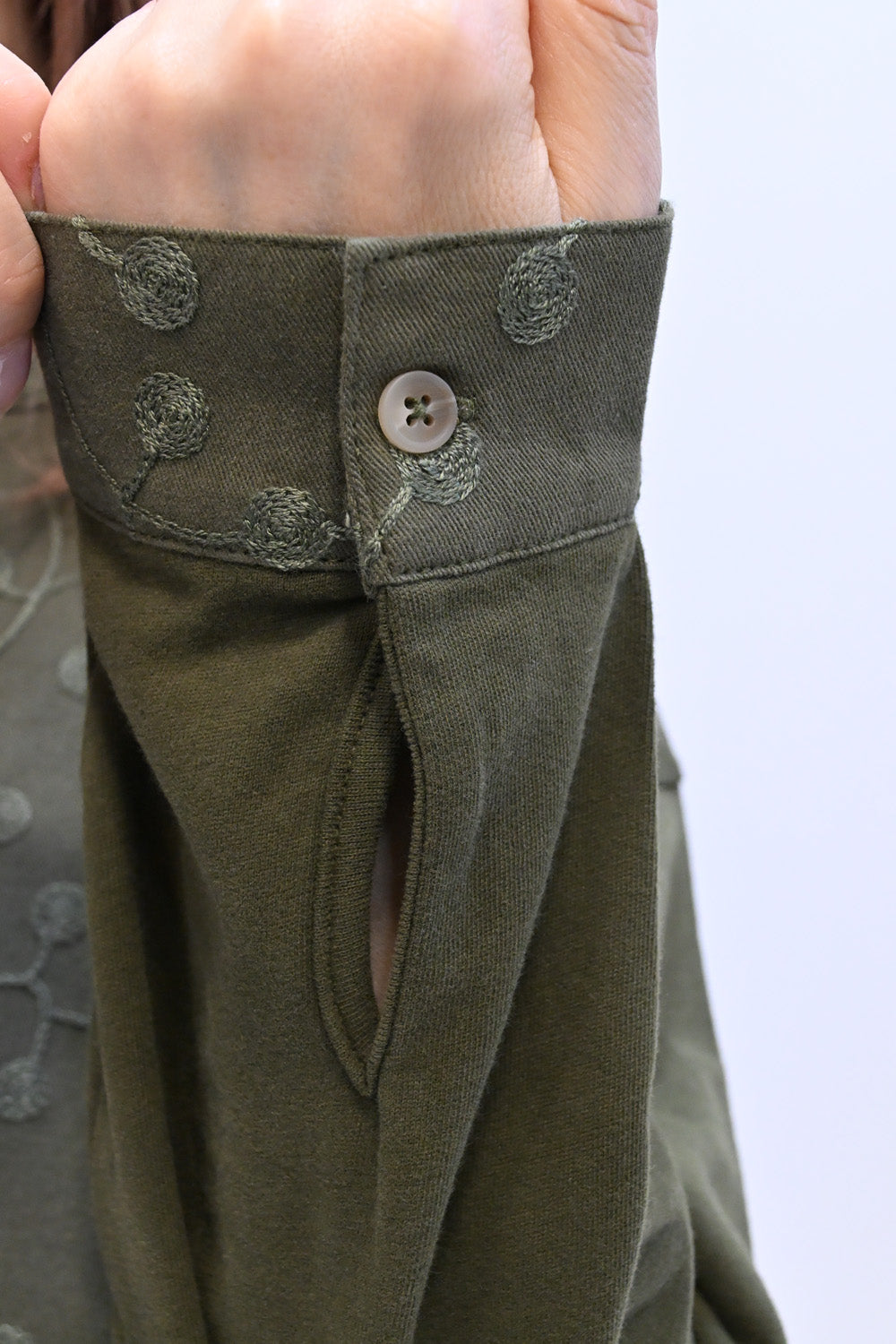 刺繍とレースの組み合わせがやさしく女性らしく、1枚で着映えするデザインです。